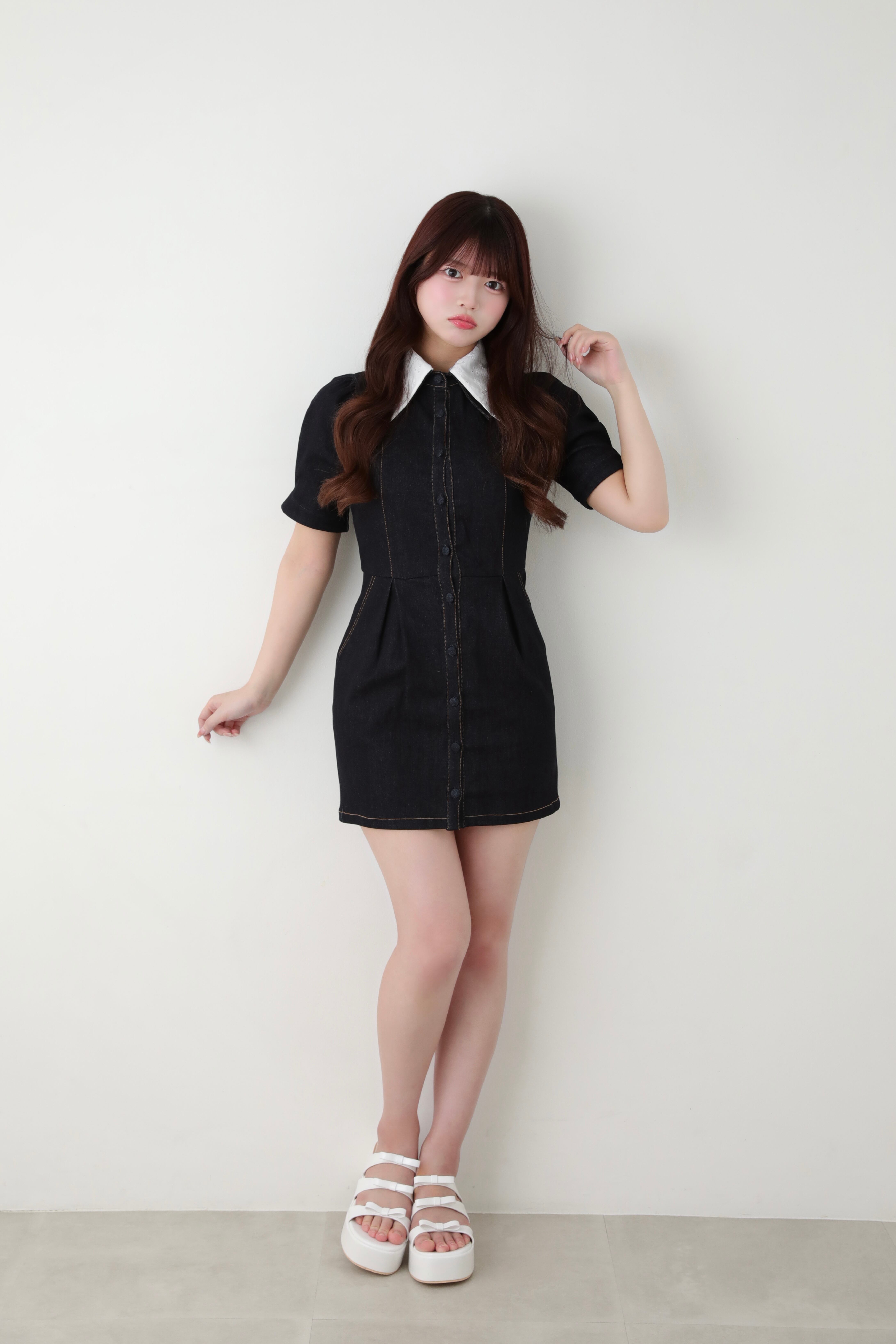 lace collar denim onepiece