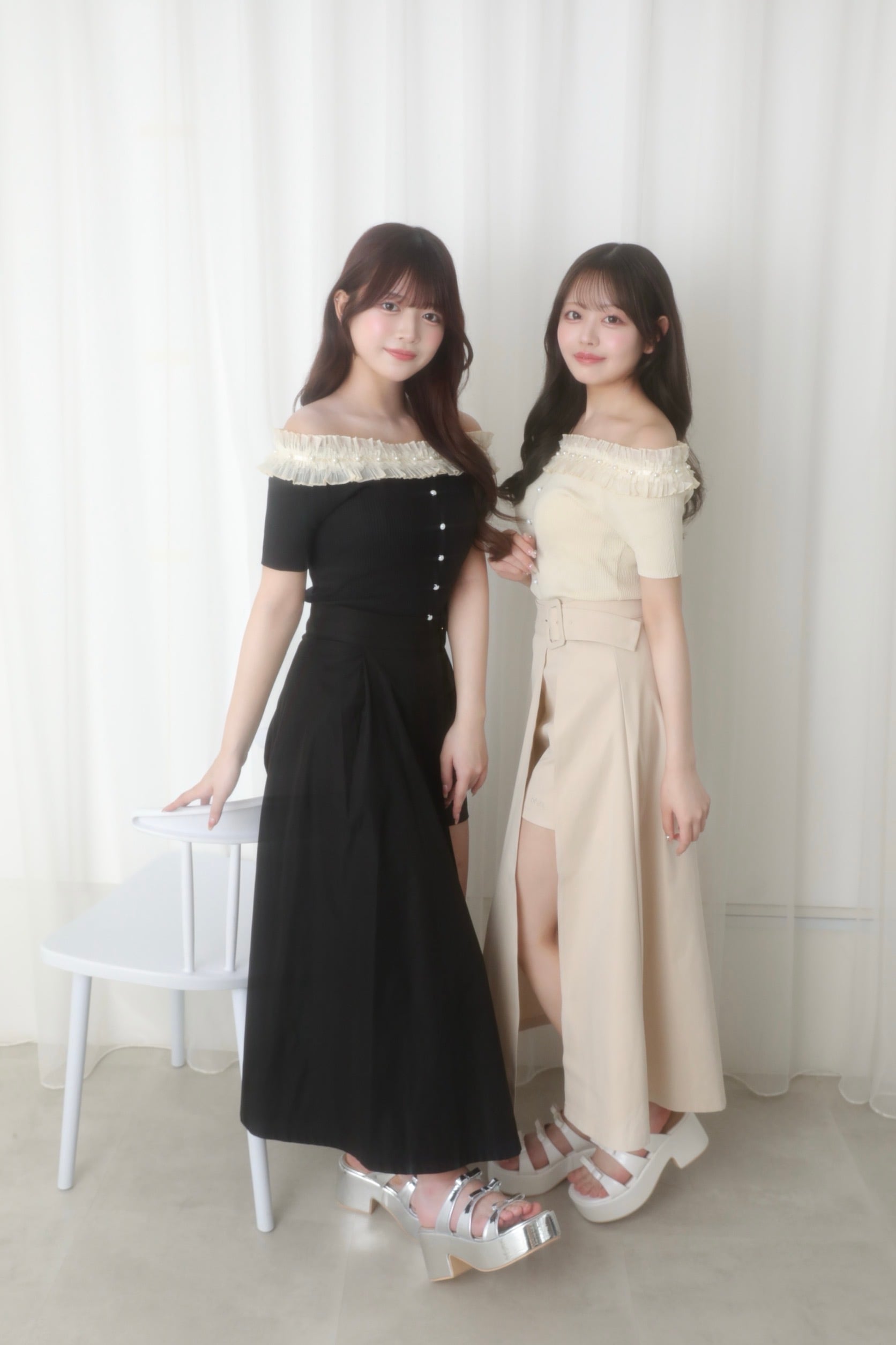 オフショルデザインなのでデコルテや肩のラインが華奢見えするとともに、体に程よくフィットするコンパクトなシルエットが自然とスタイルアップを狙えるのもポイント。