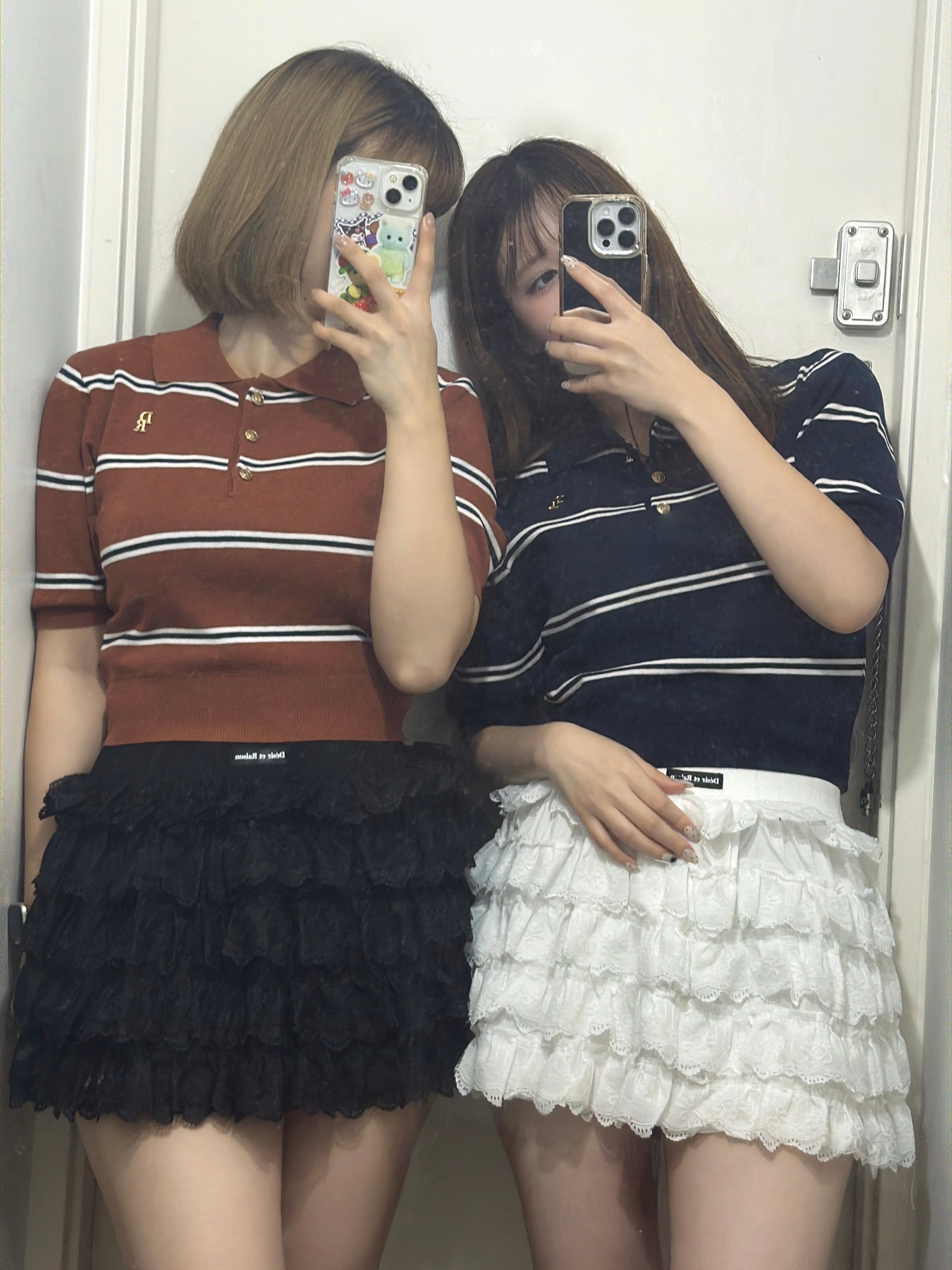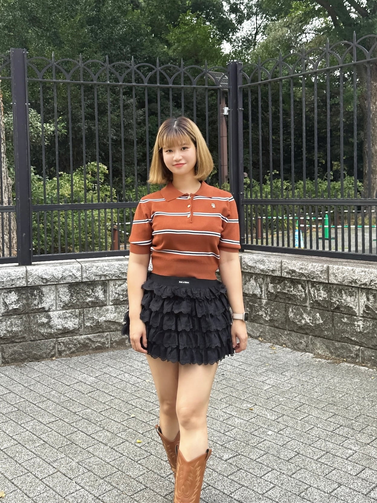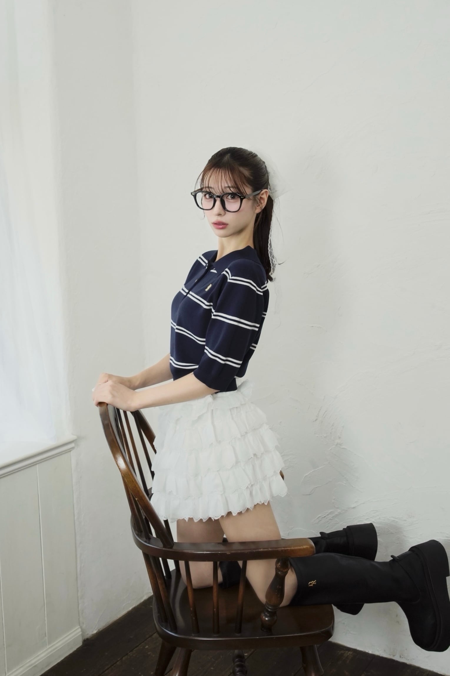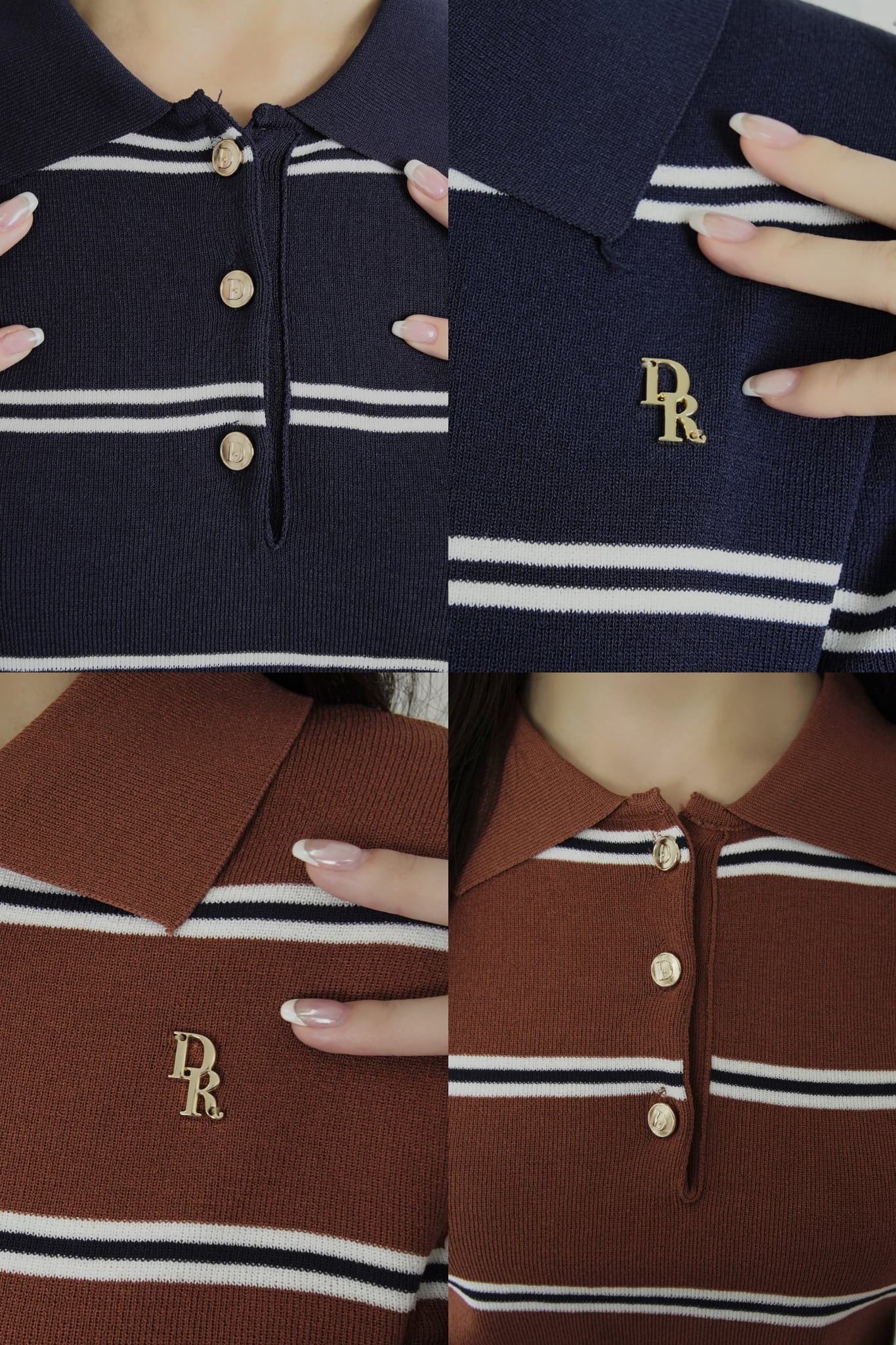 パッと目を惹くボーダー柄が1枚でコーデ映えするポロニットトップス。