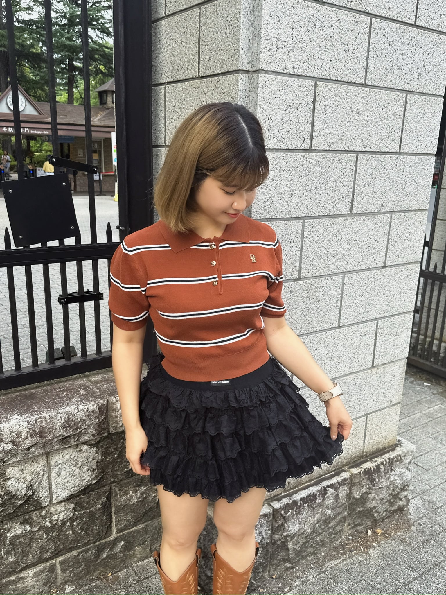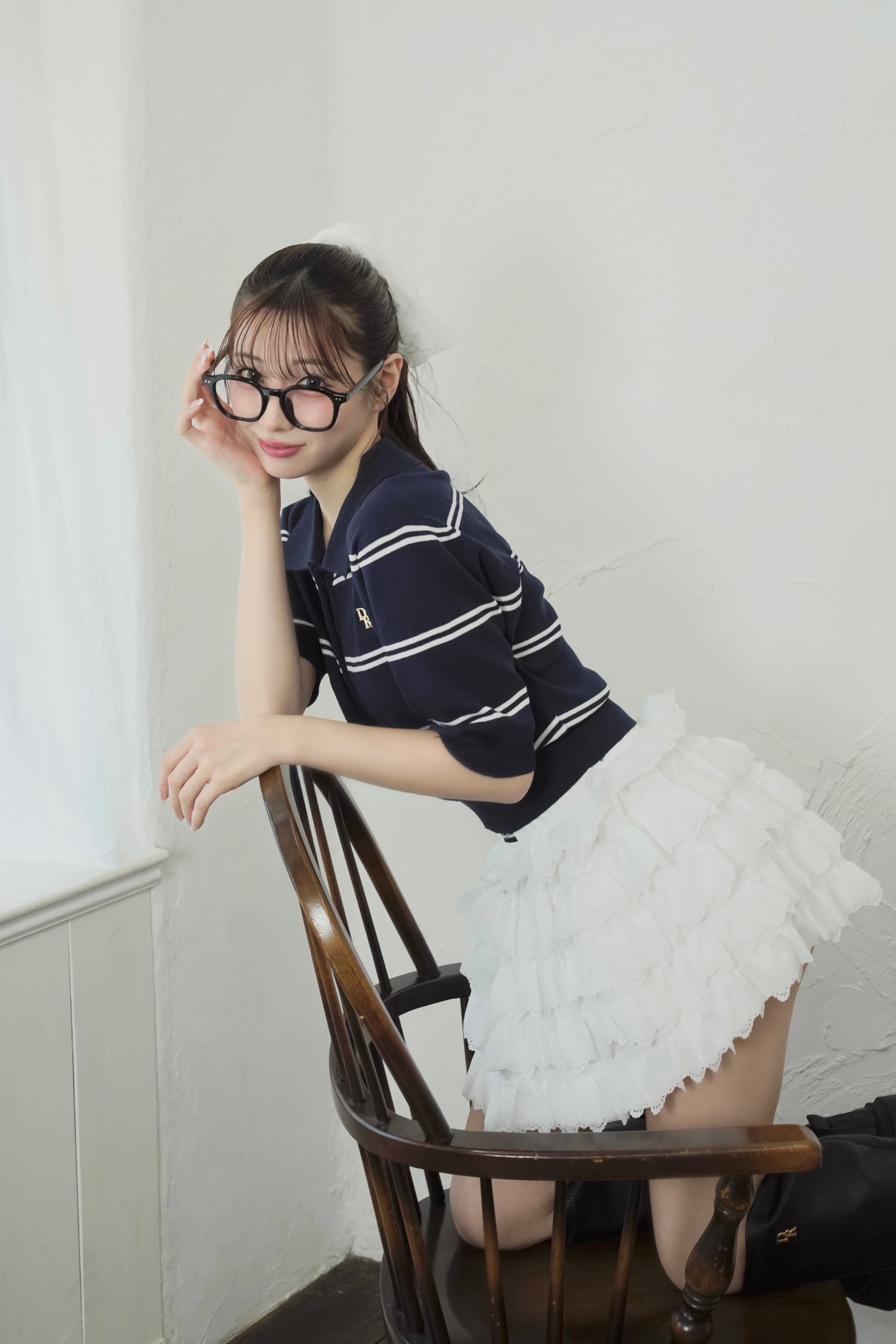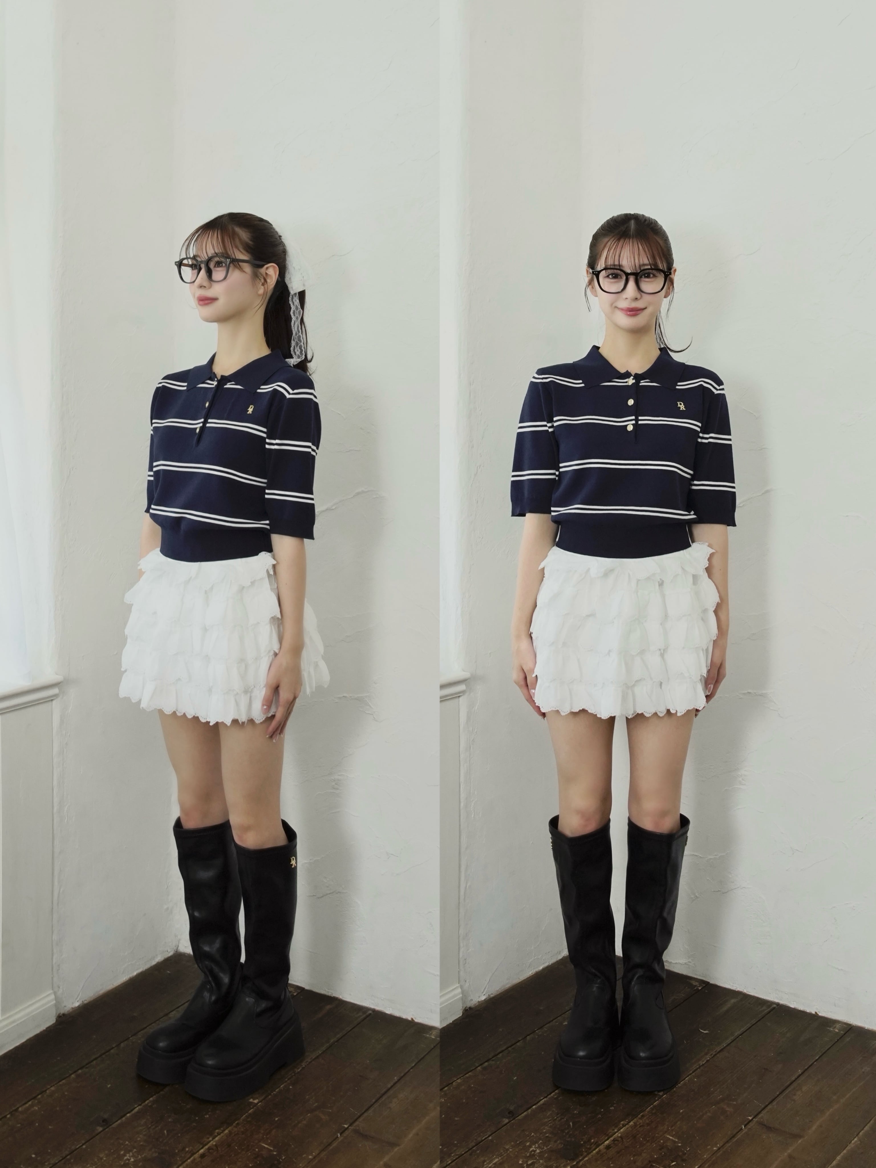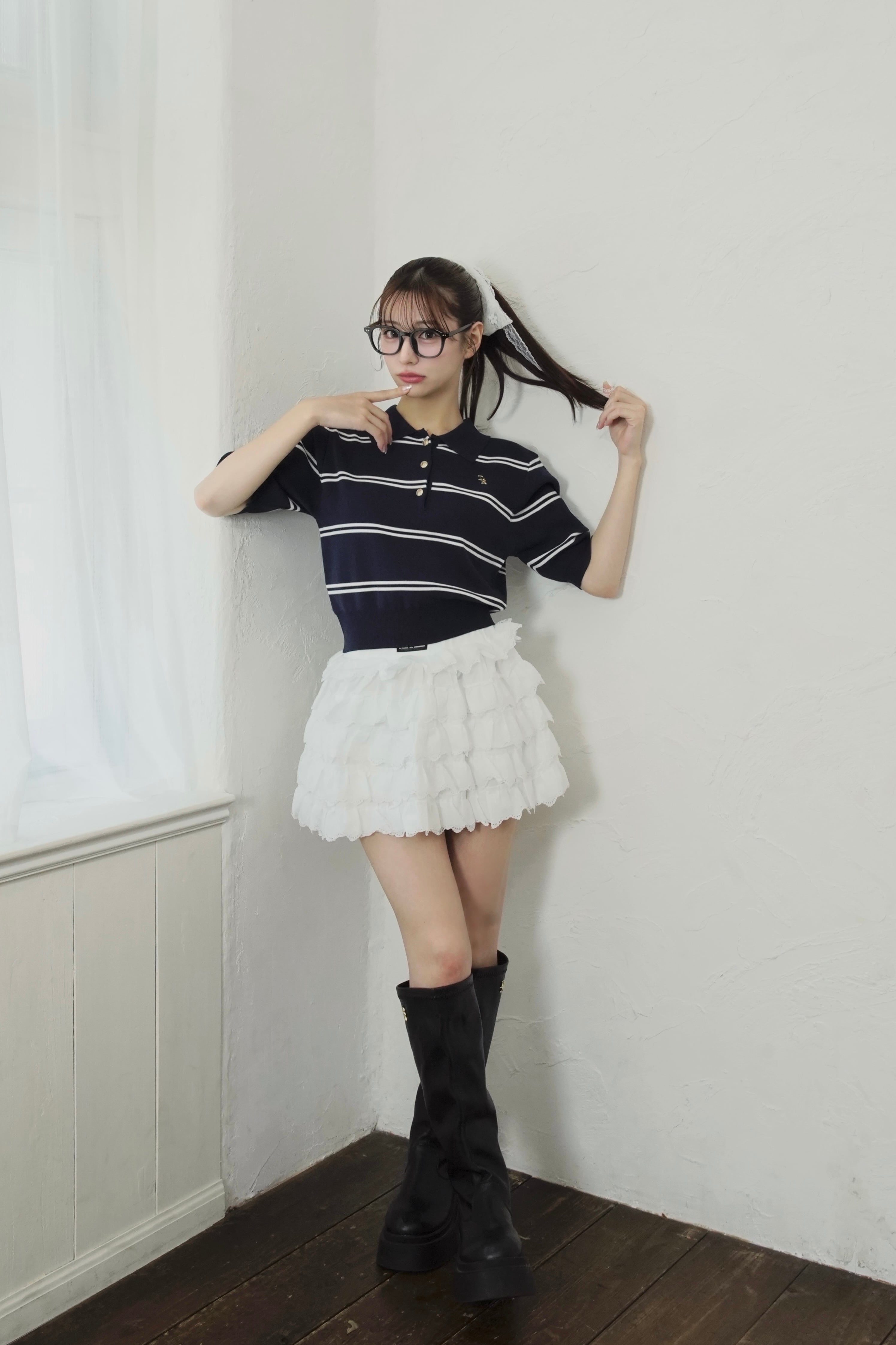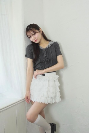 3段のたっぷりフリルで甘さを盛りつつ、ウエストのロゴネームがアクセントとなり抜け感を演出してくれます。