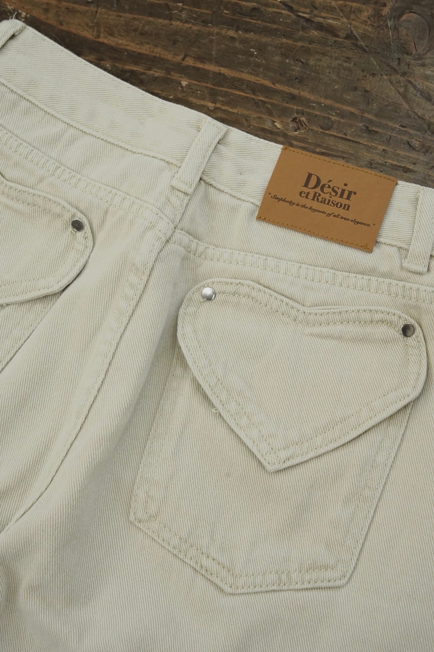 バックに施したオリジナル革パッチやハート型のポケットなど、細部まで拘りをたっぷりと詰め込みこんだ1本。