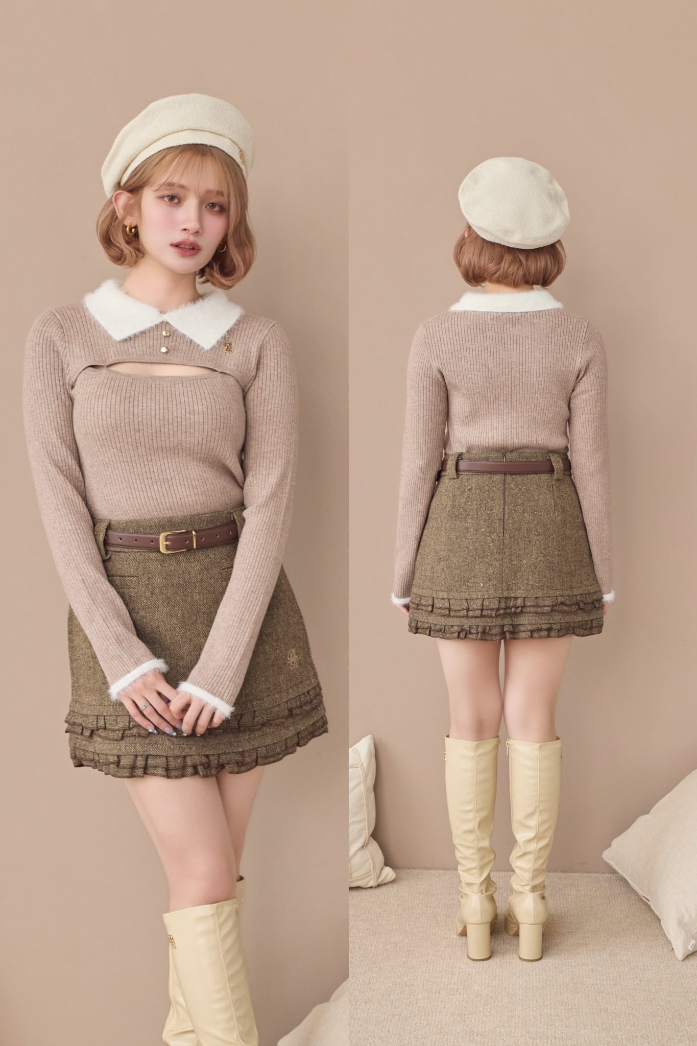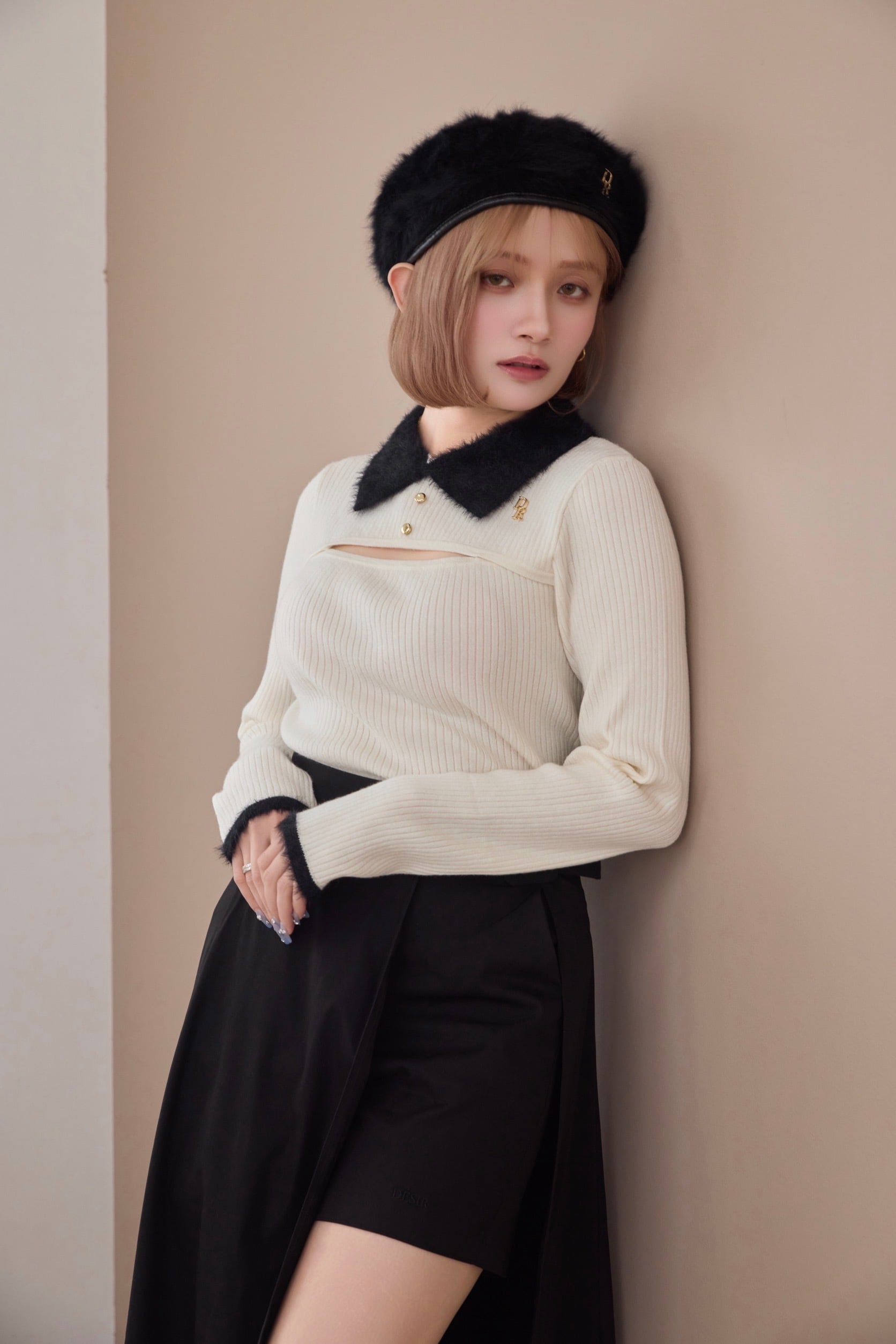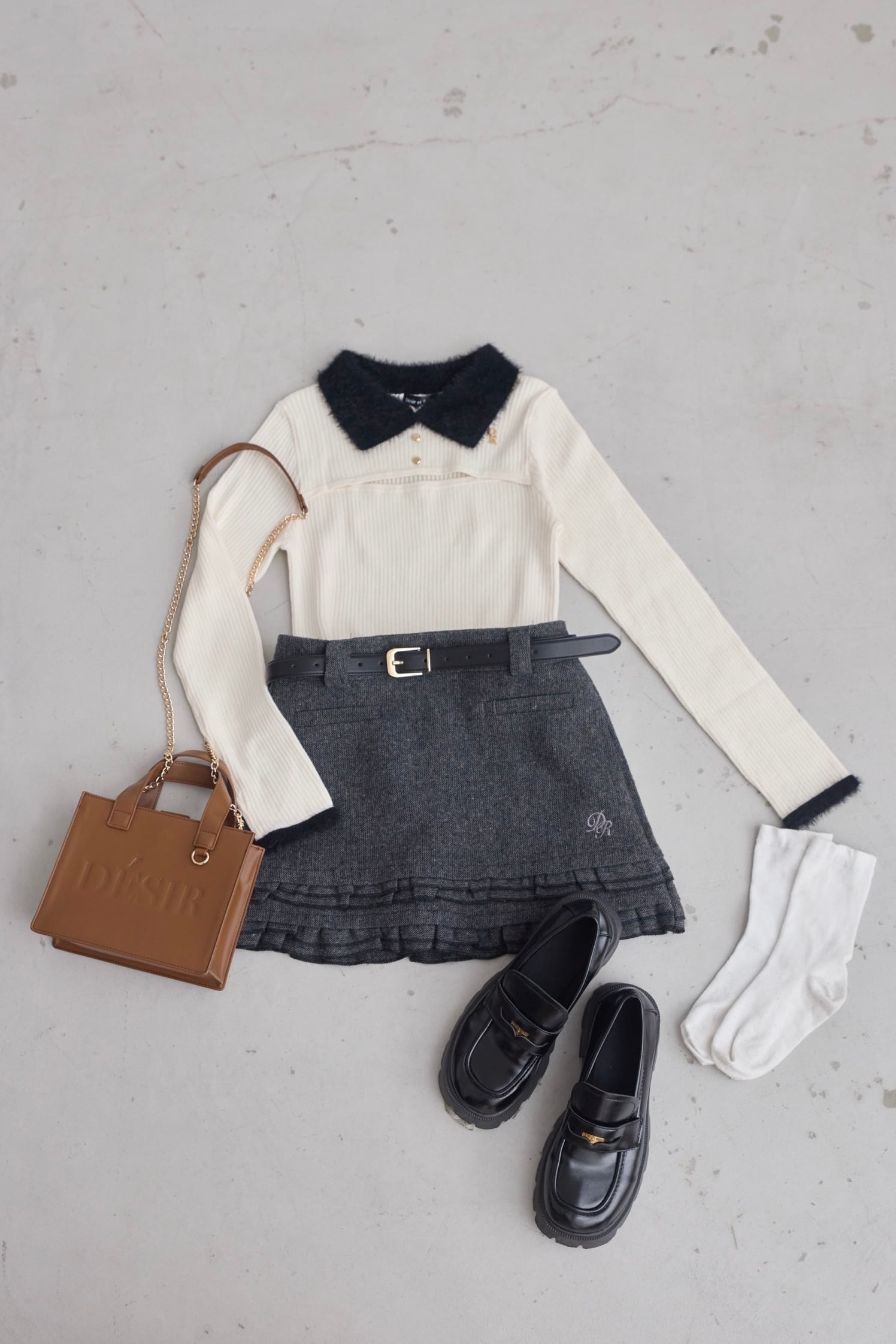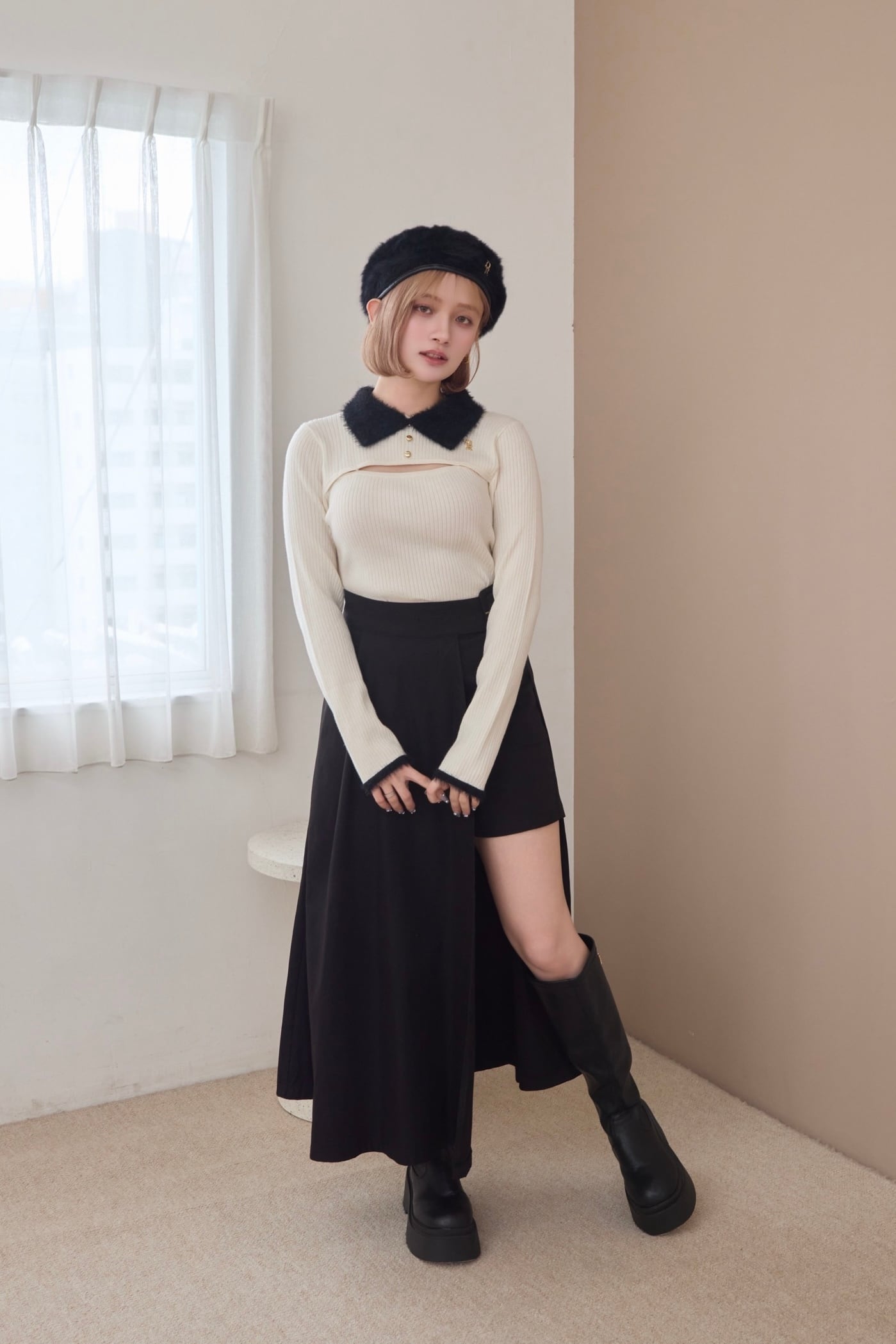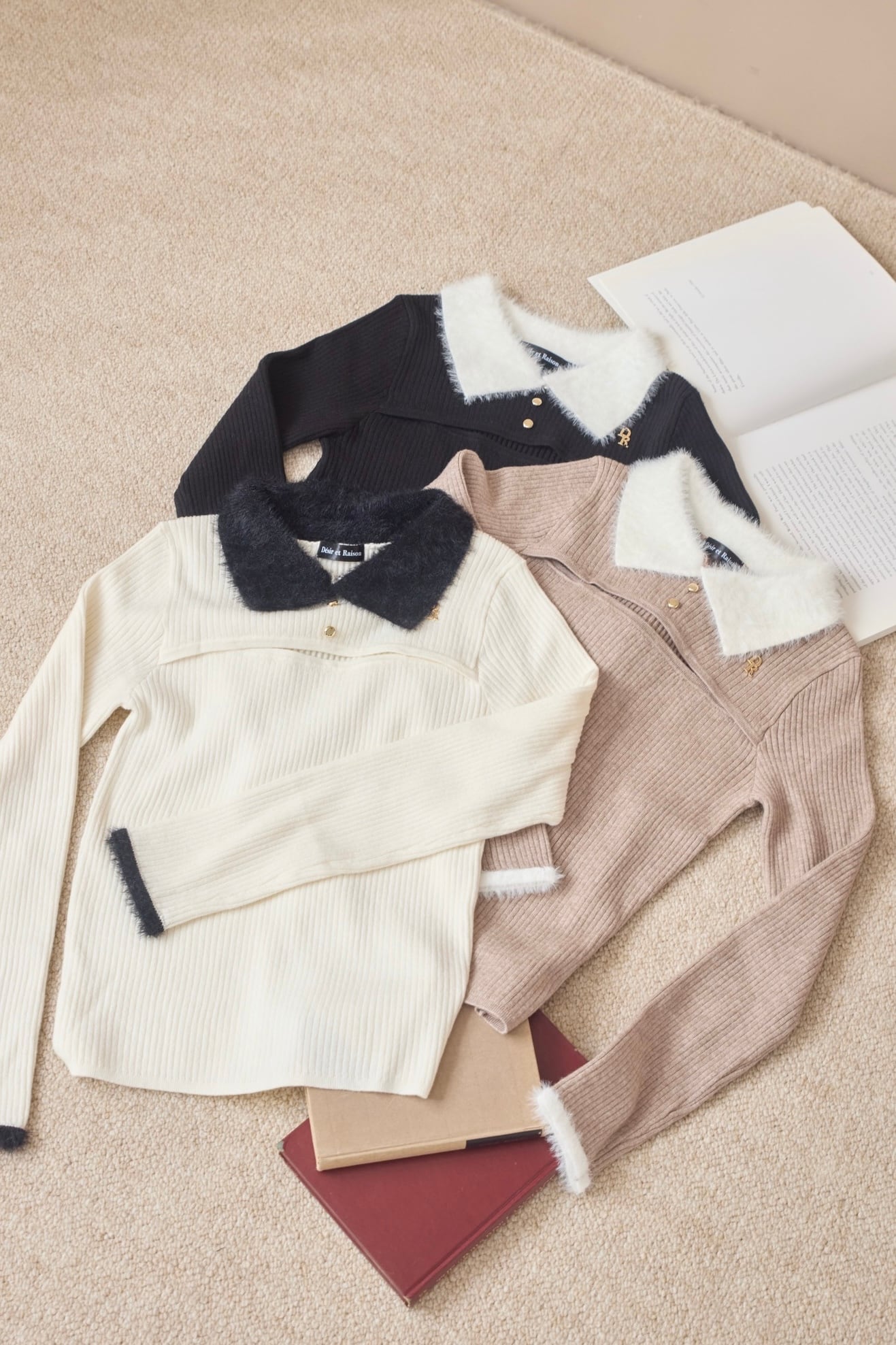襟と袖にふわふわのフェザーニットを使用することで、立体感とAWらしさを引き立てコーデのアクセントに◎