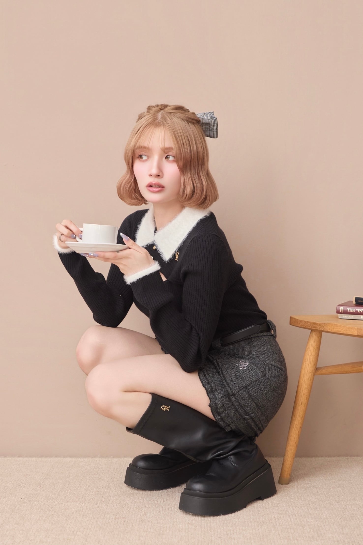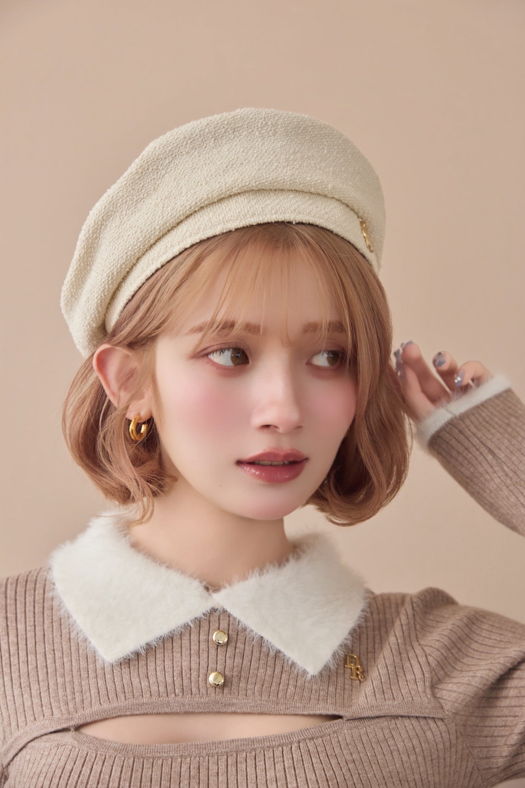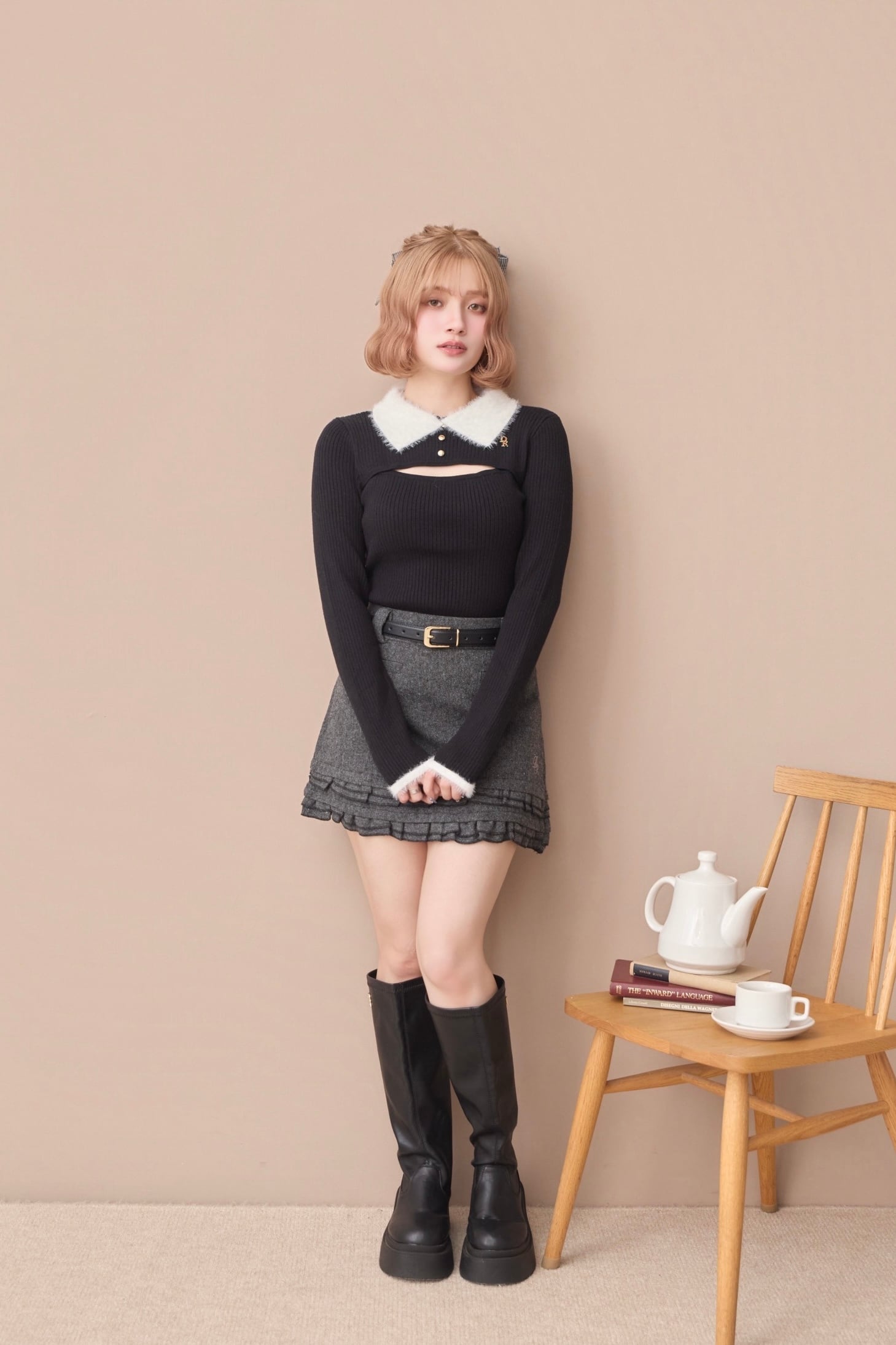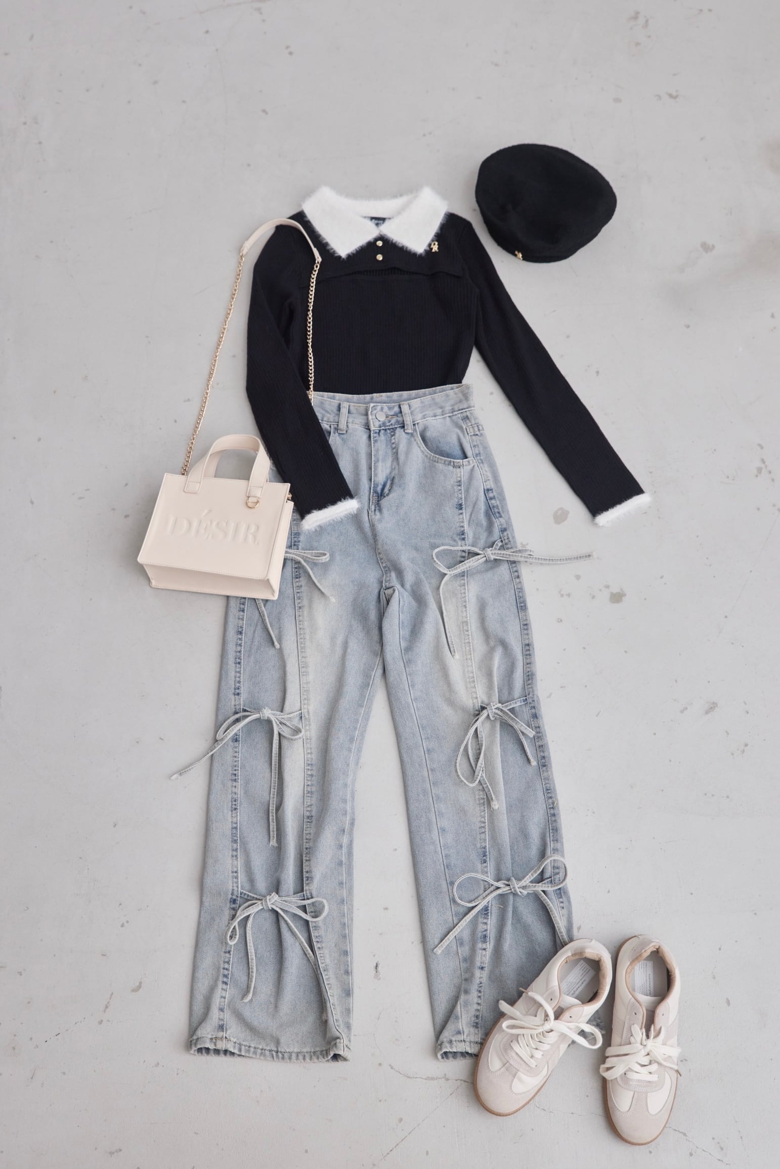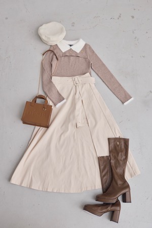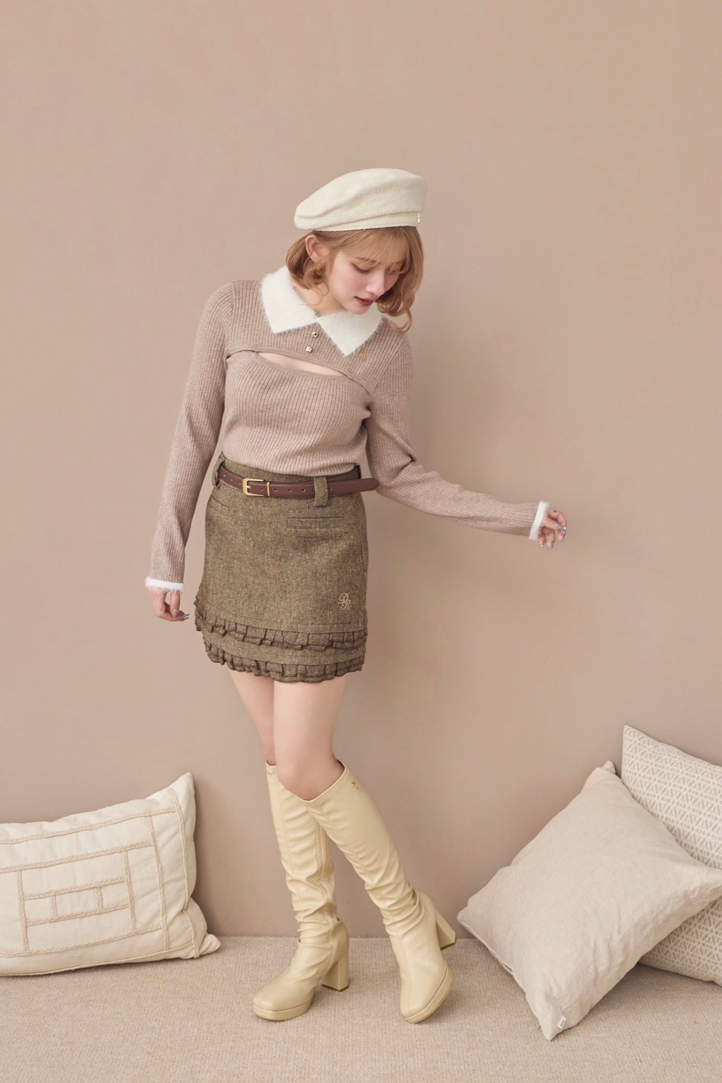 襟と袖にふわふわのフェザーニットを使用することで、立体感とAWらしさを引き立てコーデのアクセントに◎