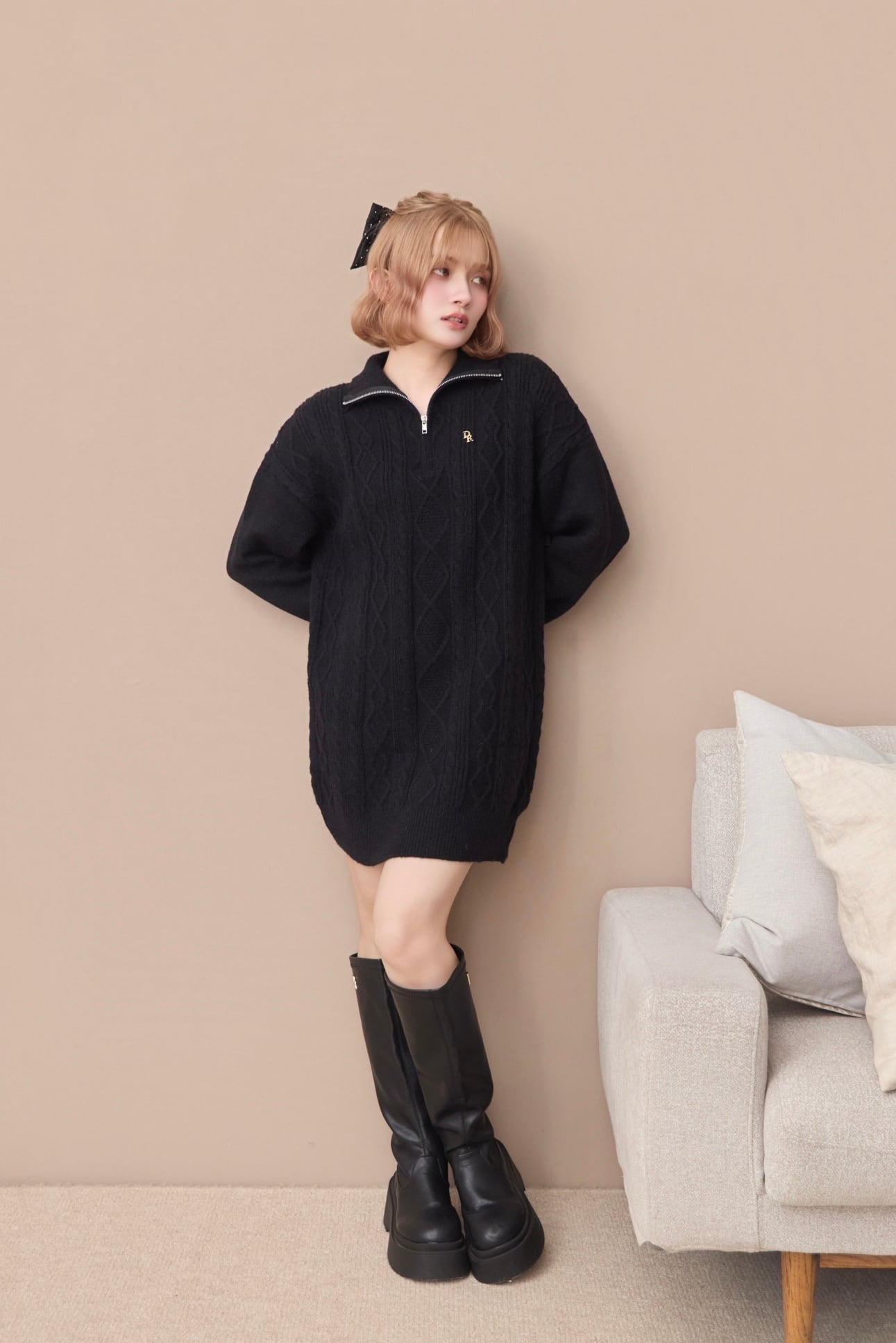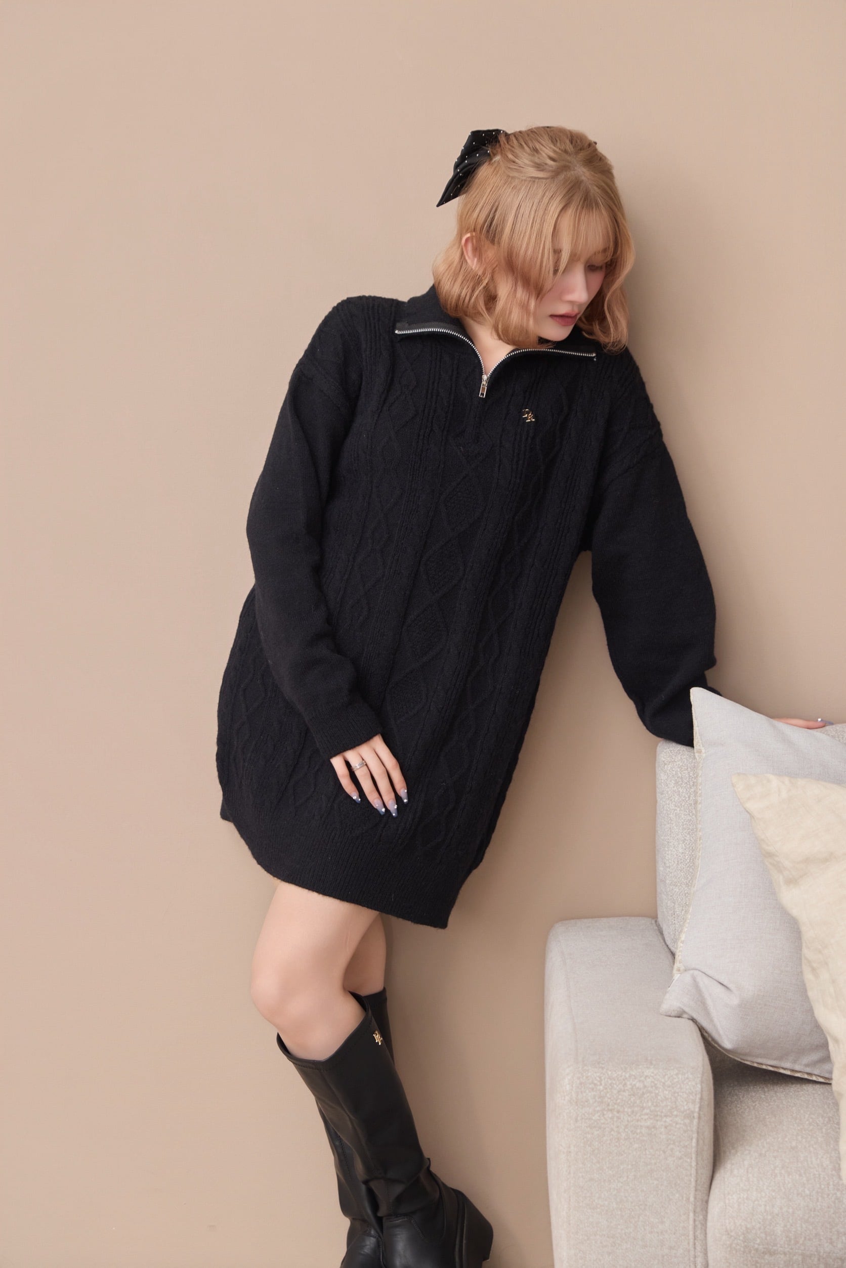 DR half zip cable knit onepiece