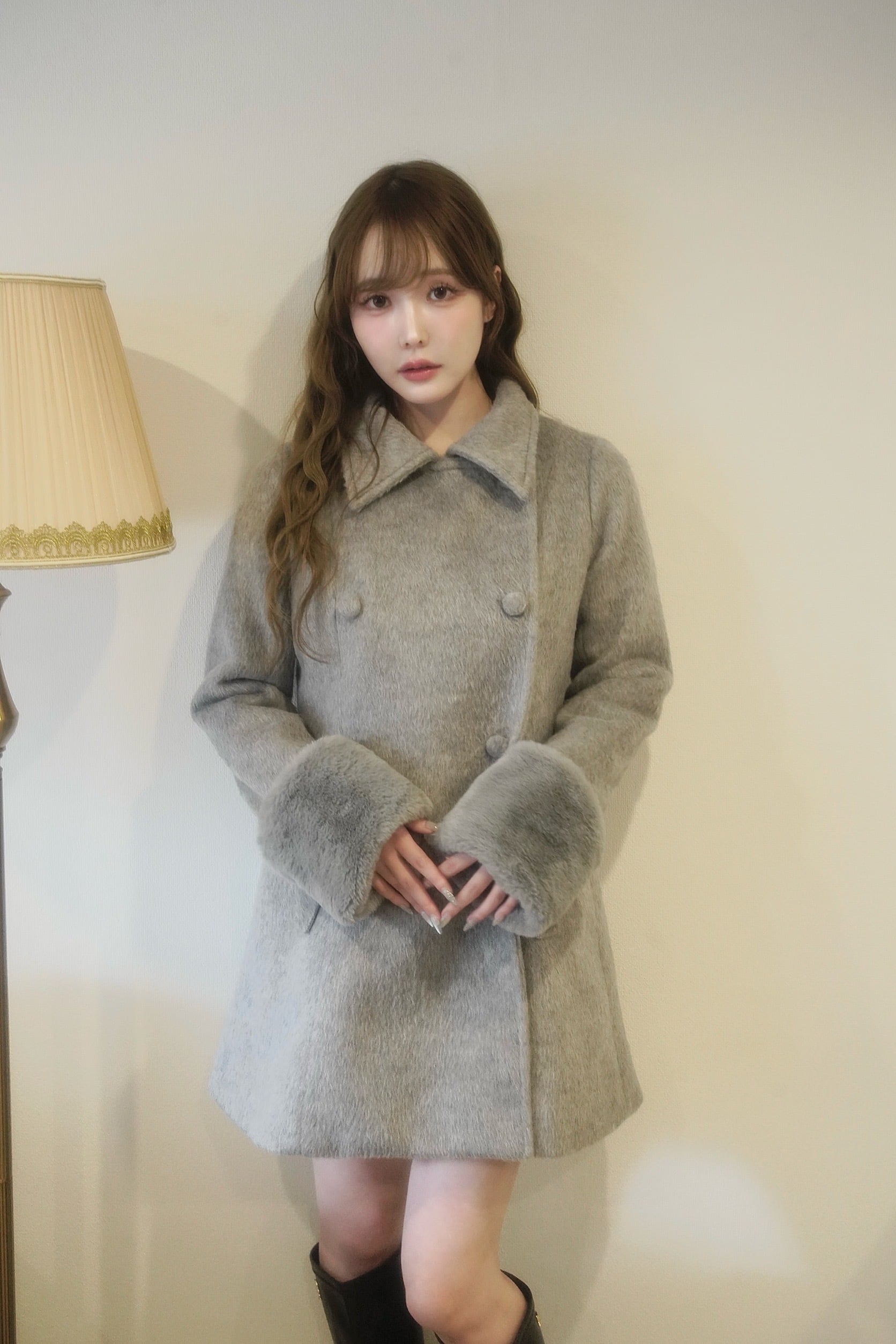 袖口には肌触り抜群のふっくらファーをたっぷりあしらい、冬ならではの特別感と可愛さをプラス。