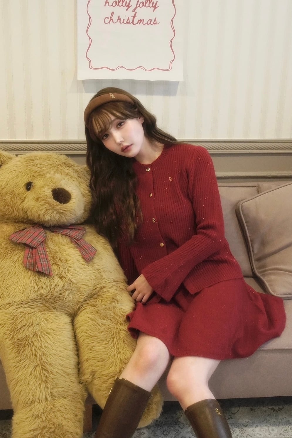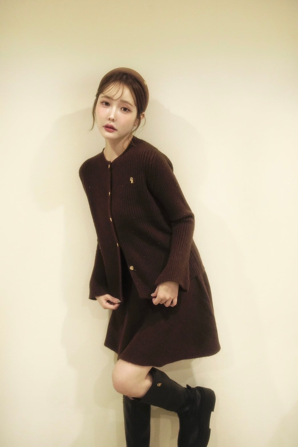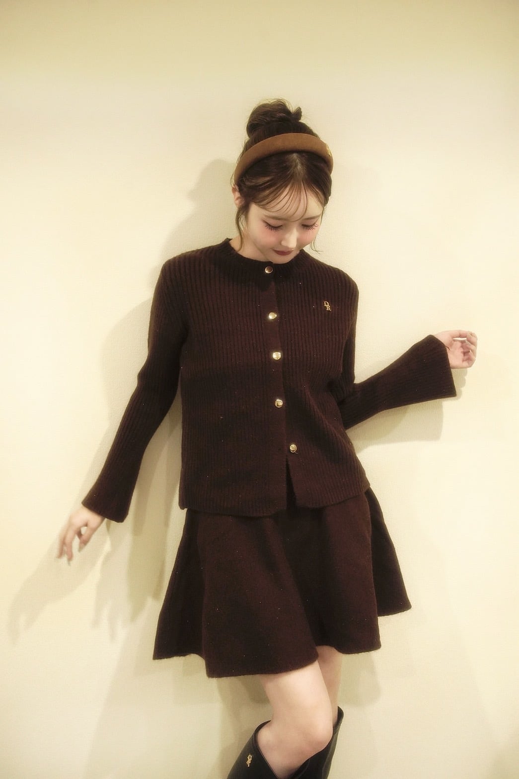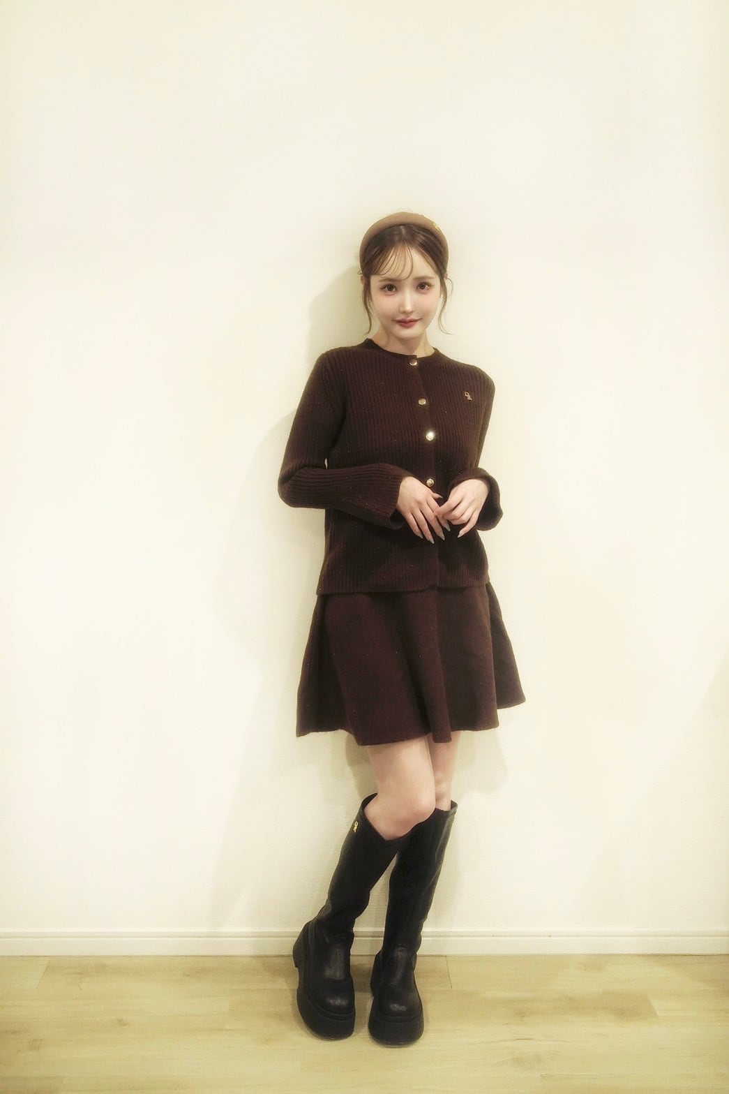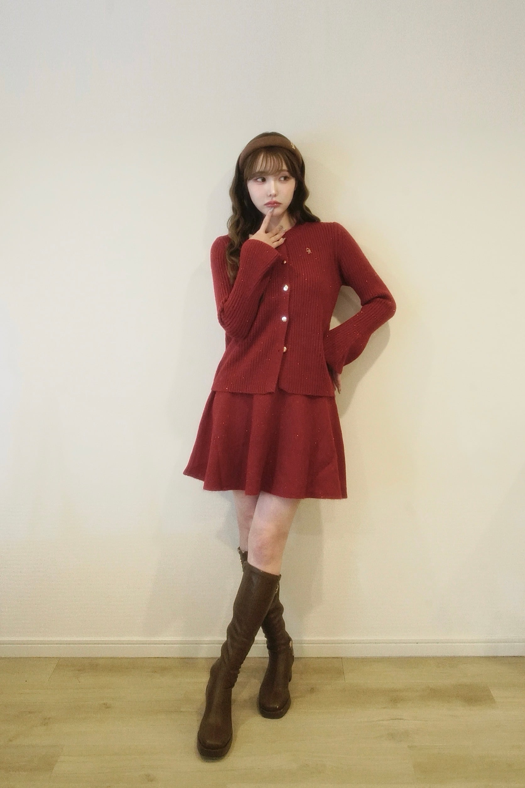 スカートは、ふんわりと広がるフレアシルエットが脚を細く見せてくれて、動く度に揺れる裾が女性らしさを引き立てます。