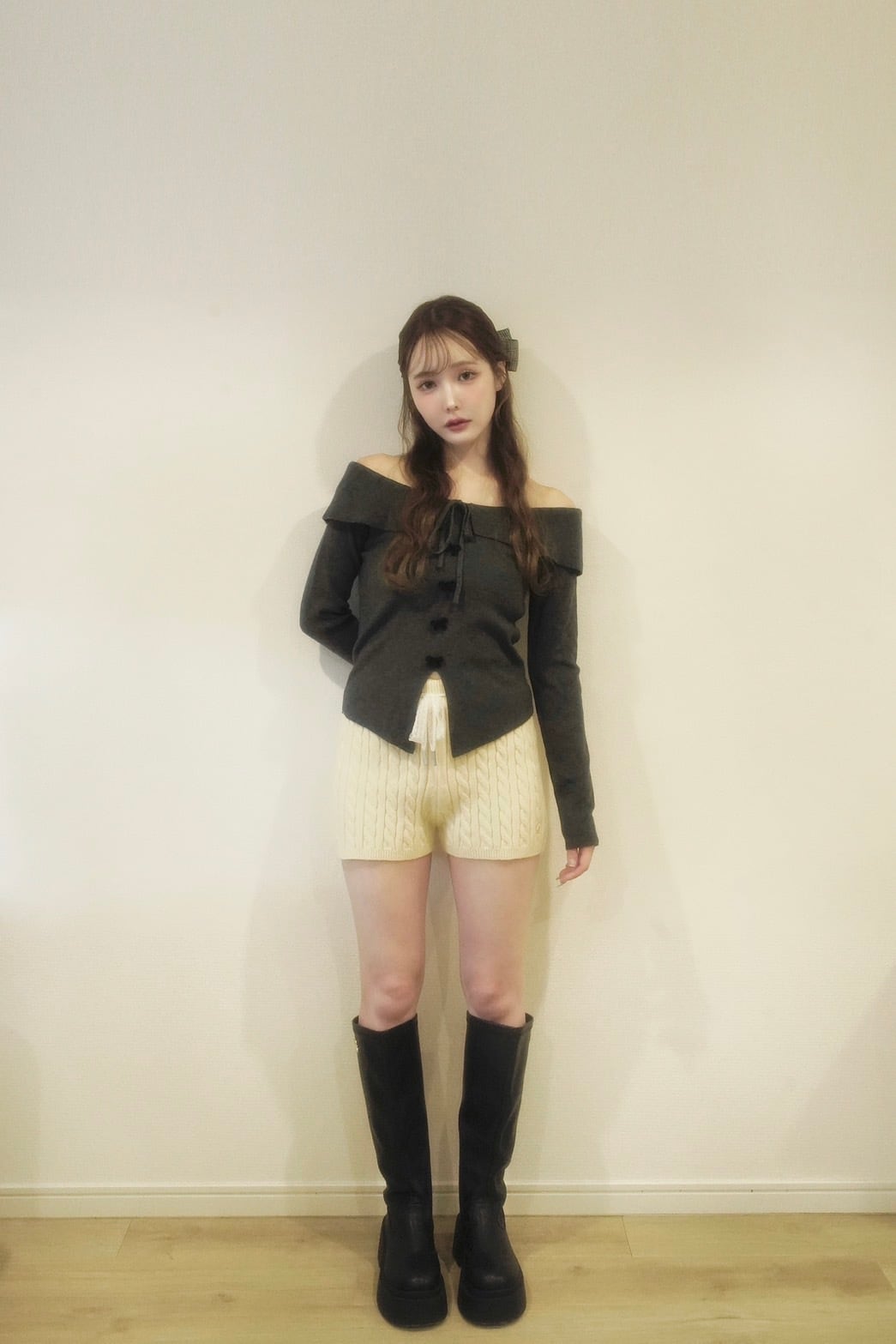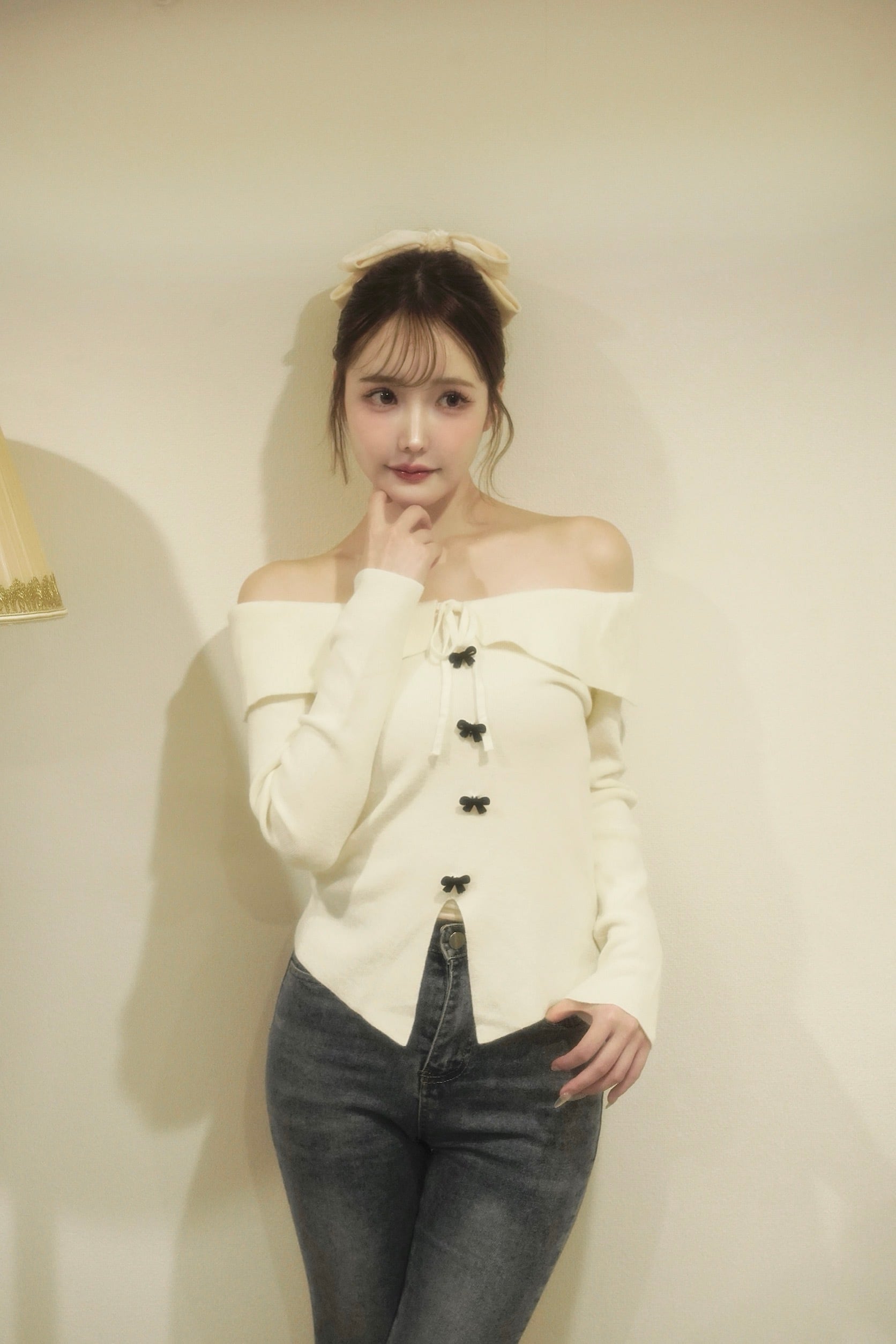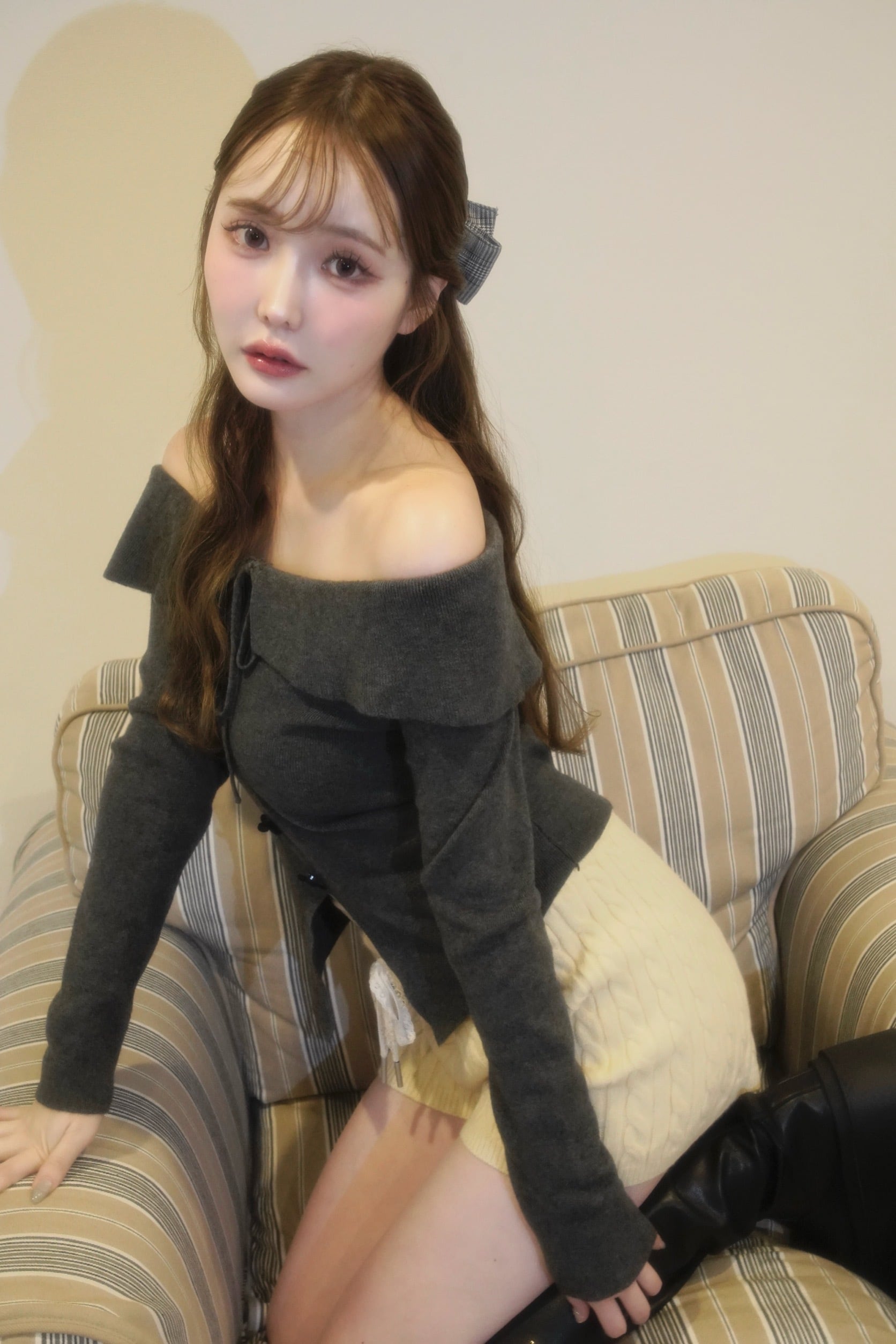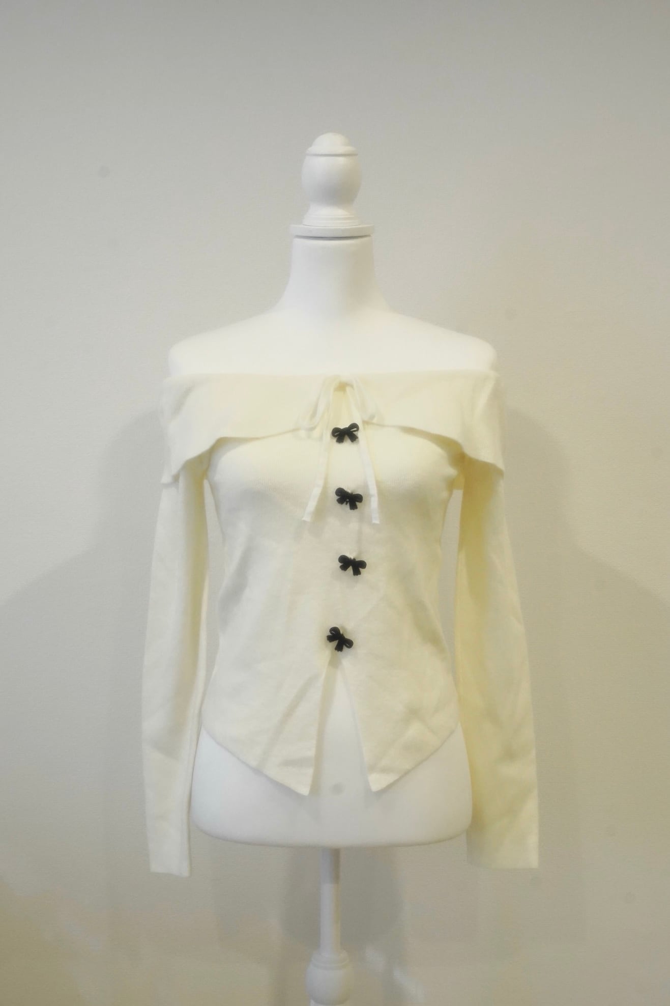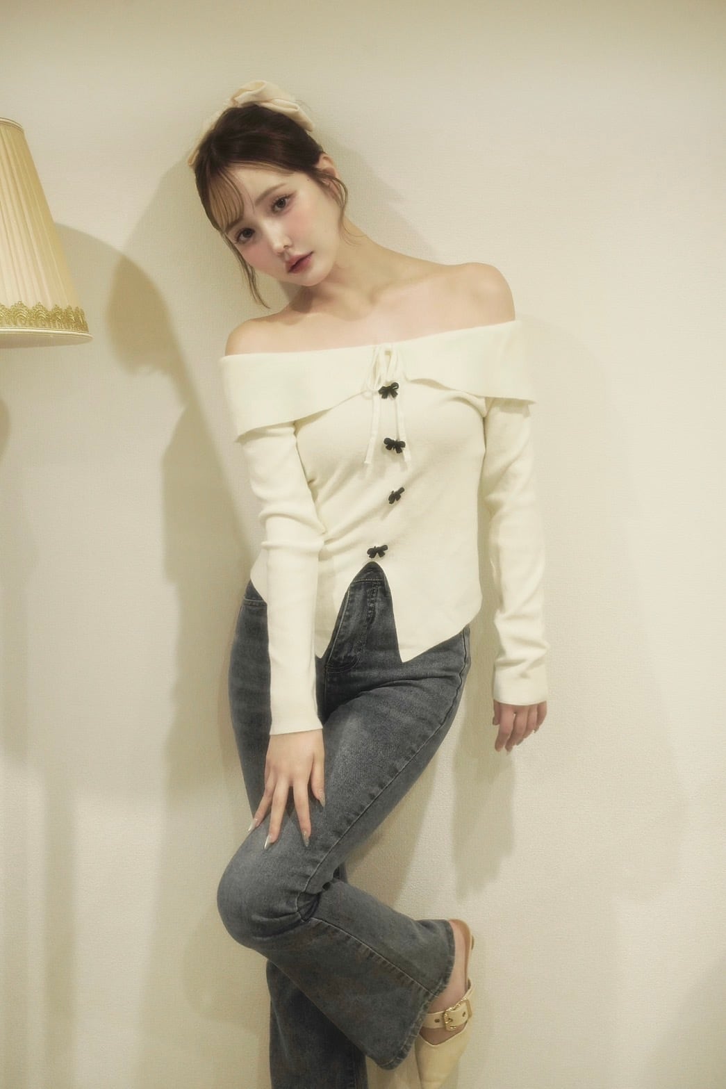 さらに、胸元のリボンで肩周りのオフショル具合が調節可能なので、肩を出さない着方もできるのが嬉しいポイント。
