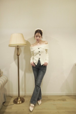 デコルテを美しく魅せるオフショルデザインが、女性らしい抜け感を演出。