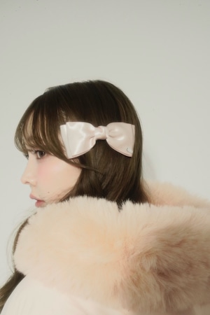・satin ribbon barrette (pink / silver)