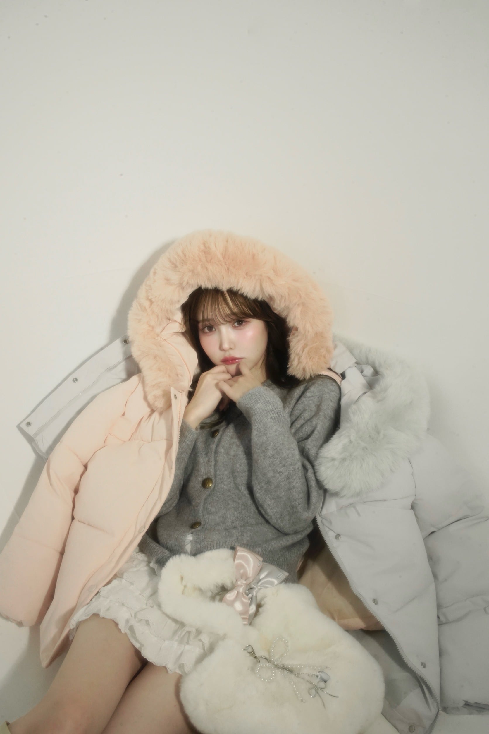 ・fairy fur down coat (pink / ice blue)