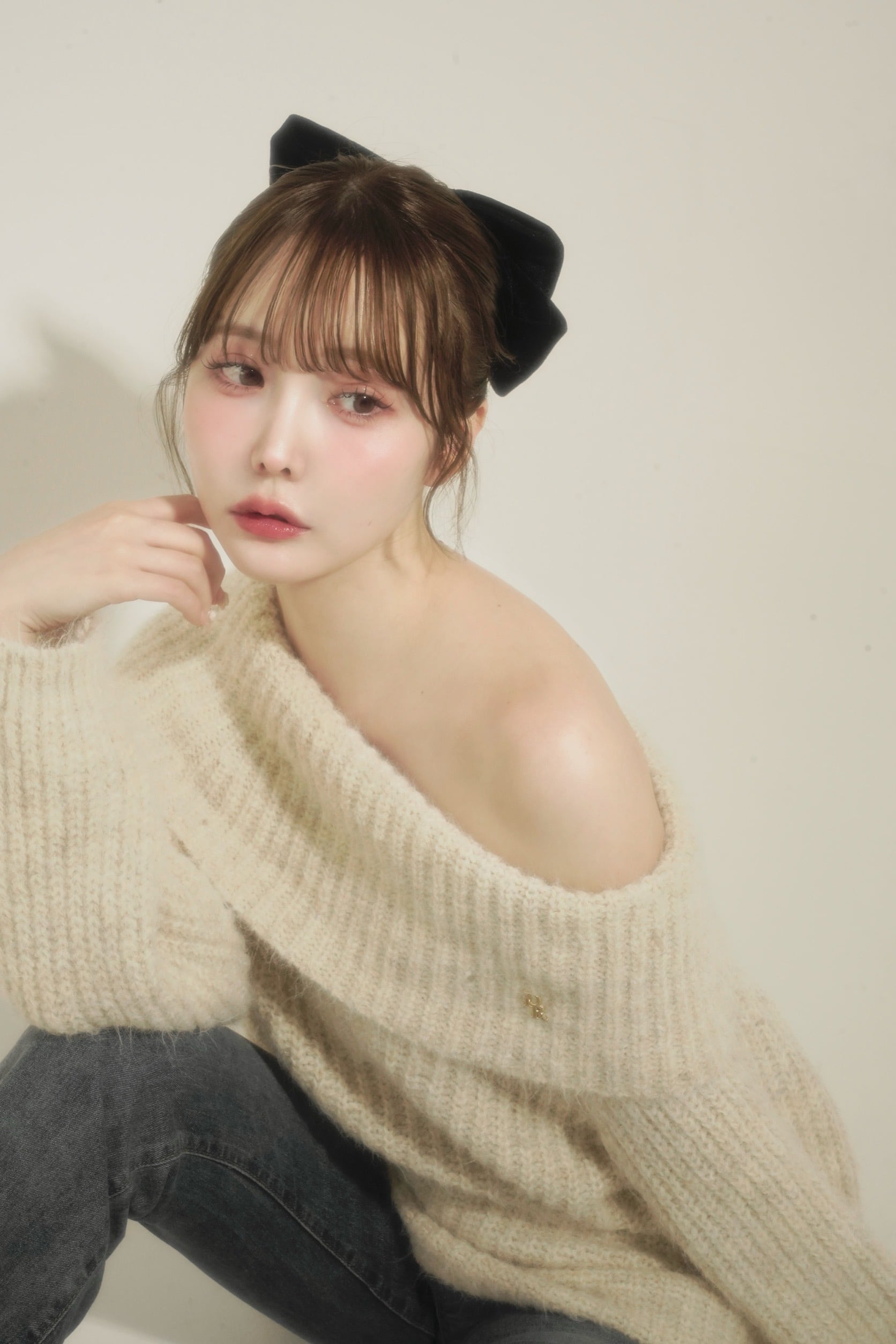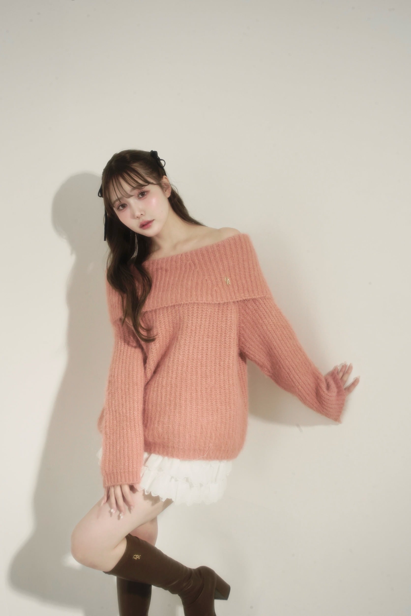 ふんわりとしたニット素材が思わず触れたくなるような柔らかさと、女性らしい温もりを感じさせる1枚。