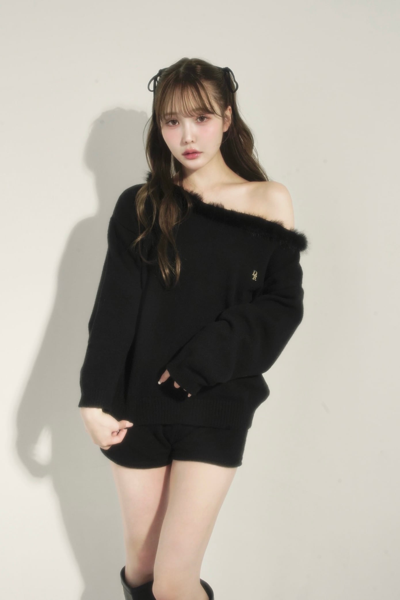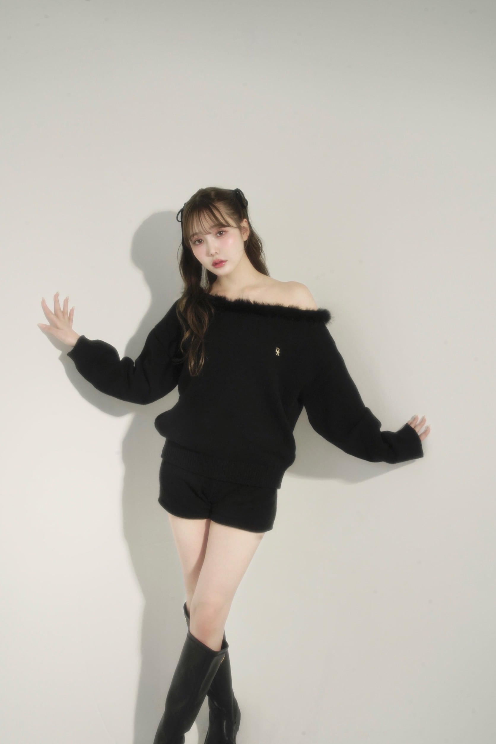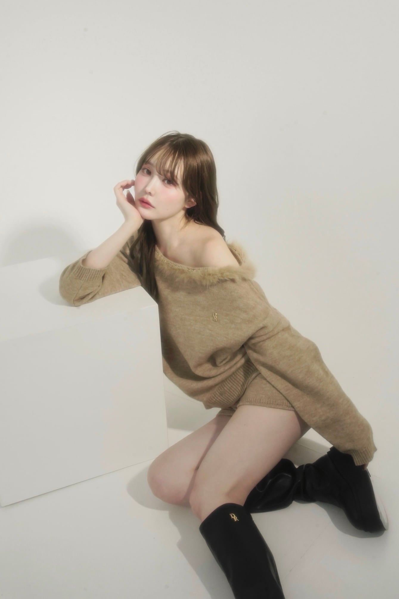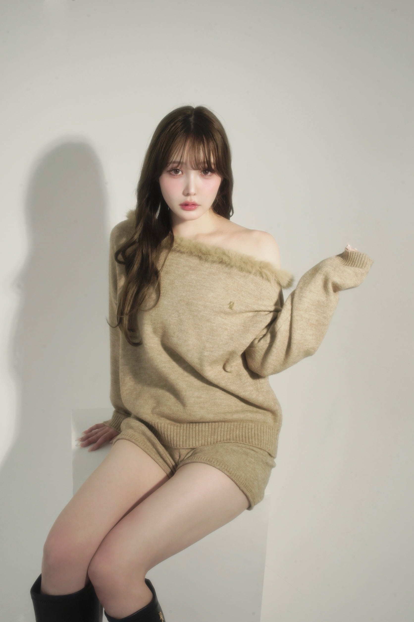 贅沢にあしらったふわふわファーが可愛いニットセットアップ。