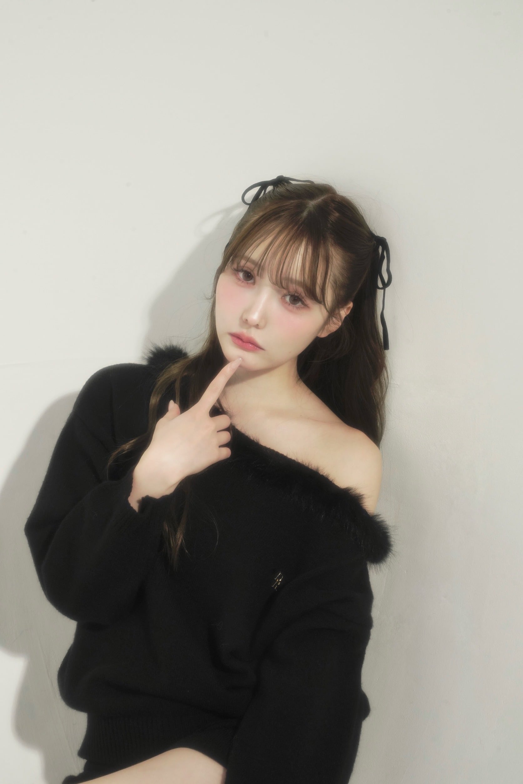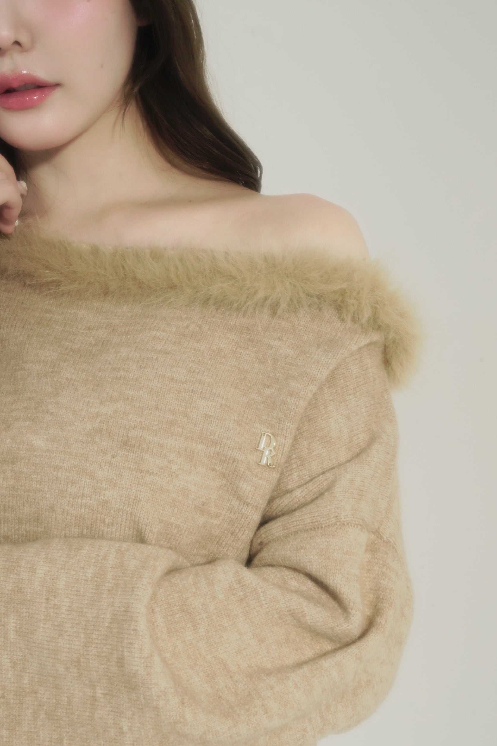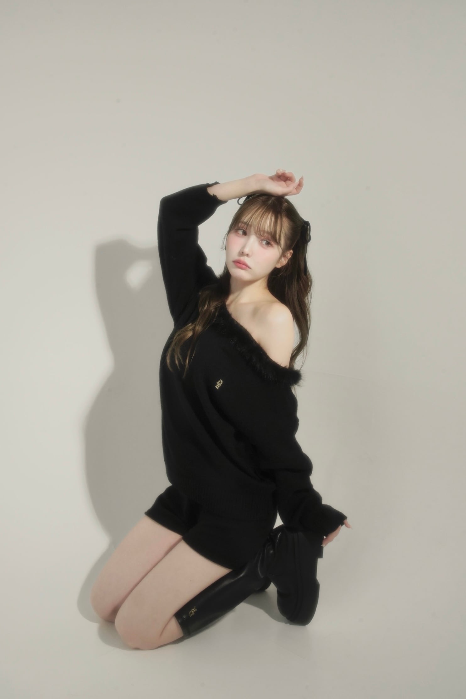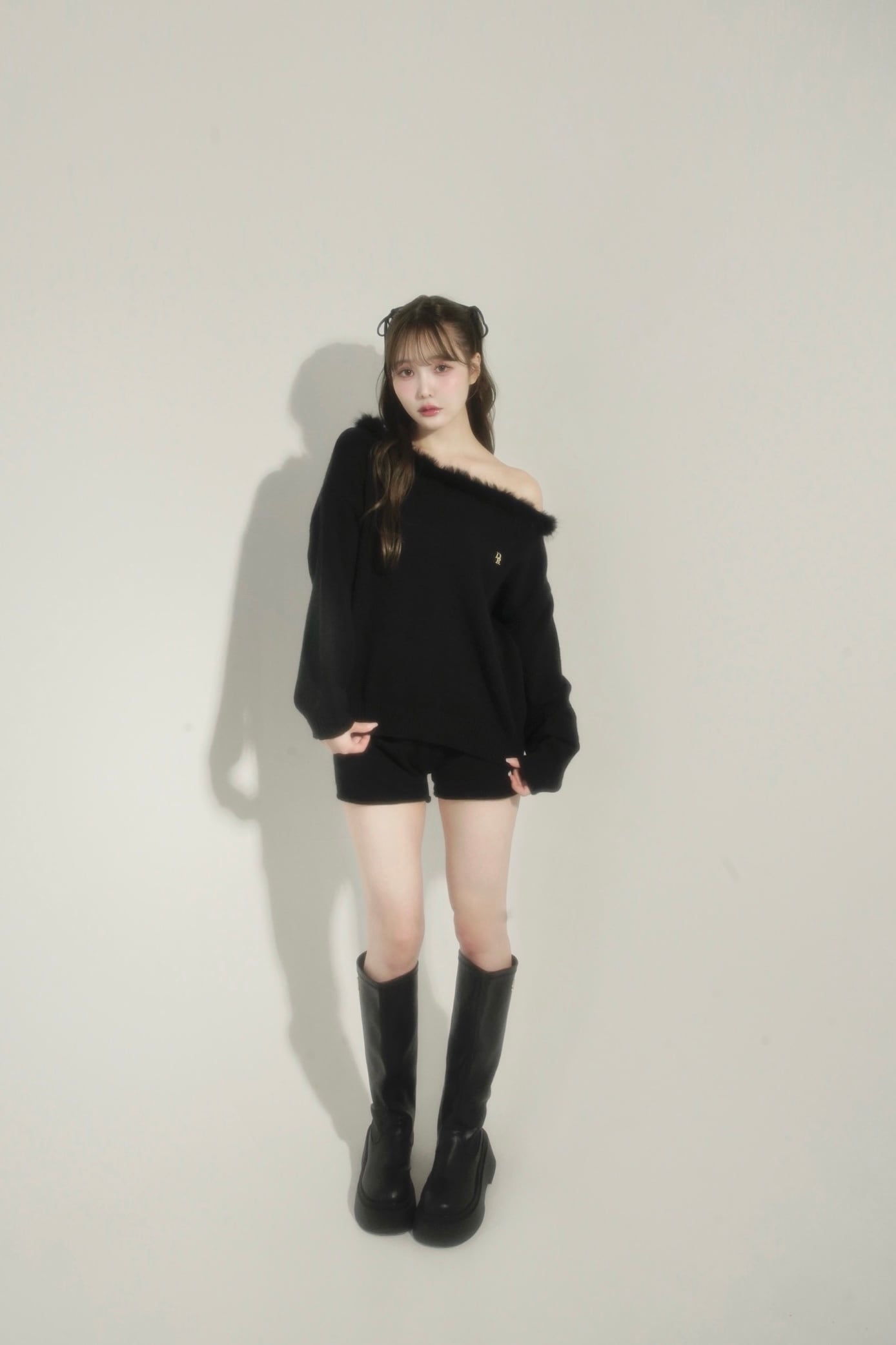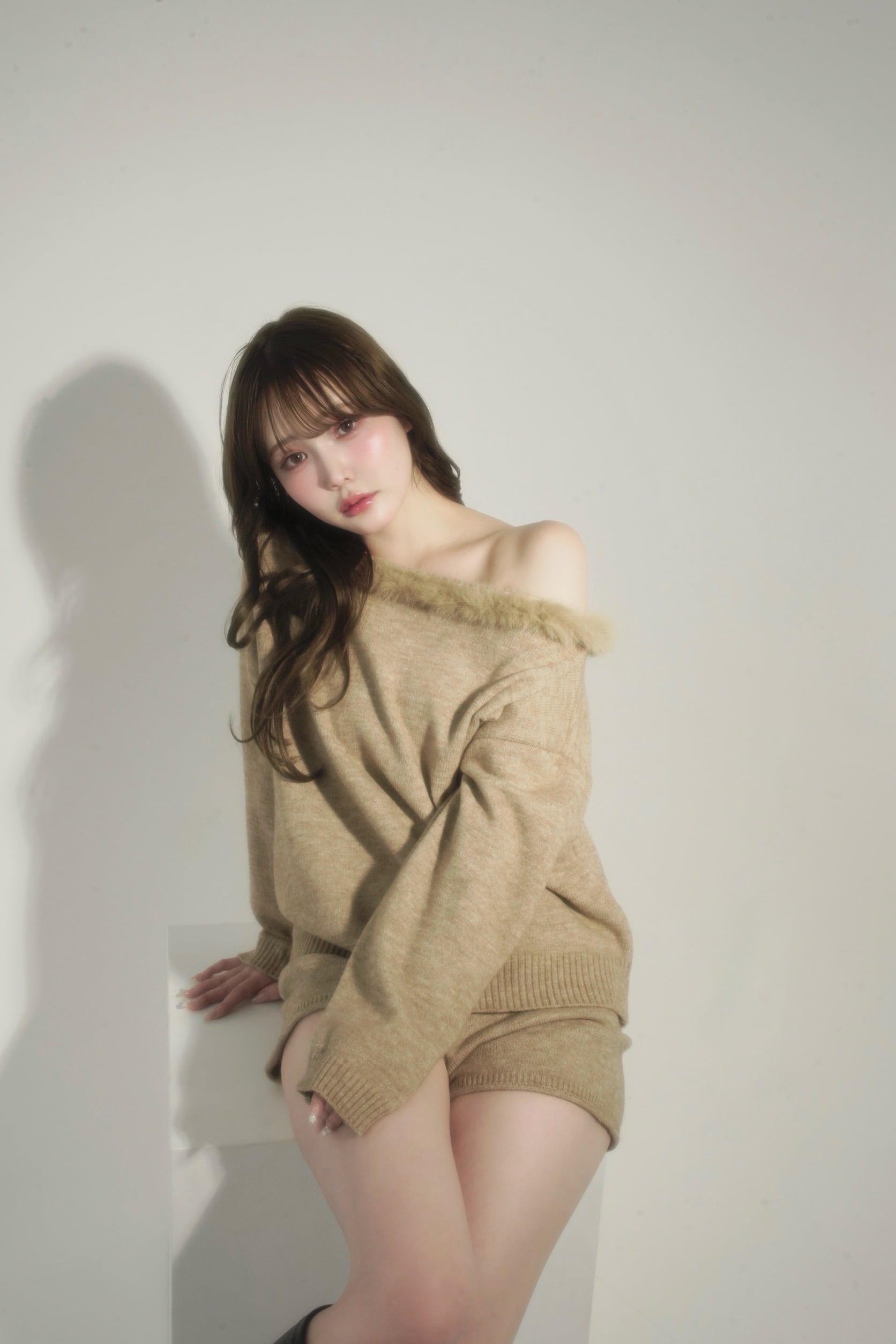 贅沢にあしらったふわふわファーが可愛いニットセットアップ。