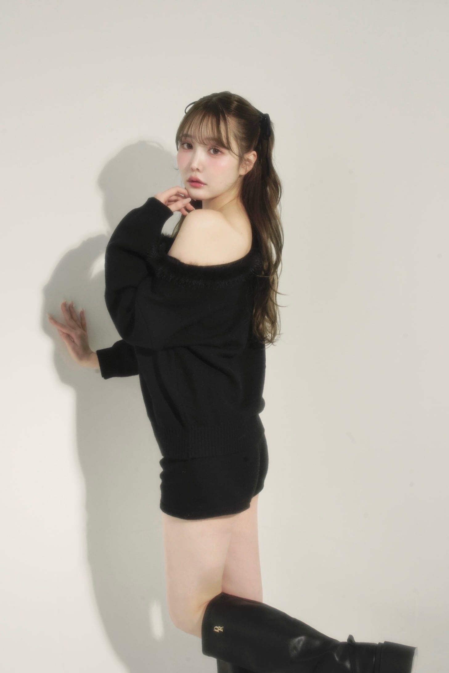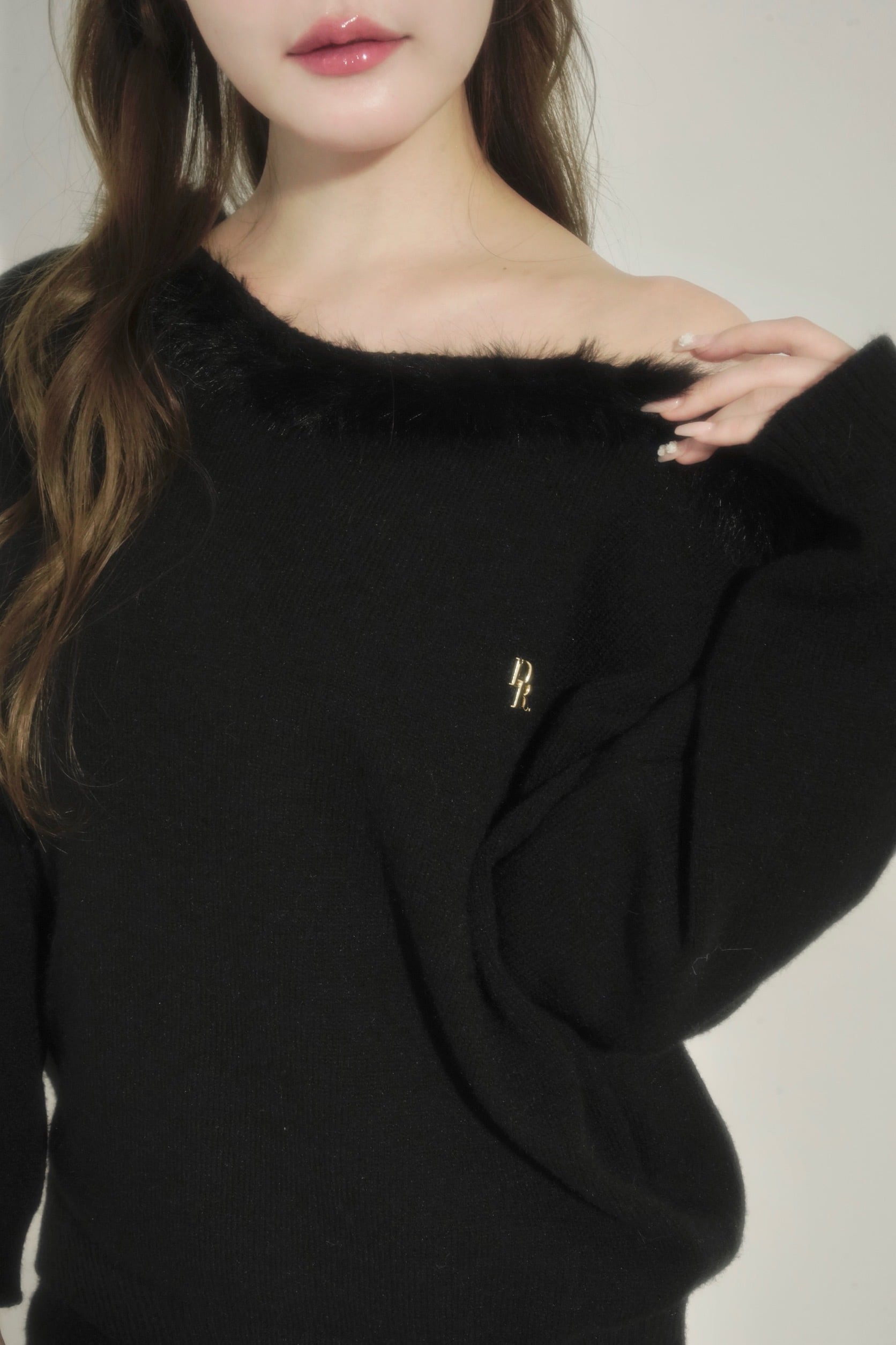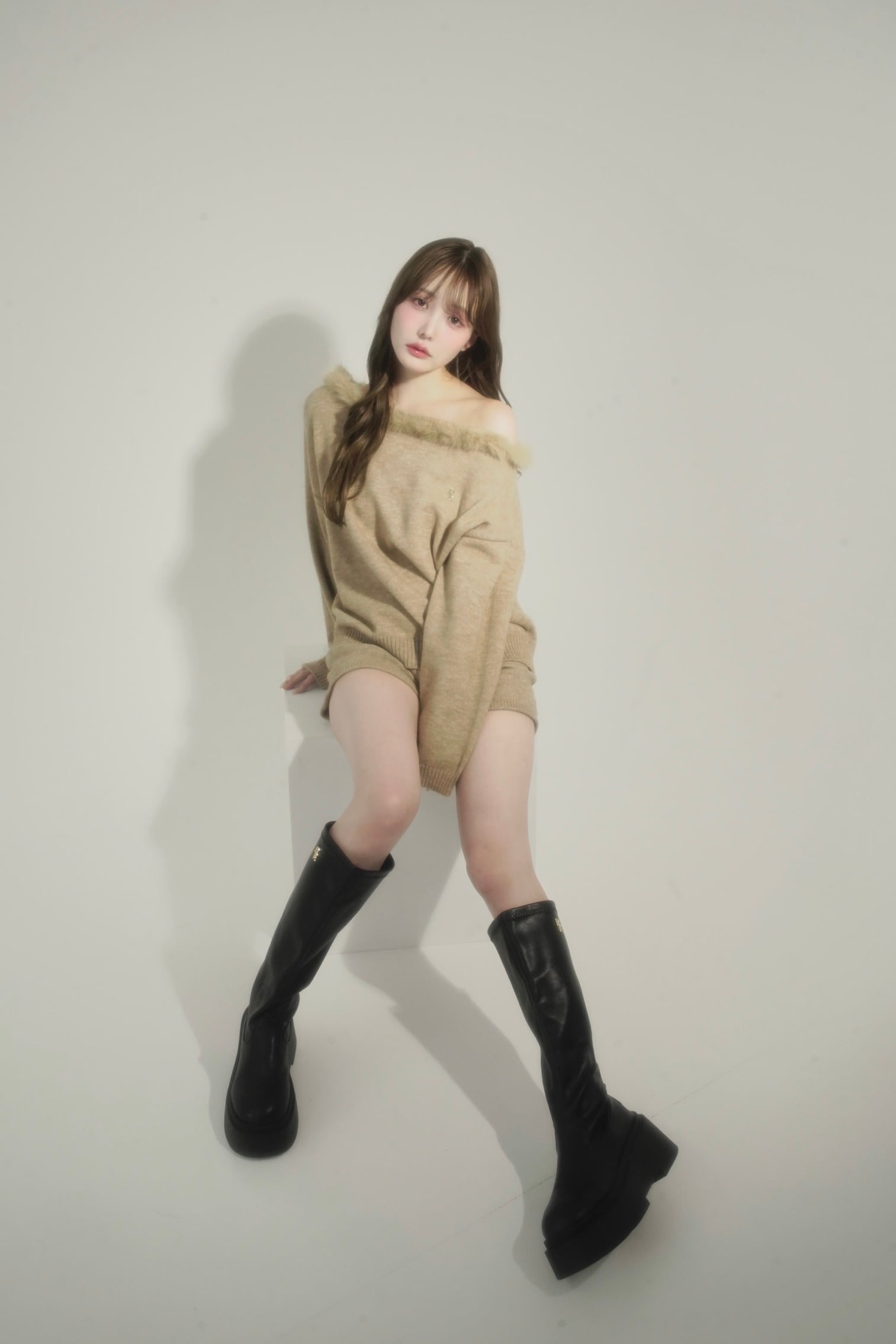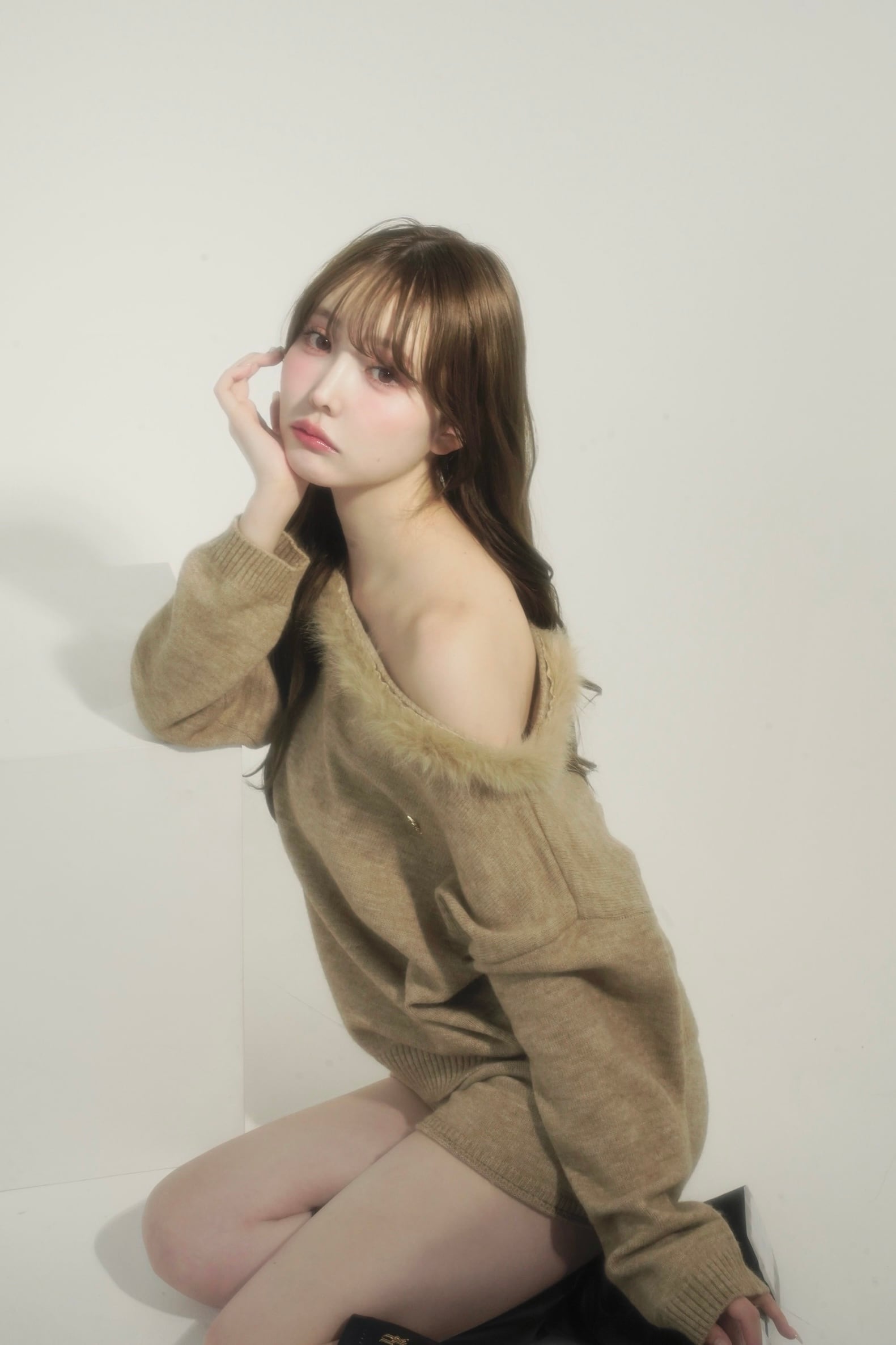 贅沢にあしらったふわふわファーが可愛いニットセットアップ。