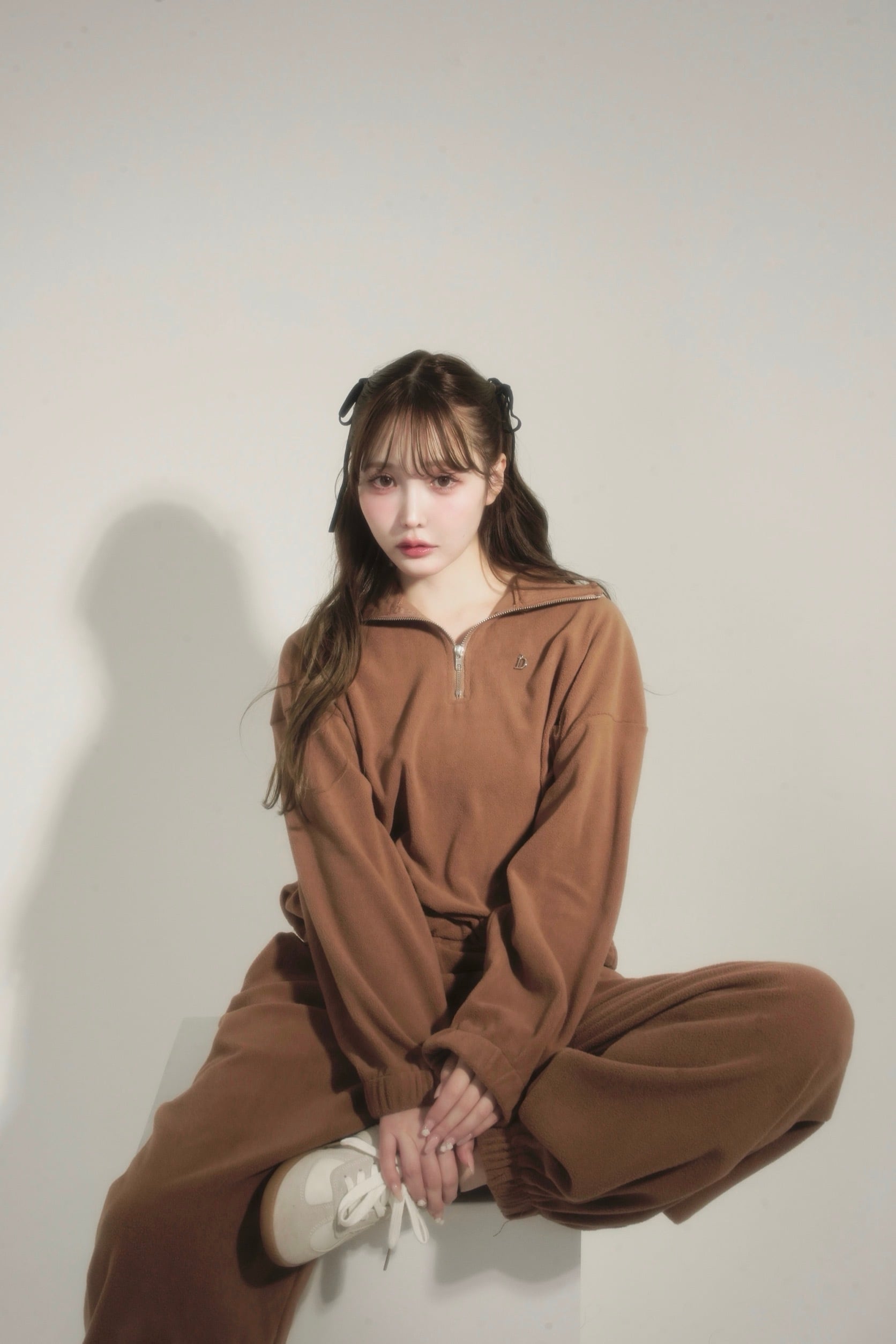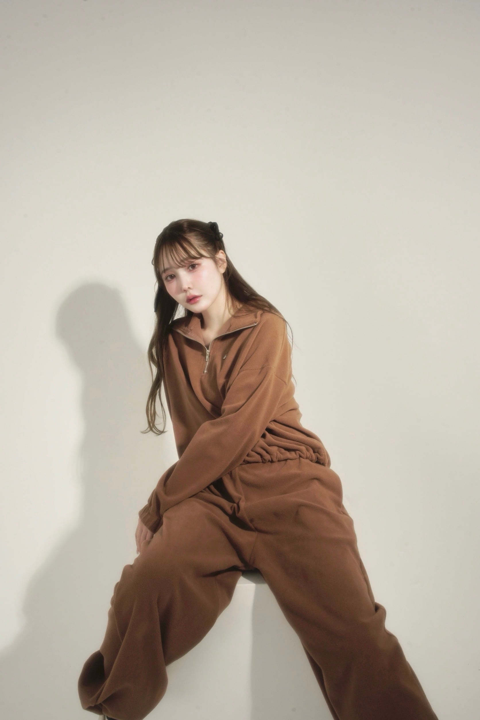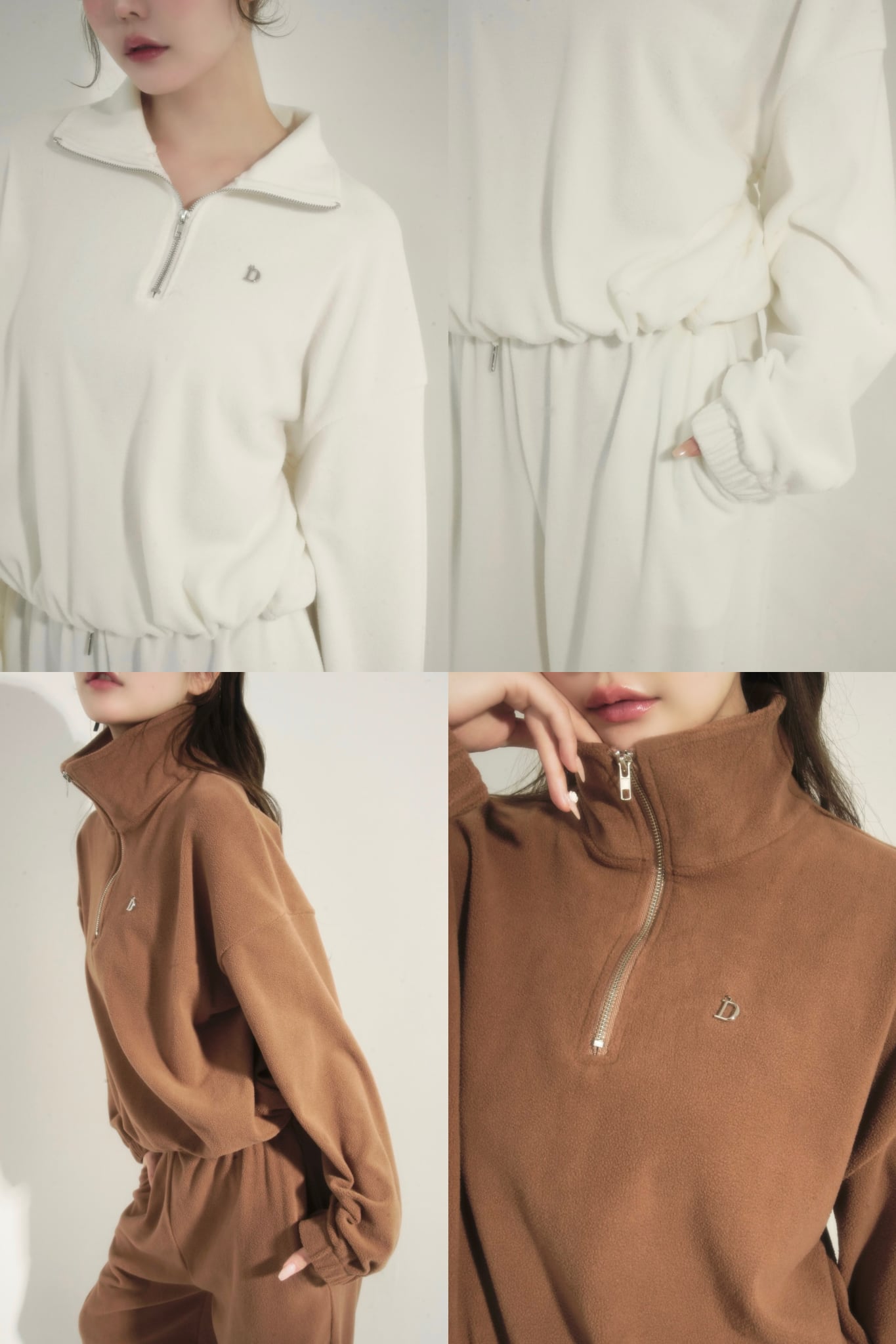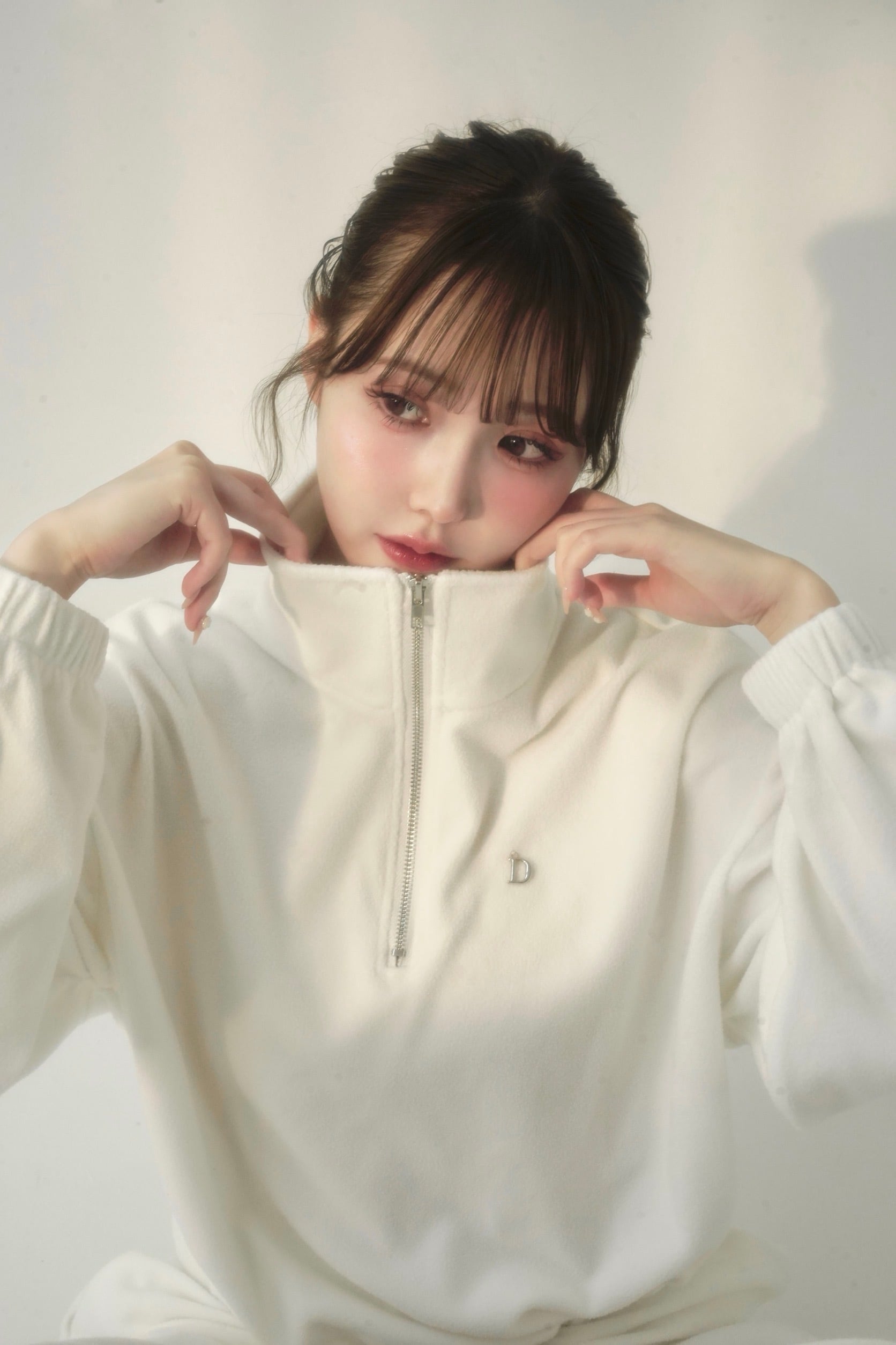 ハーフジップがワンポイントと抜け感をプラスし、お顔周りをすっきりとした印象にしてくれます。