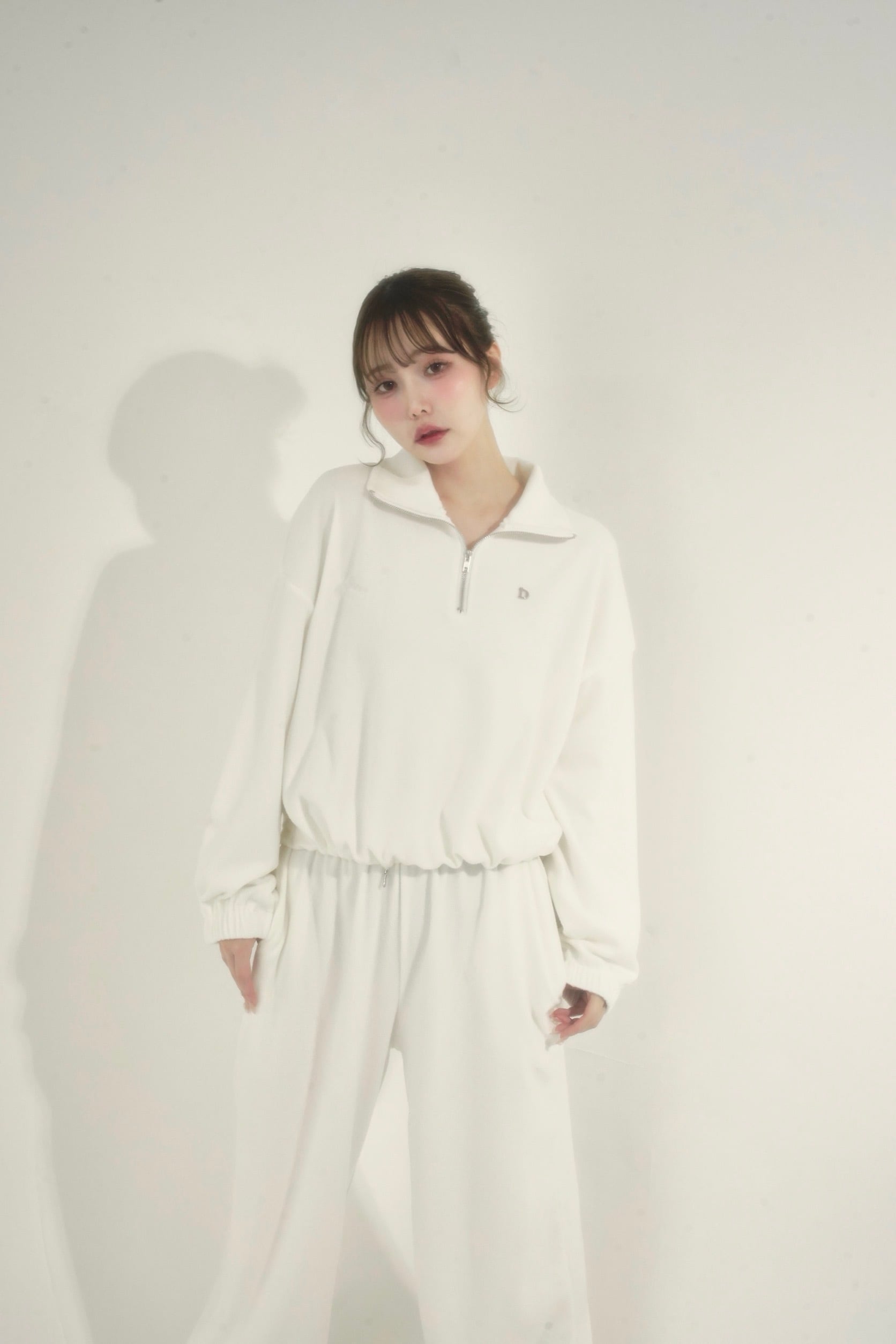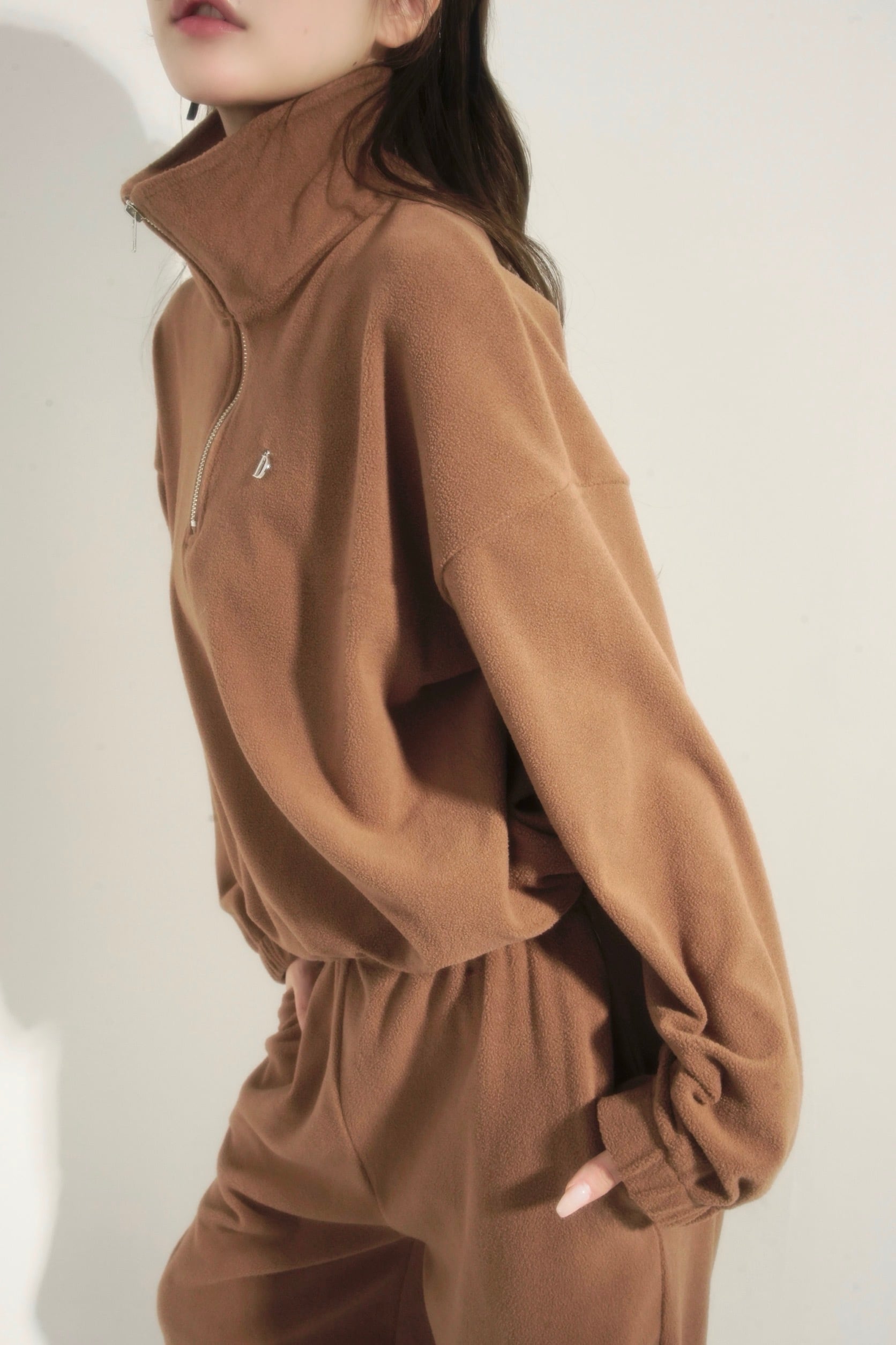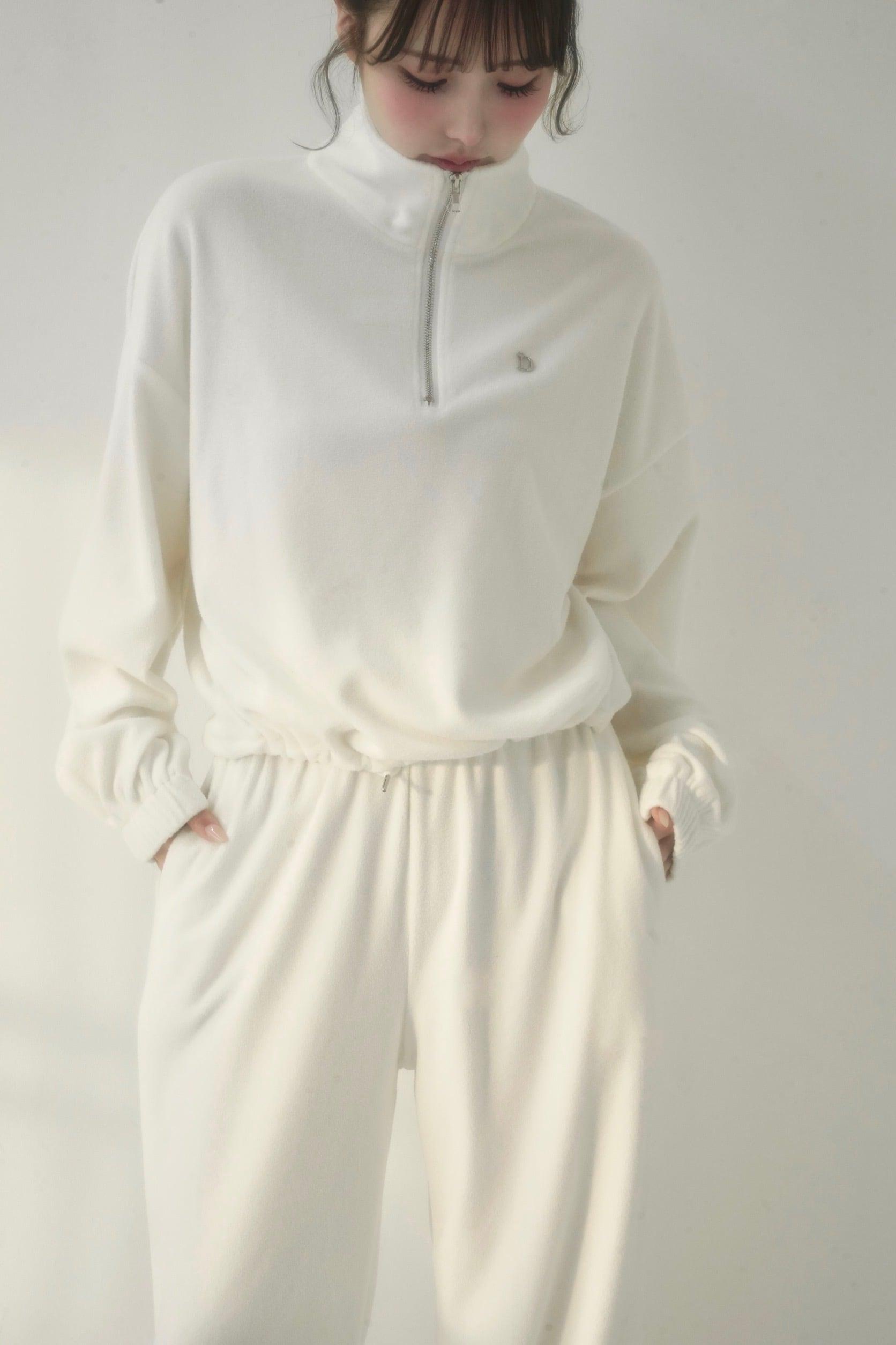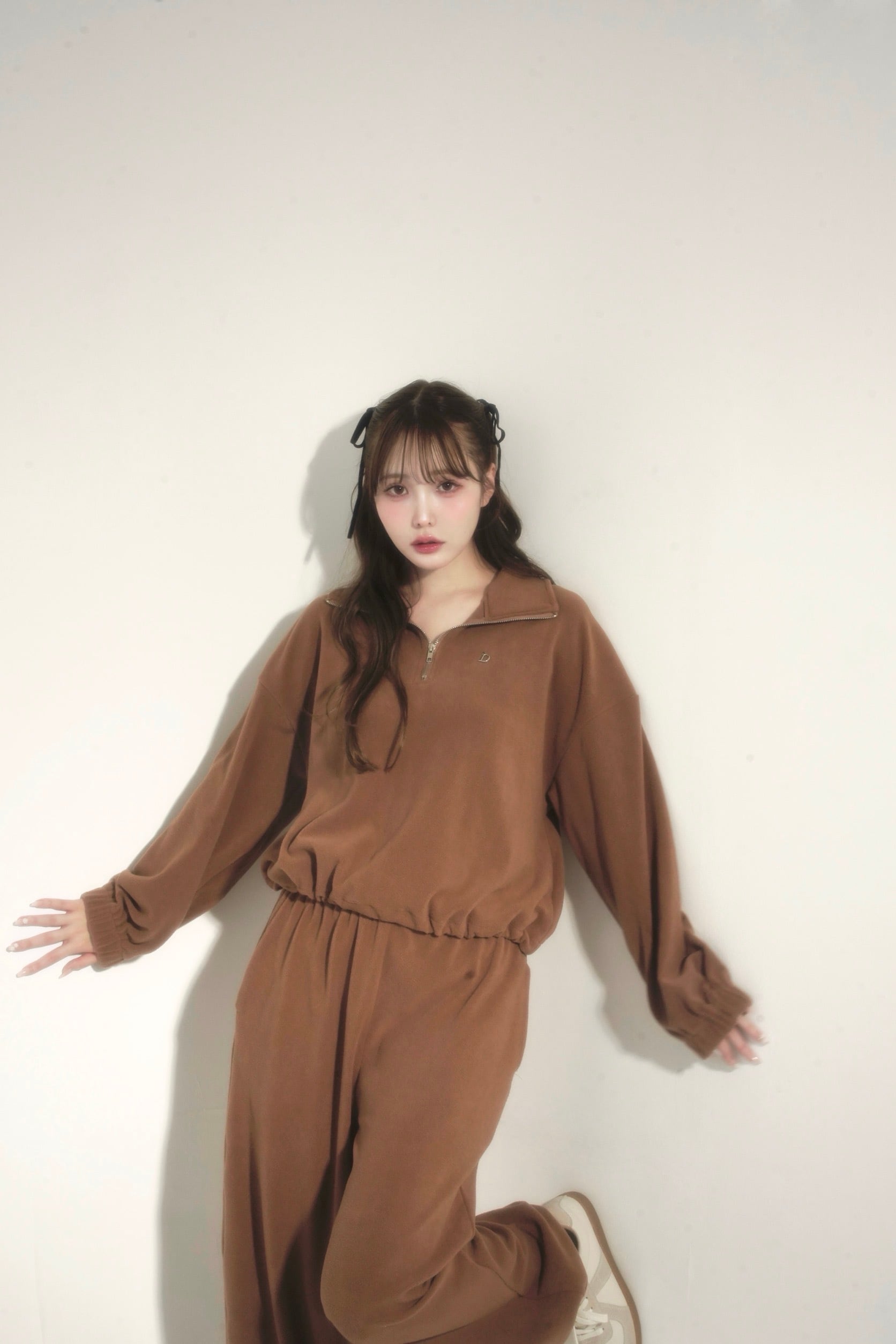ハーフジップがワンポイントと抜け感をプラスし、お顔周りをすっきりとした印象にしてくれます。