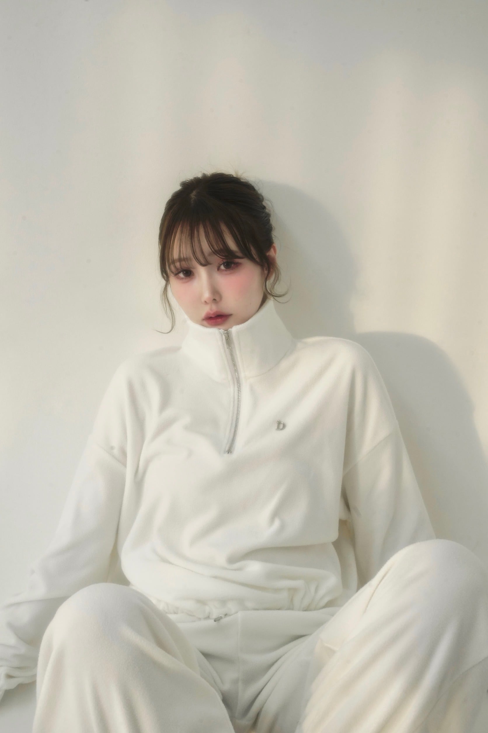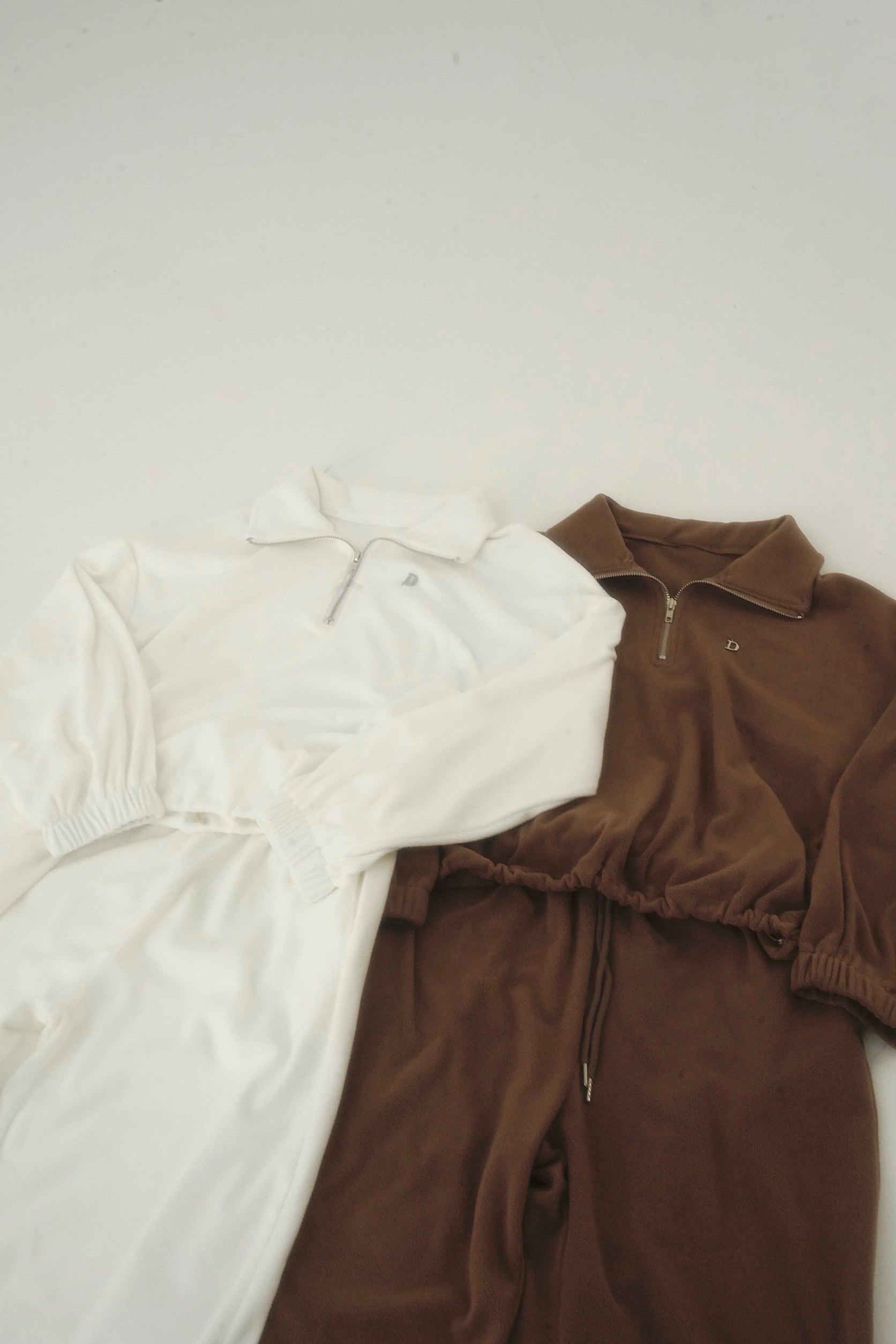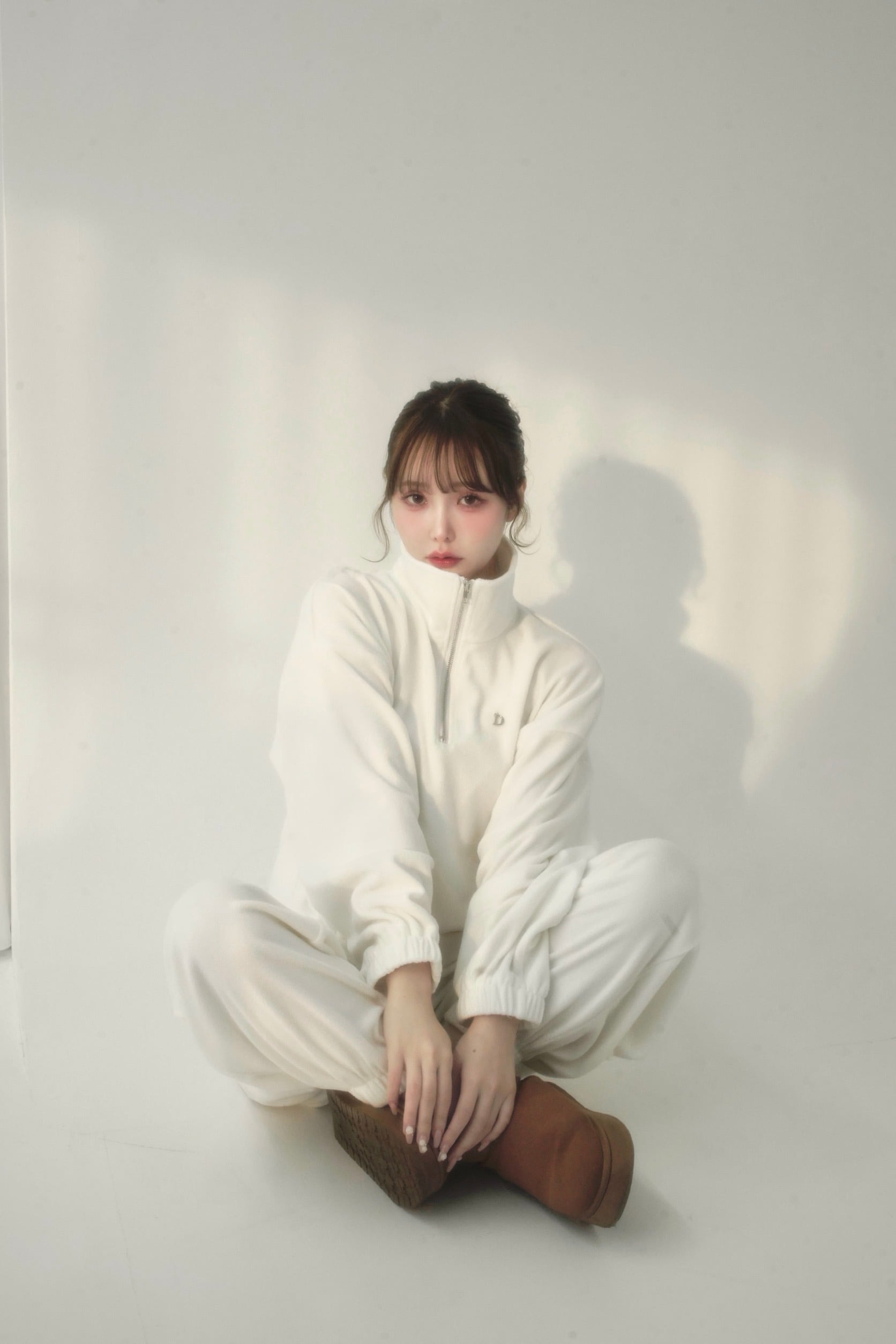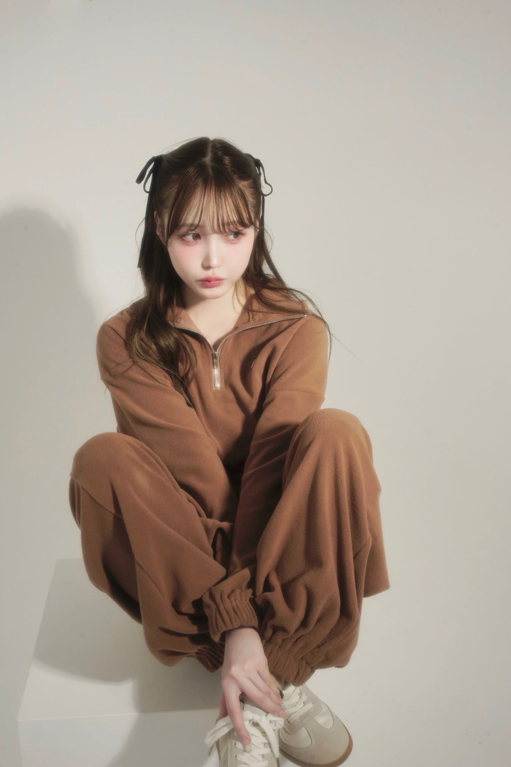 ハーフジップがワンポイントと抜け感をプラスし、お顔周りをすっきりとした印象にしてくれます。