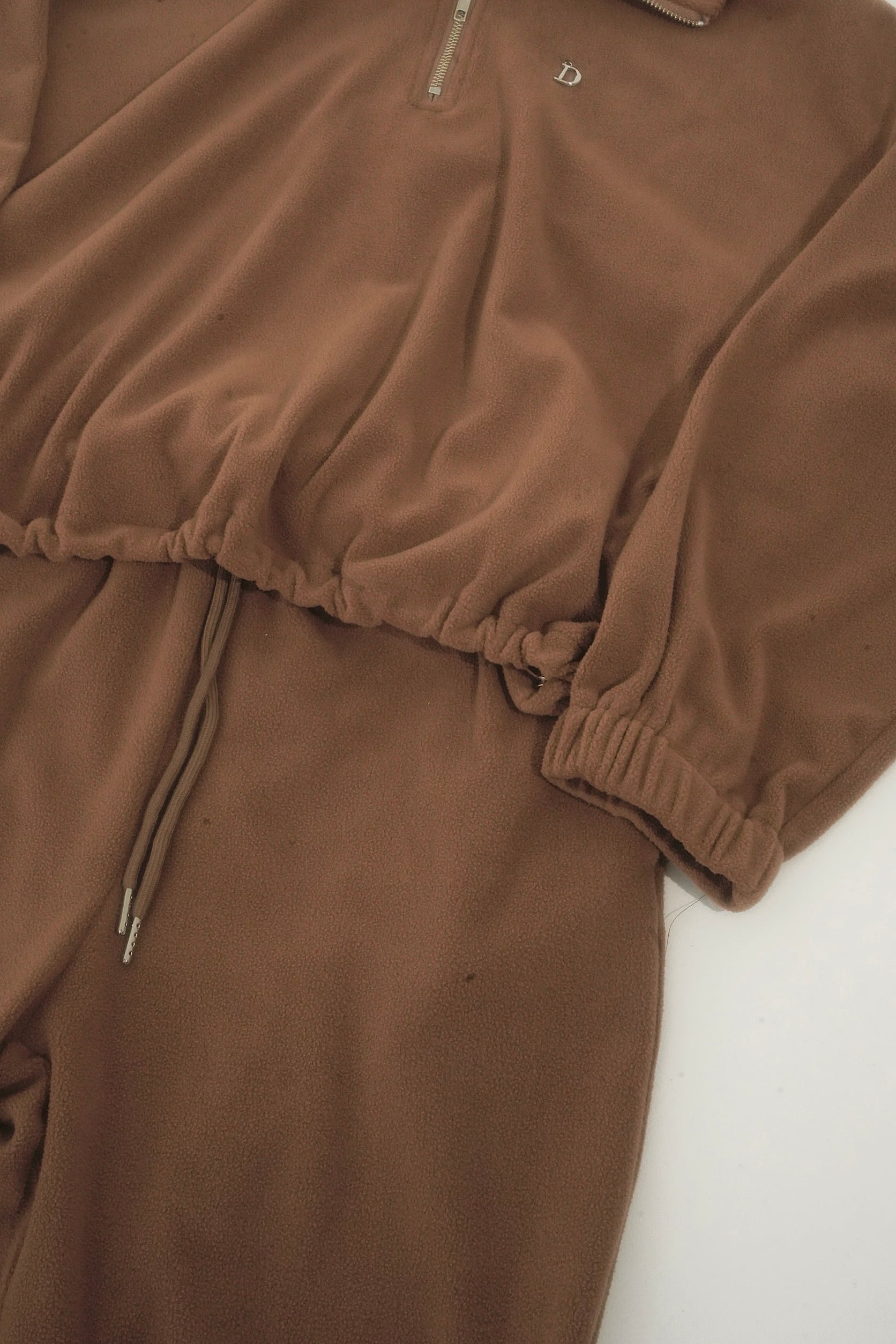 もこもこした表面感のあるボアと、肌触りの良いフリースが合わさったような素材を使用し、なめらかな質感で暖かさもある今の時期にぴったりな1着。
