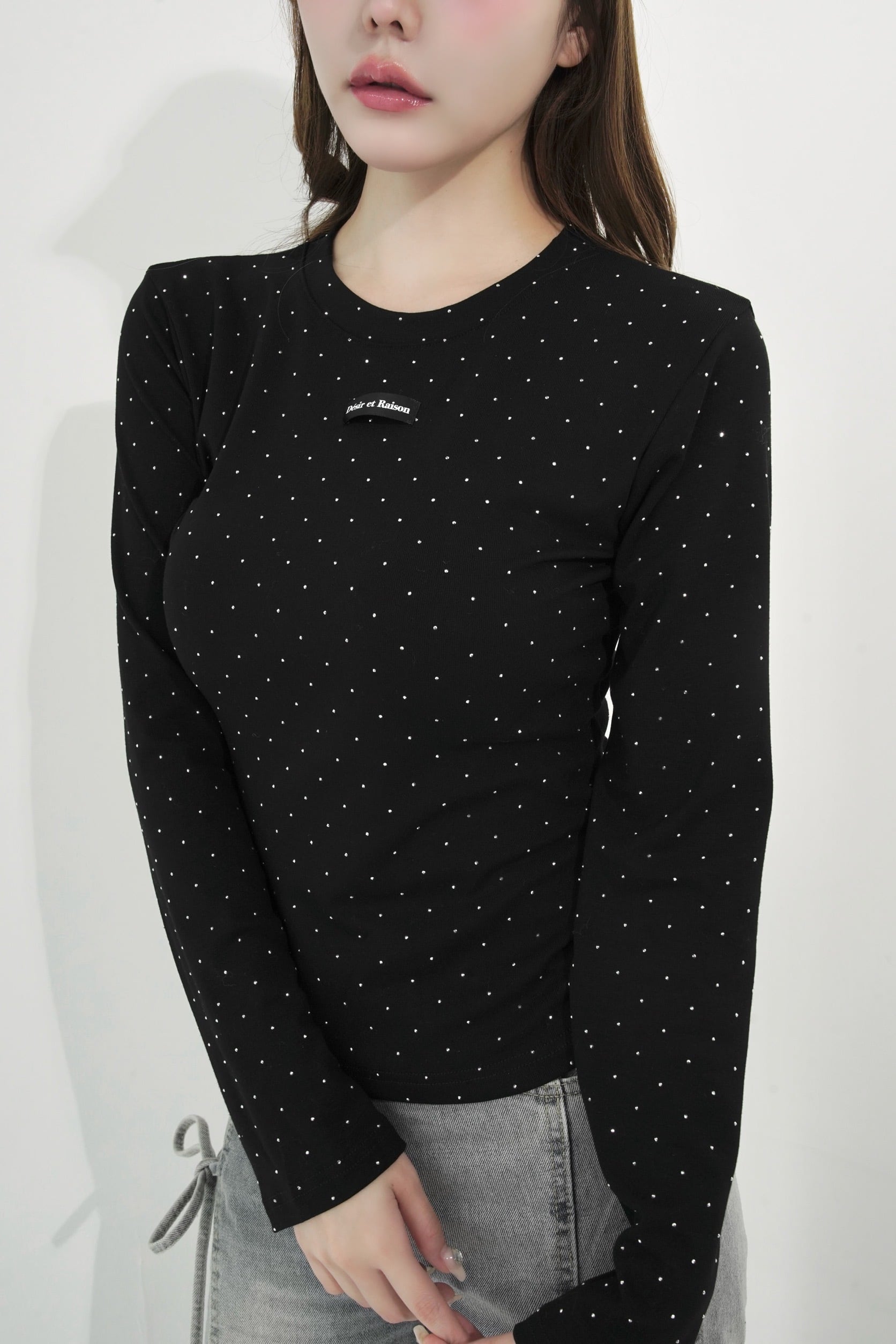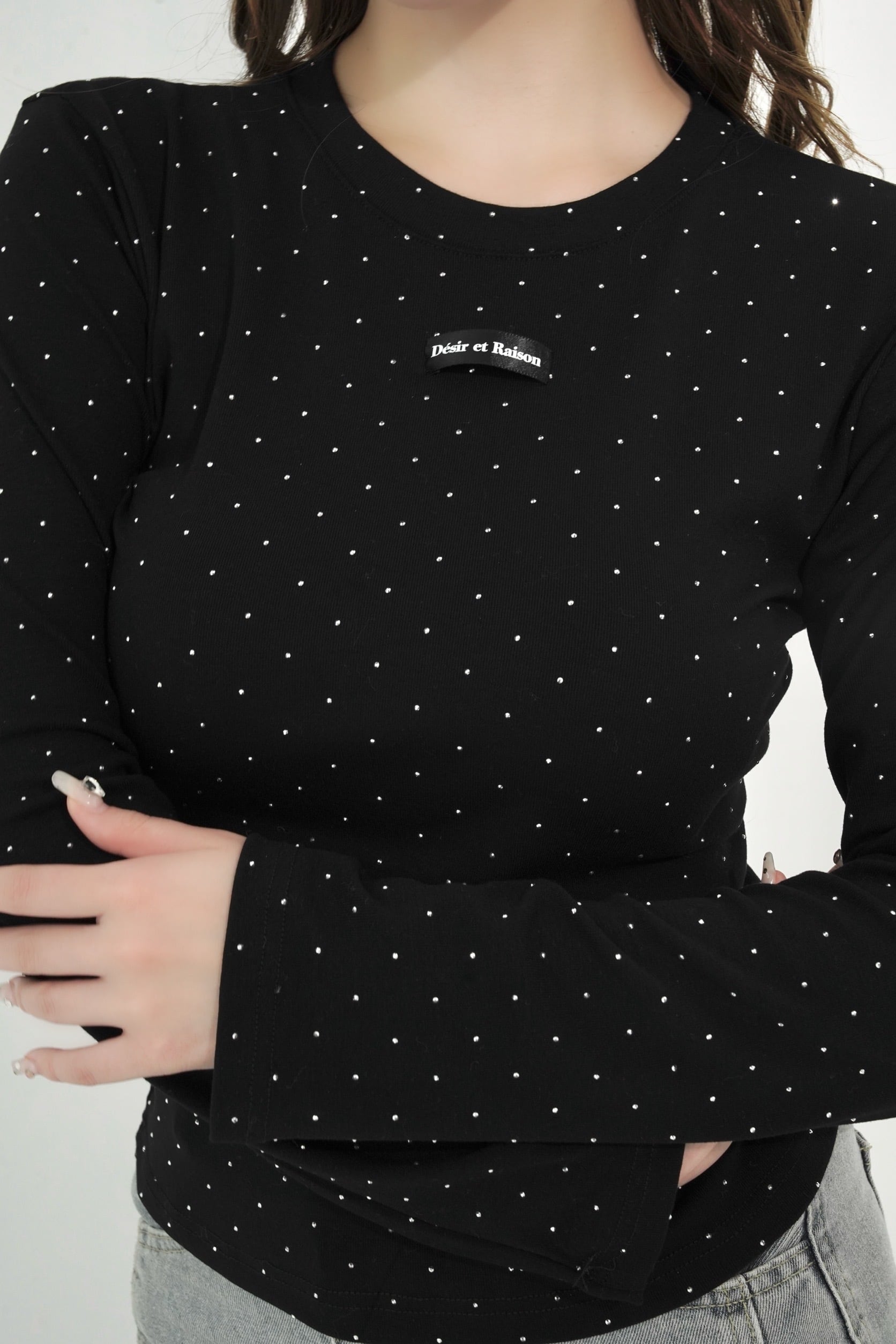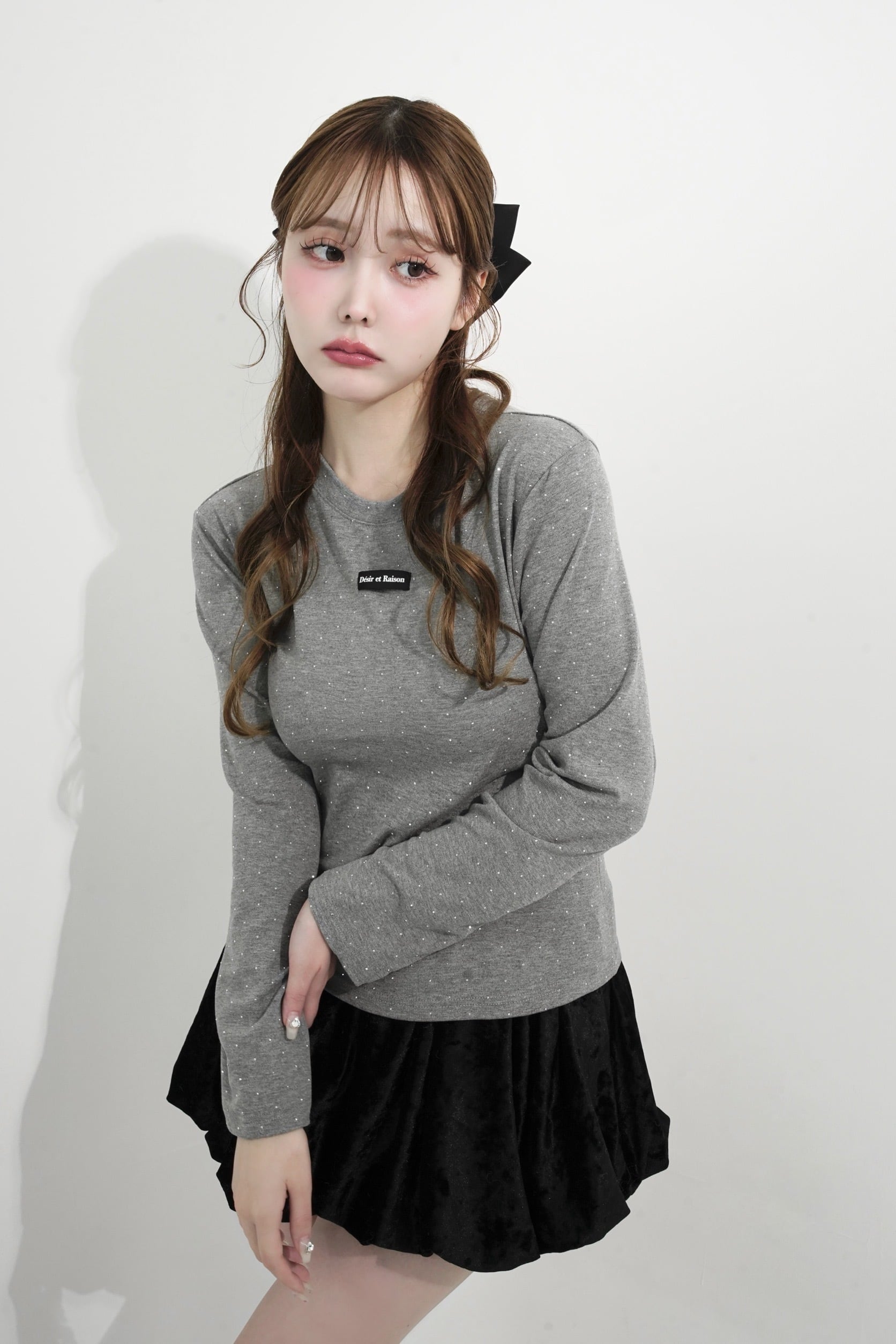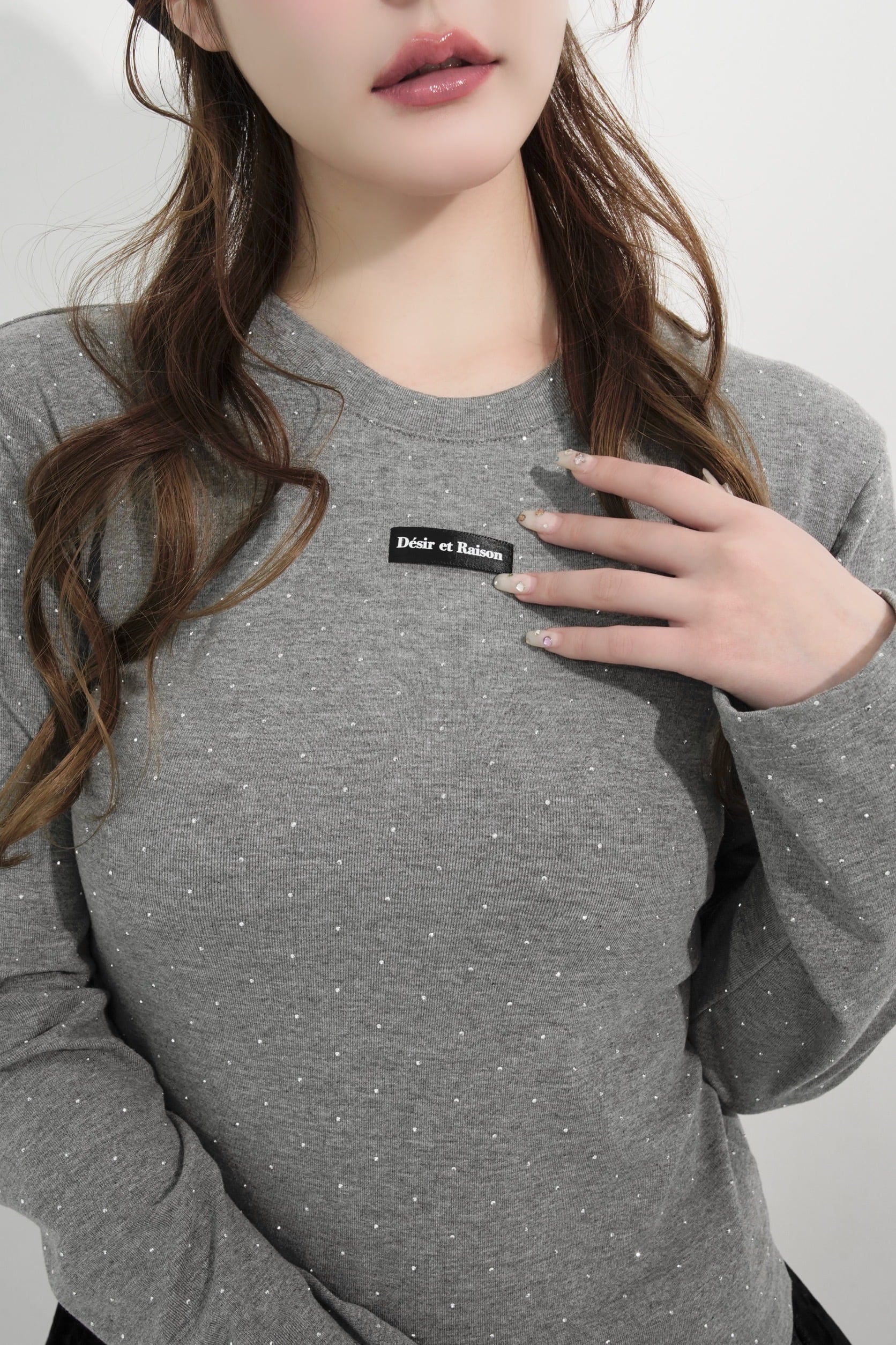 ストーンを贅沢にあしらい、胸元のDÉSIRネームがパッと目を惹く、主役級ロンT。