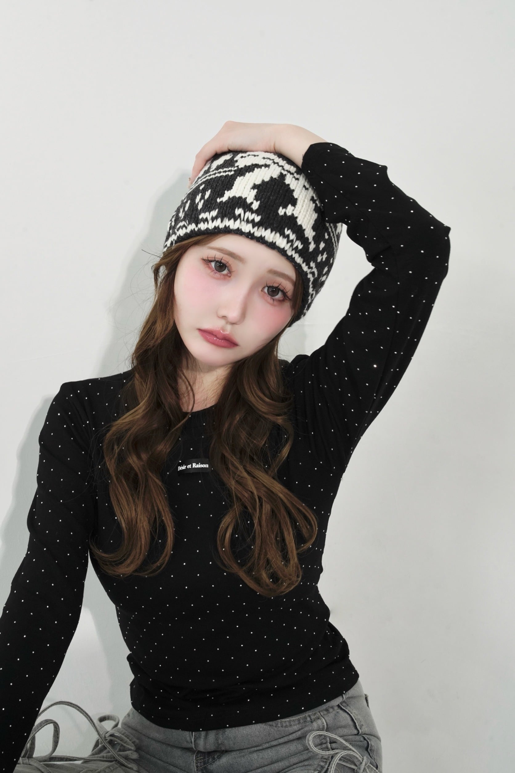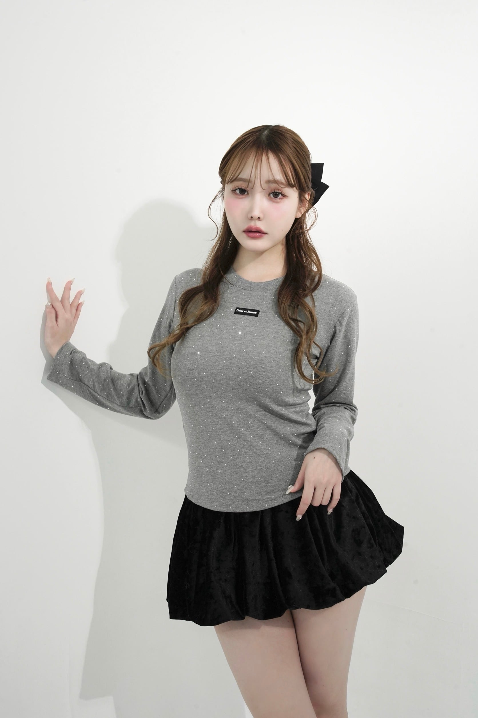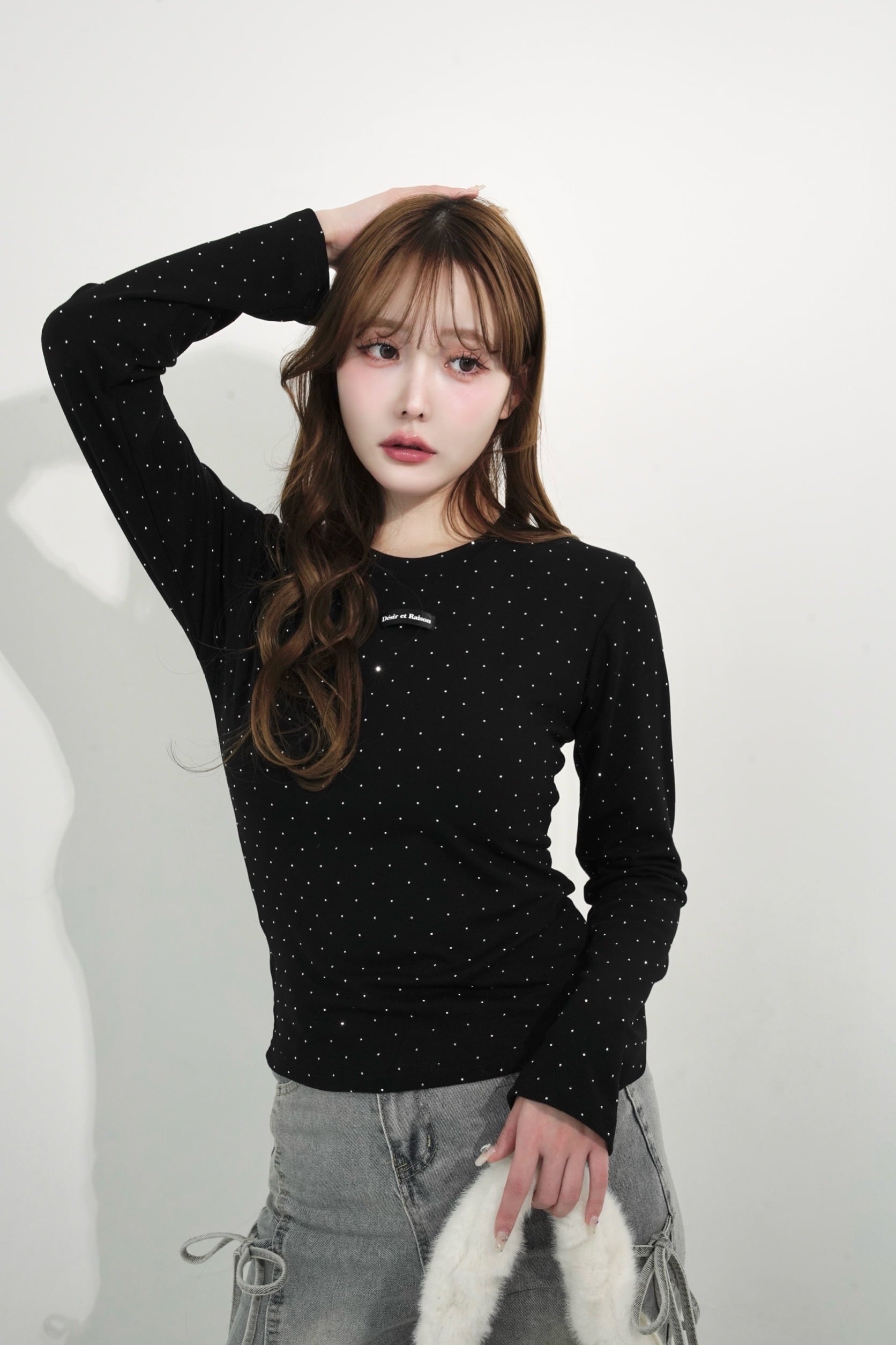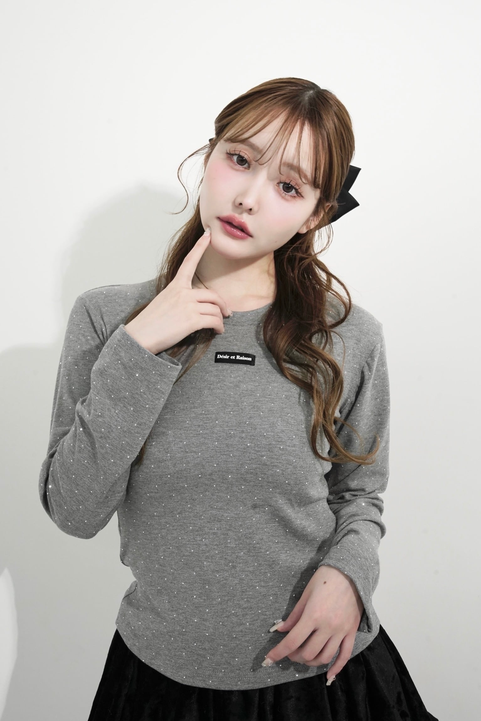 ストーンを贅沢にあしらい、胸元のDÉSIRネームがパッと目を惹く、主役級ロンT。