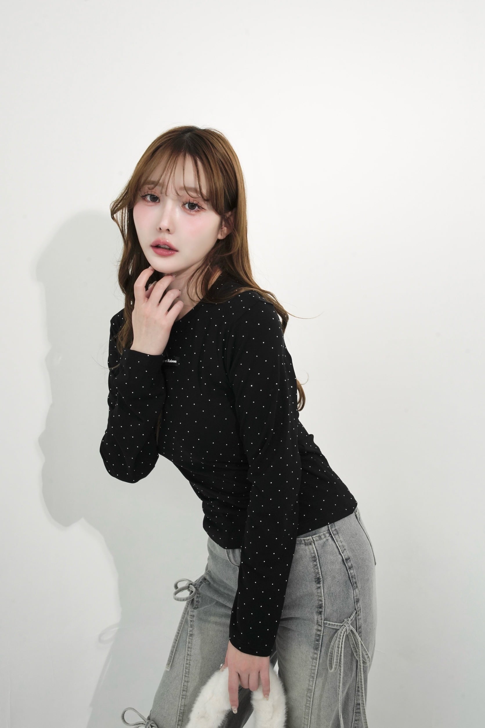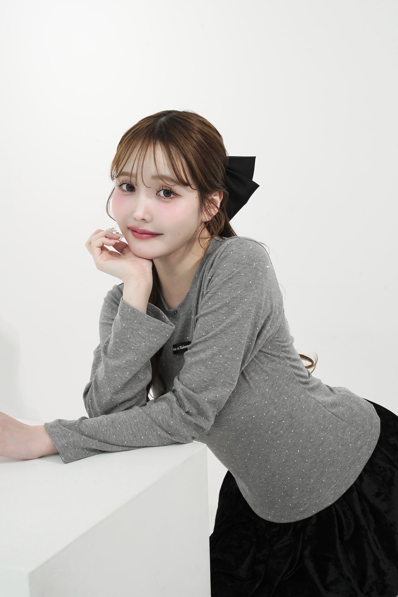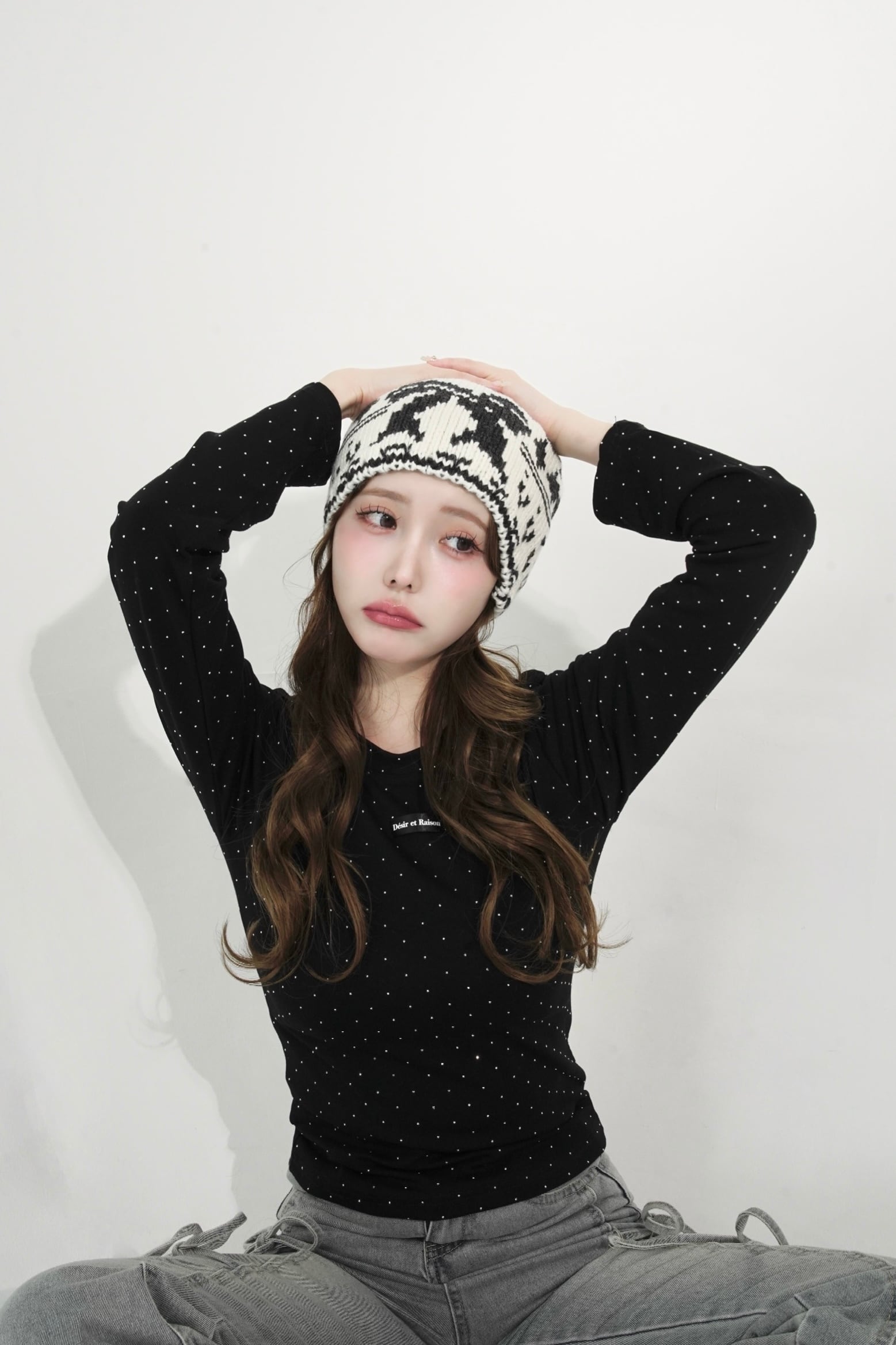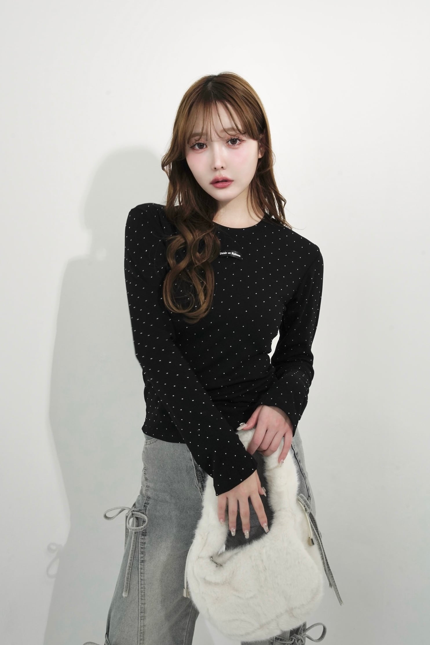 ストーンを贅沢にあしらい、胸元のDÉSIRネームがパッと目を惹く、主役級ロンT。