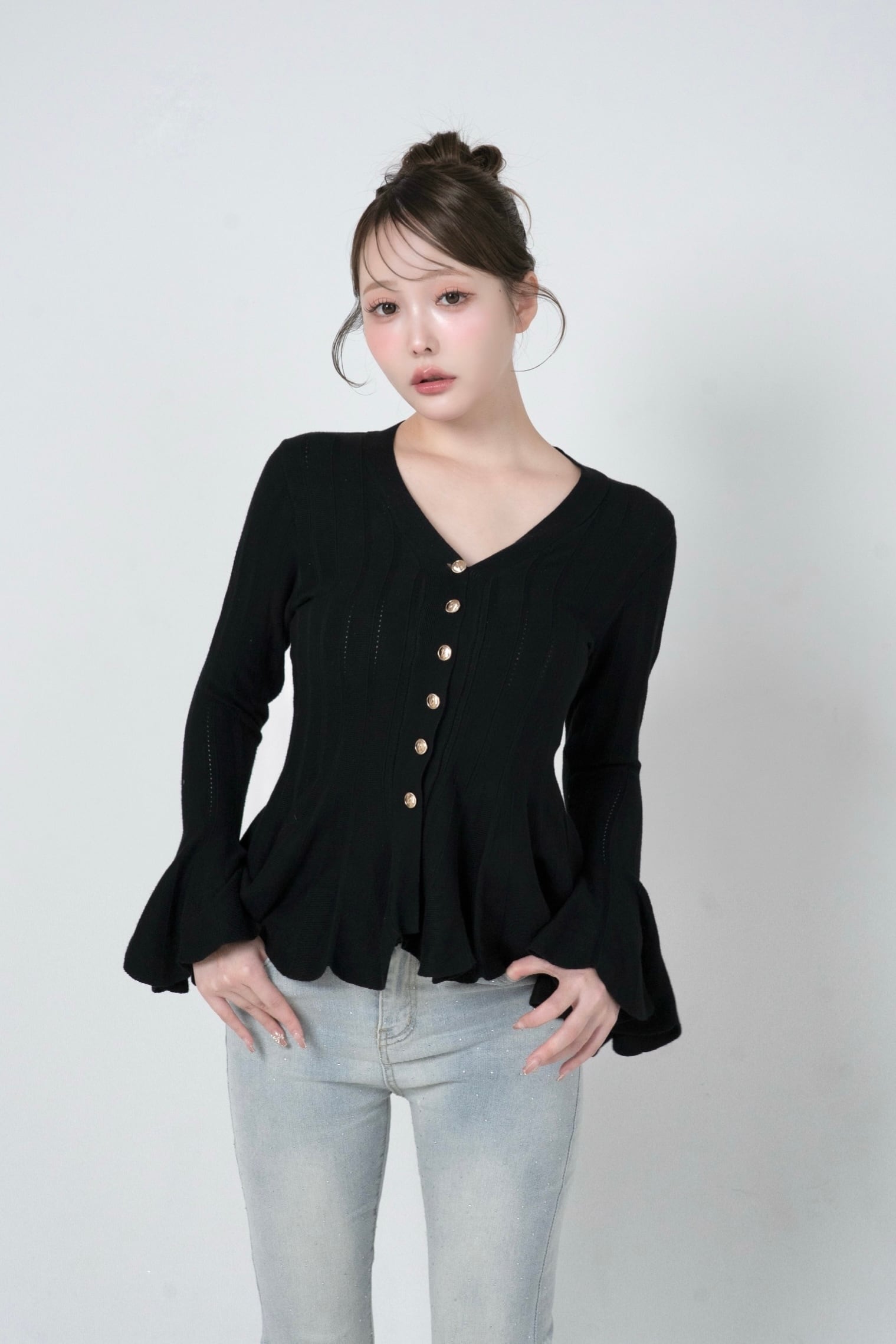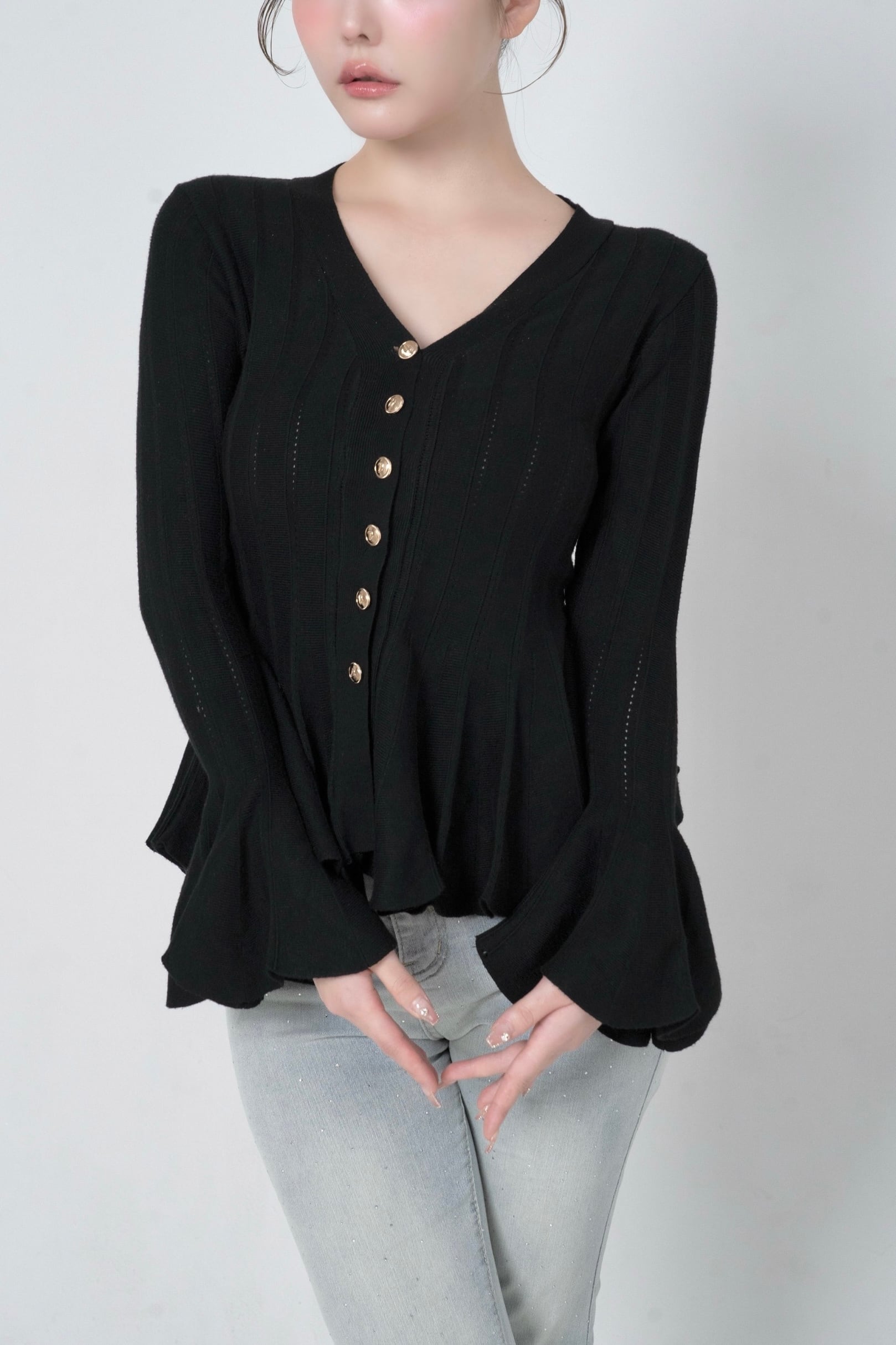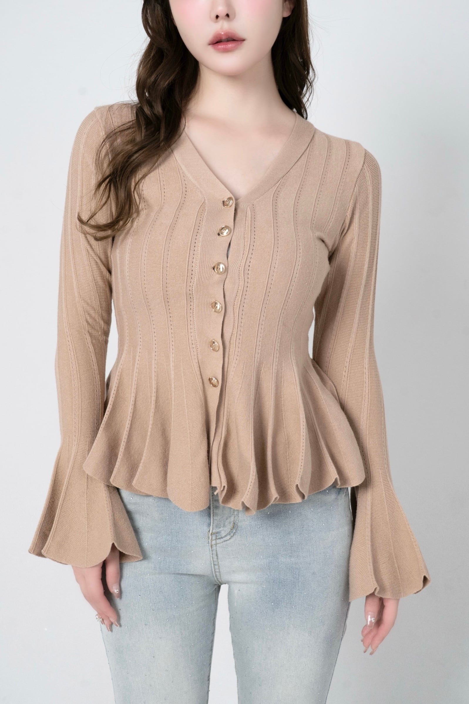 袖口と裾のドラマティックなフレアデザインが、シンプルな中にもDÉSIRらしい遊び心を感じさせる一枚に仕上げました。