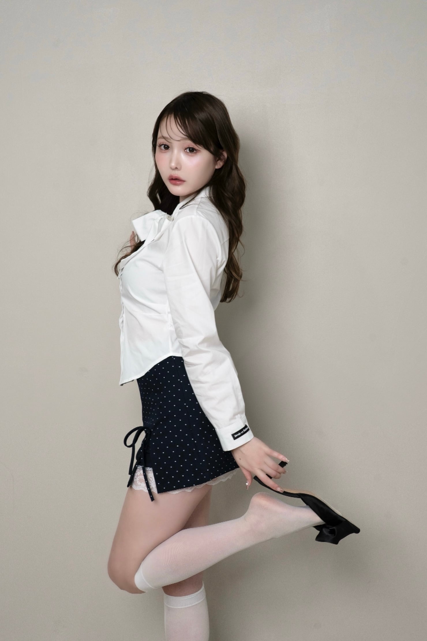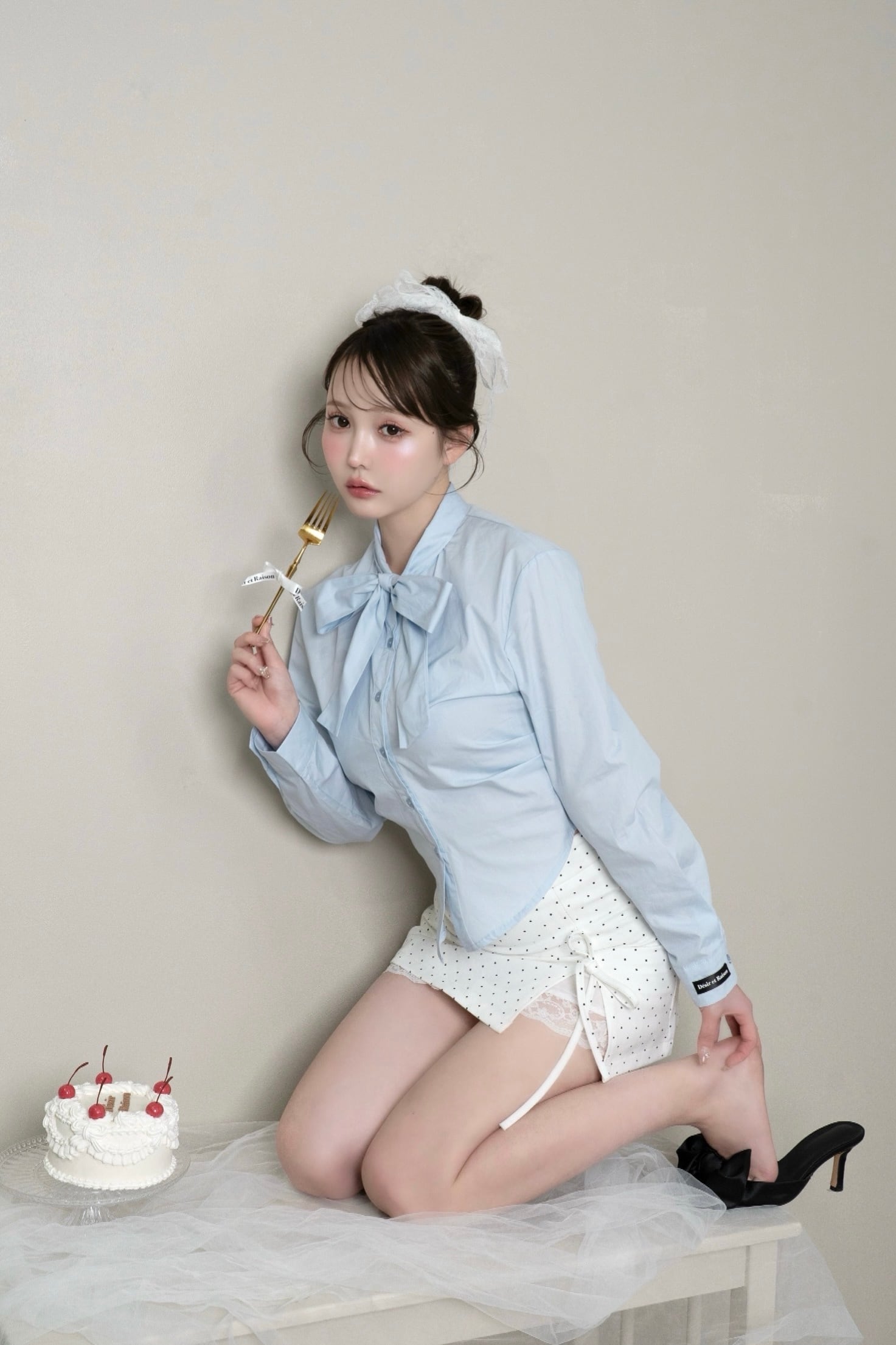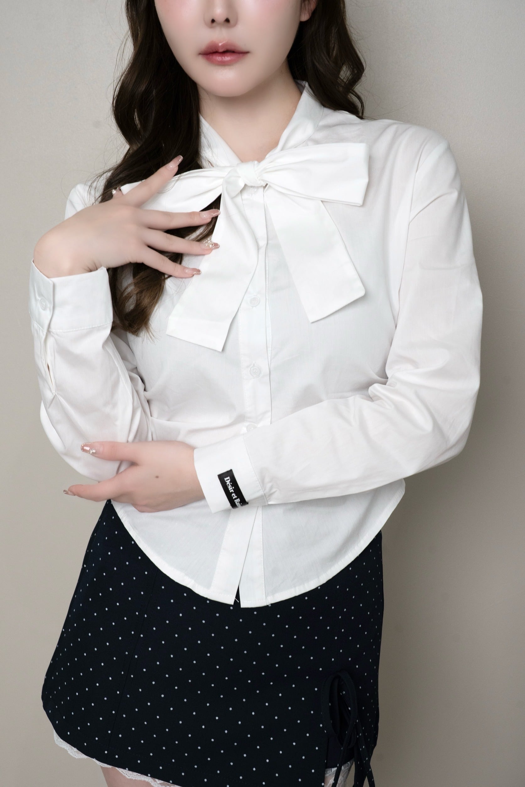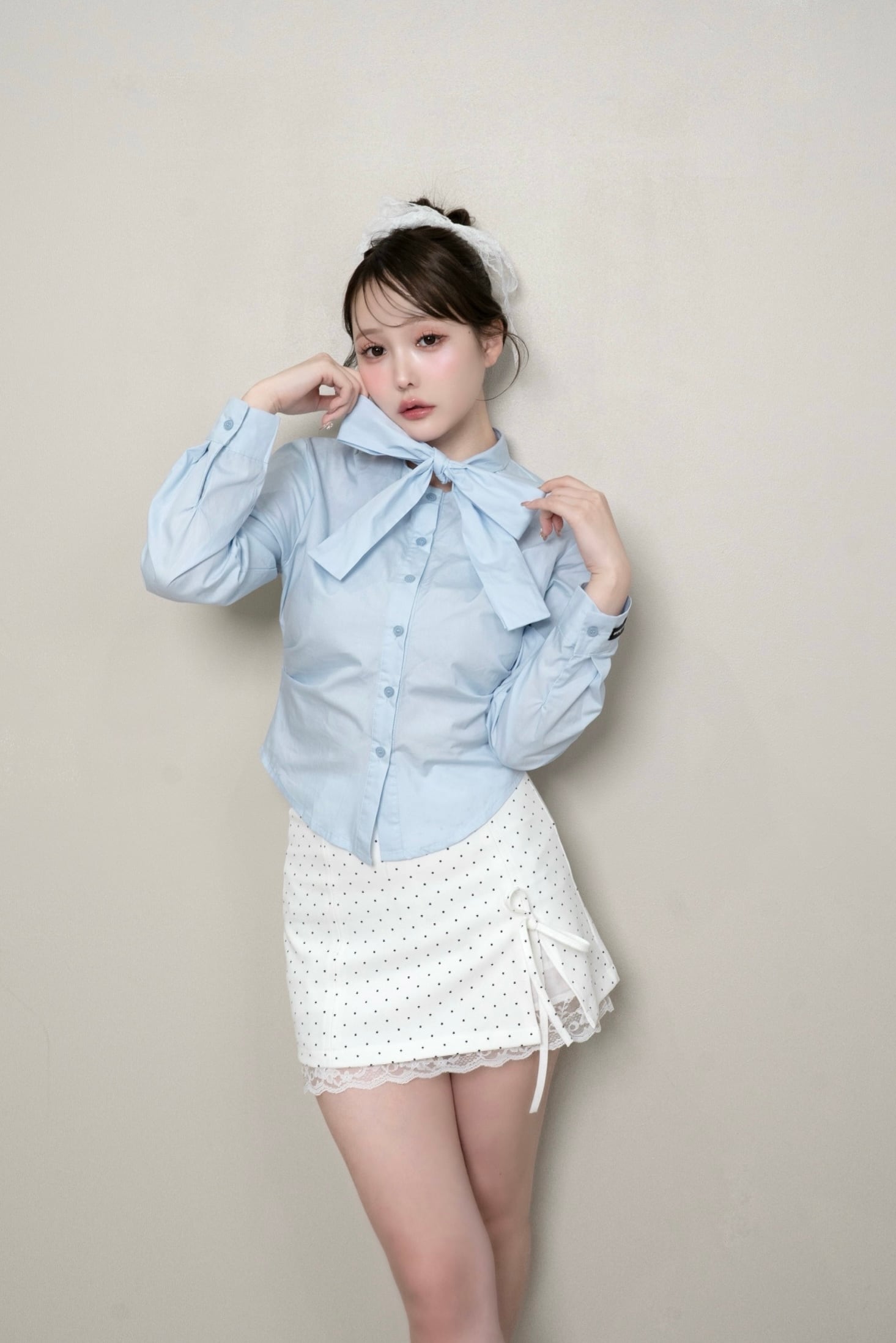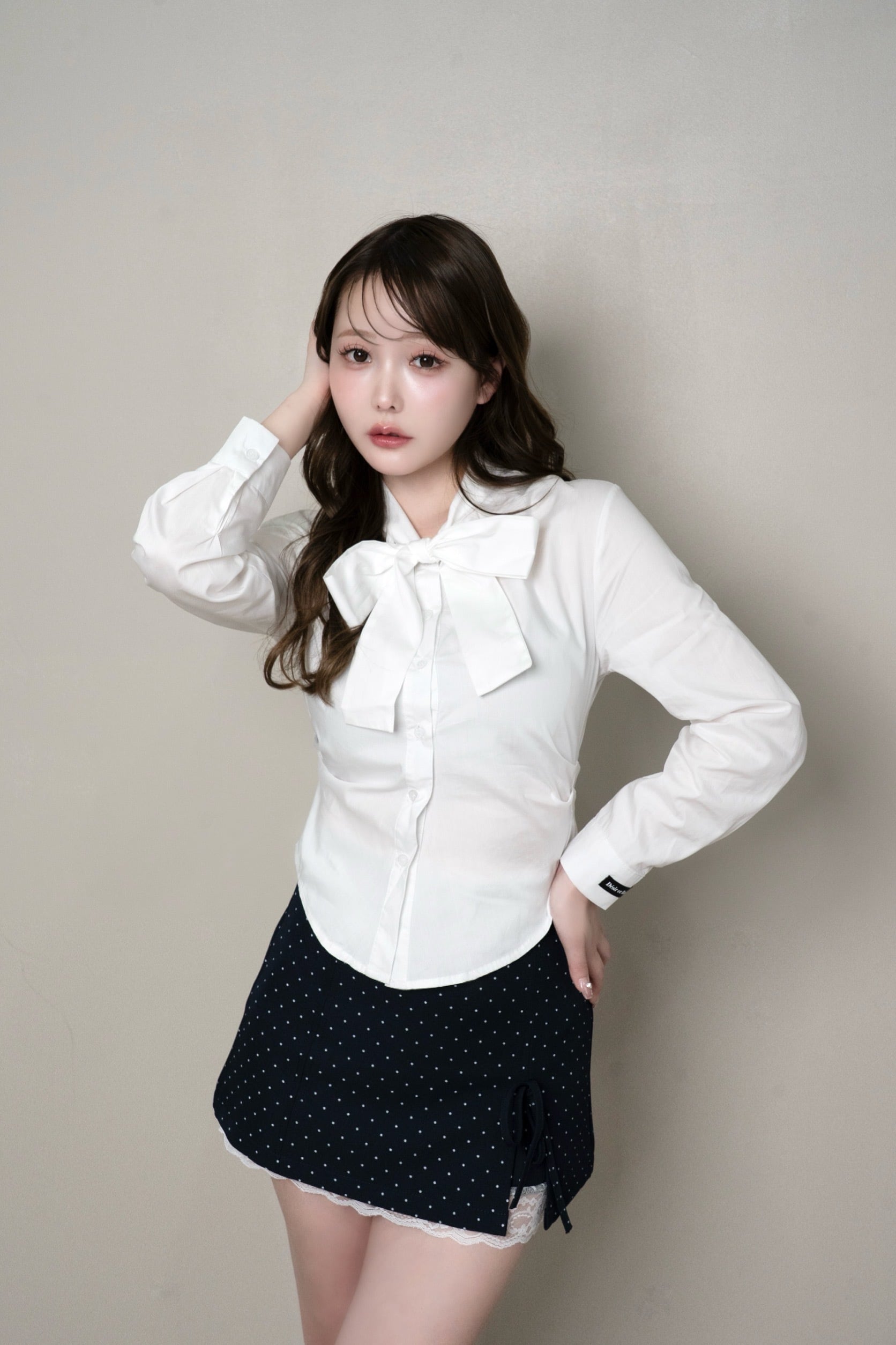 可愛いとスタイルアップどちらもも叶うリボンタイブラウス。