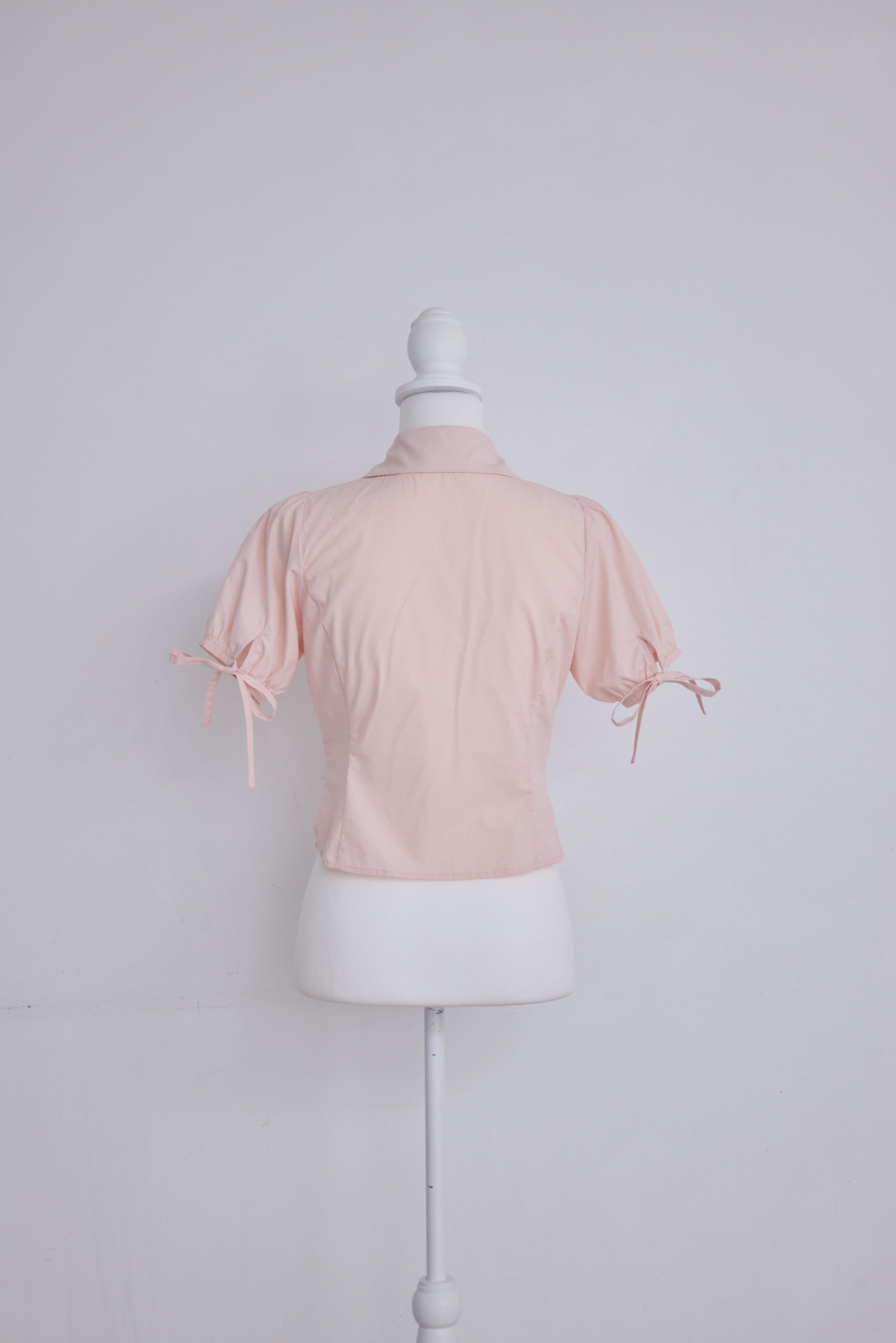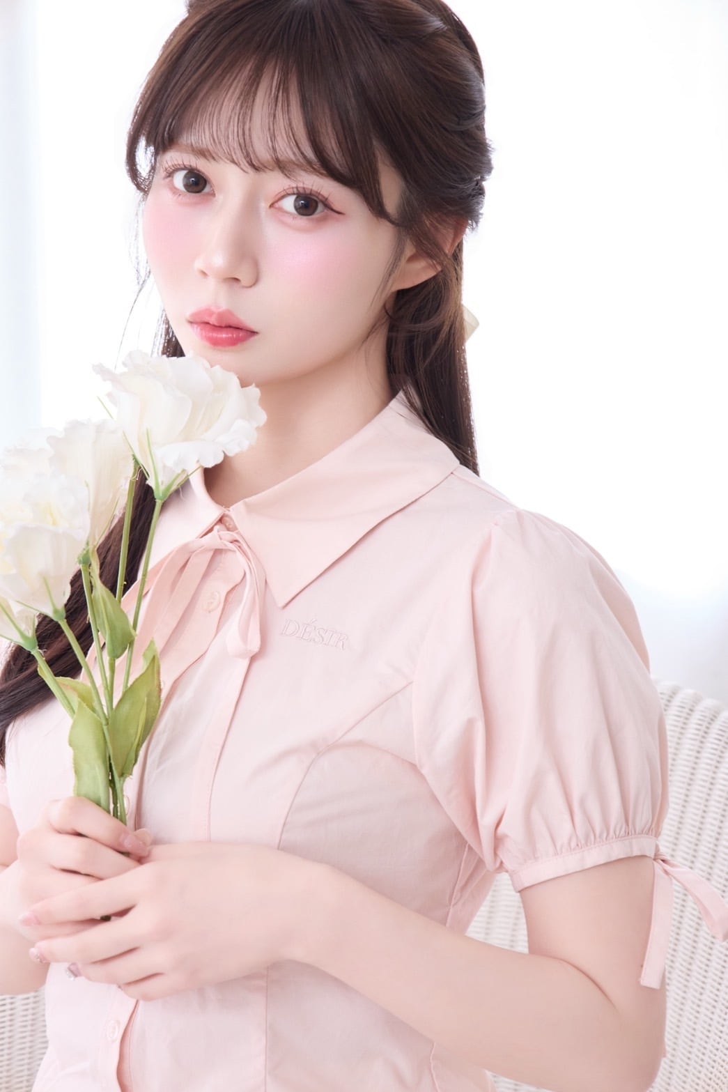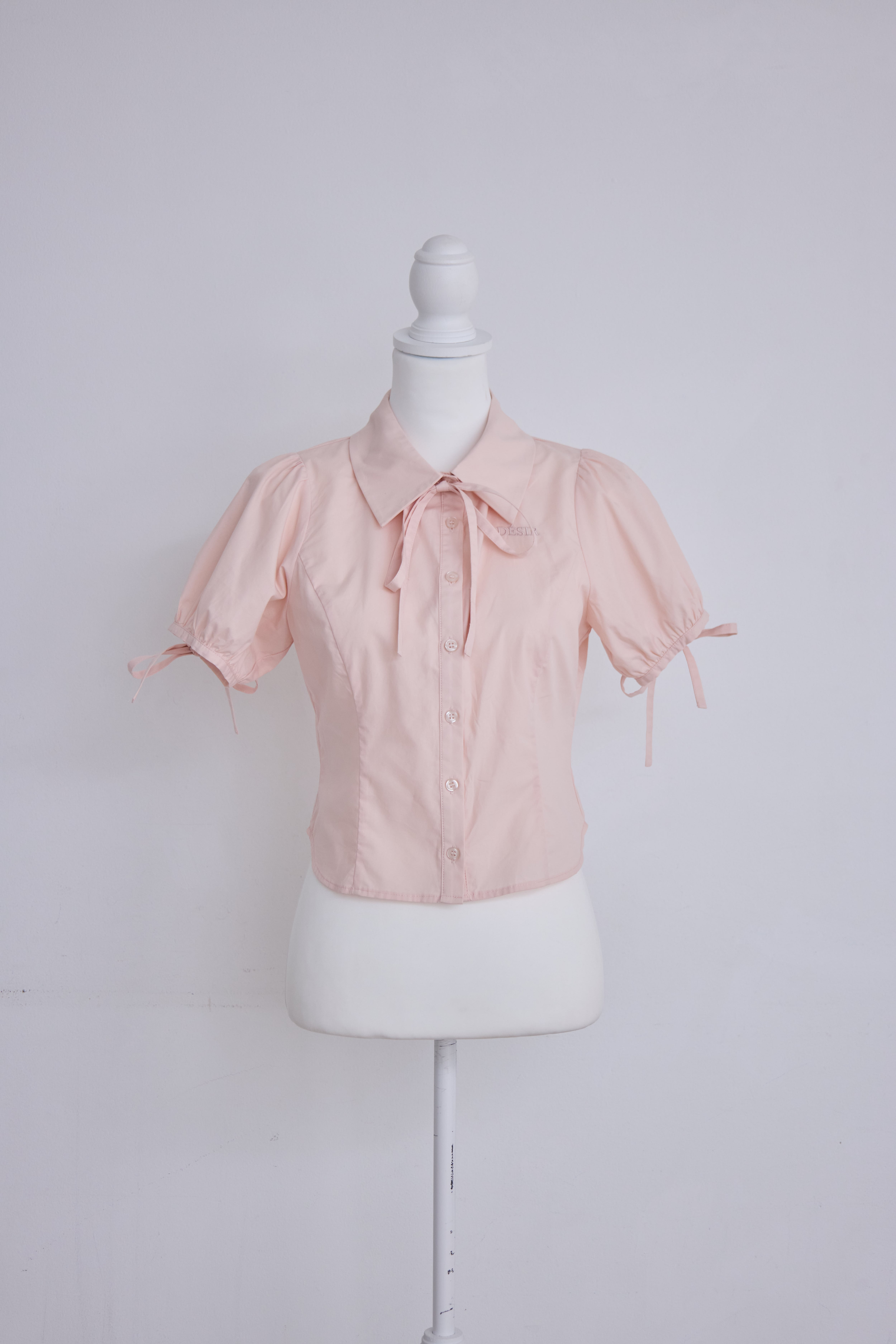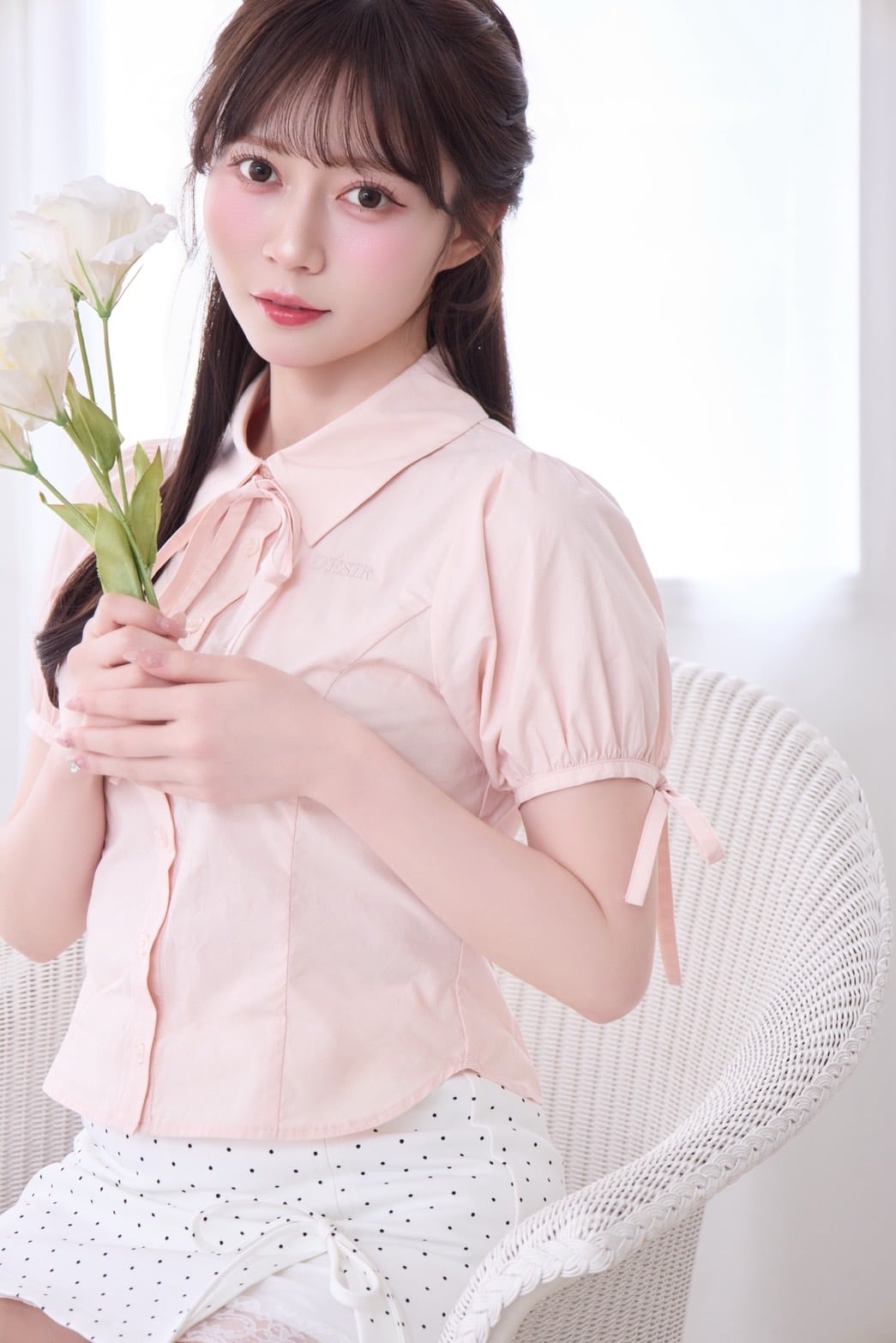 ふんわりとしたパフスリーブに加え、袖口にもリボンをあしらい、細部まで抜かりない可愛さに。