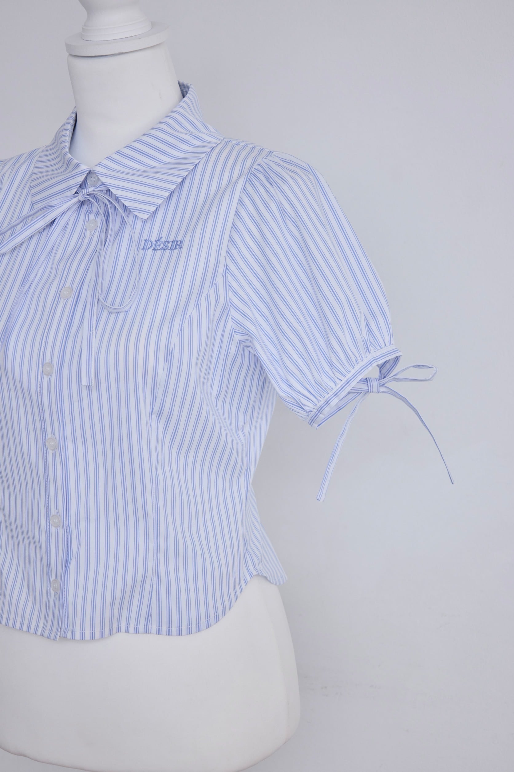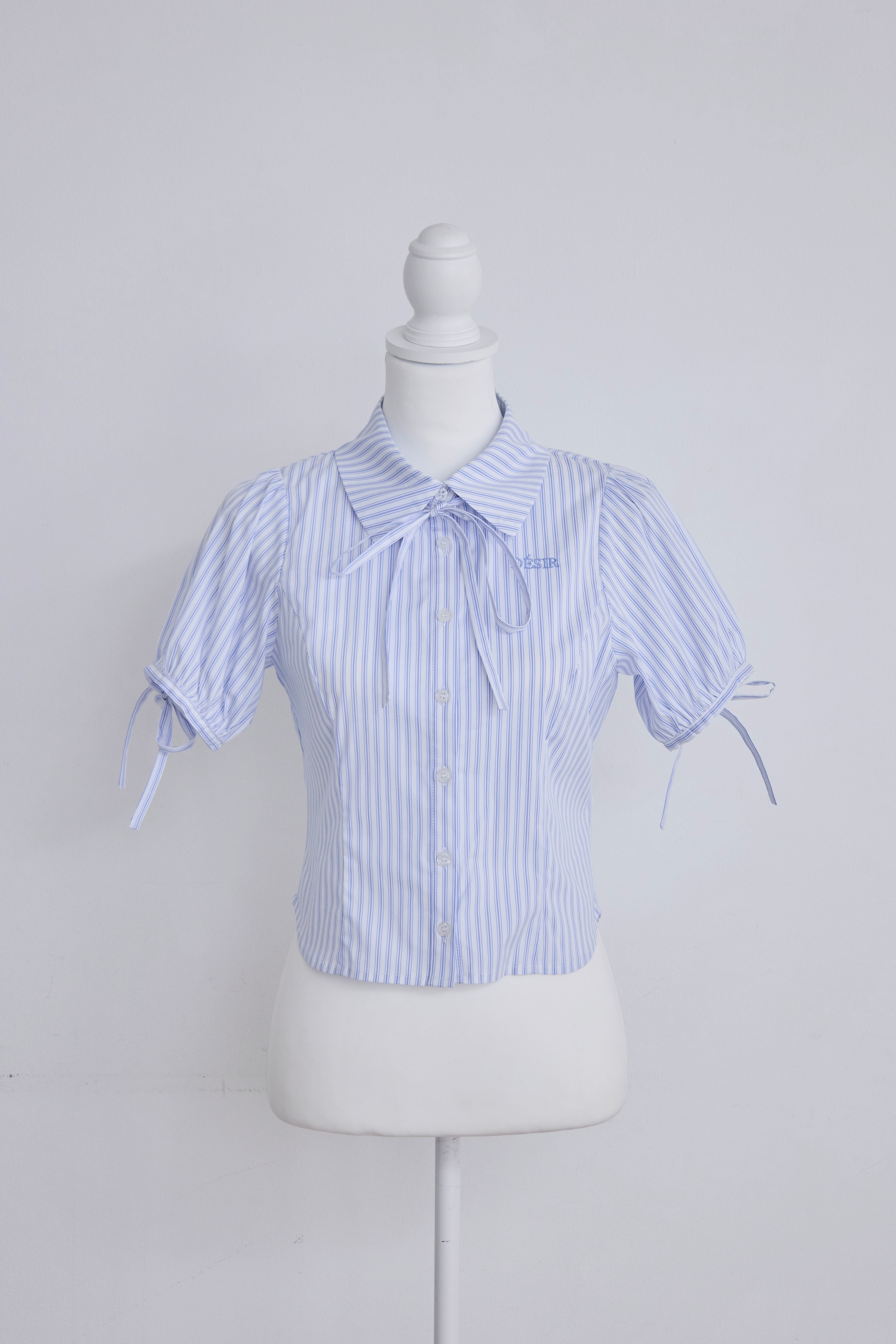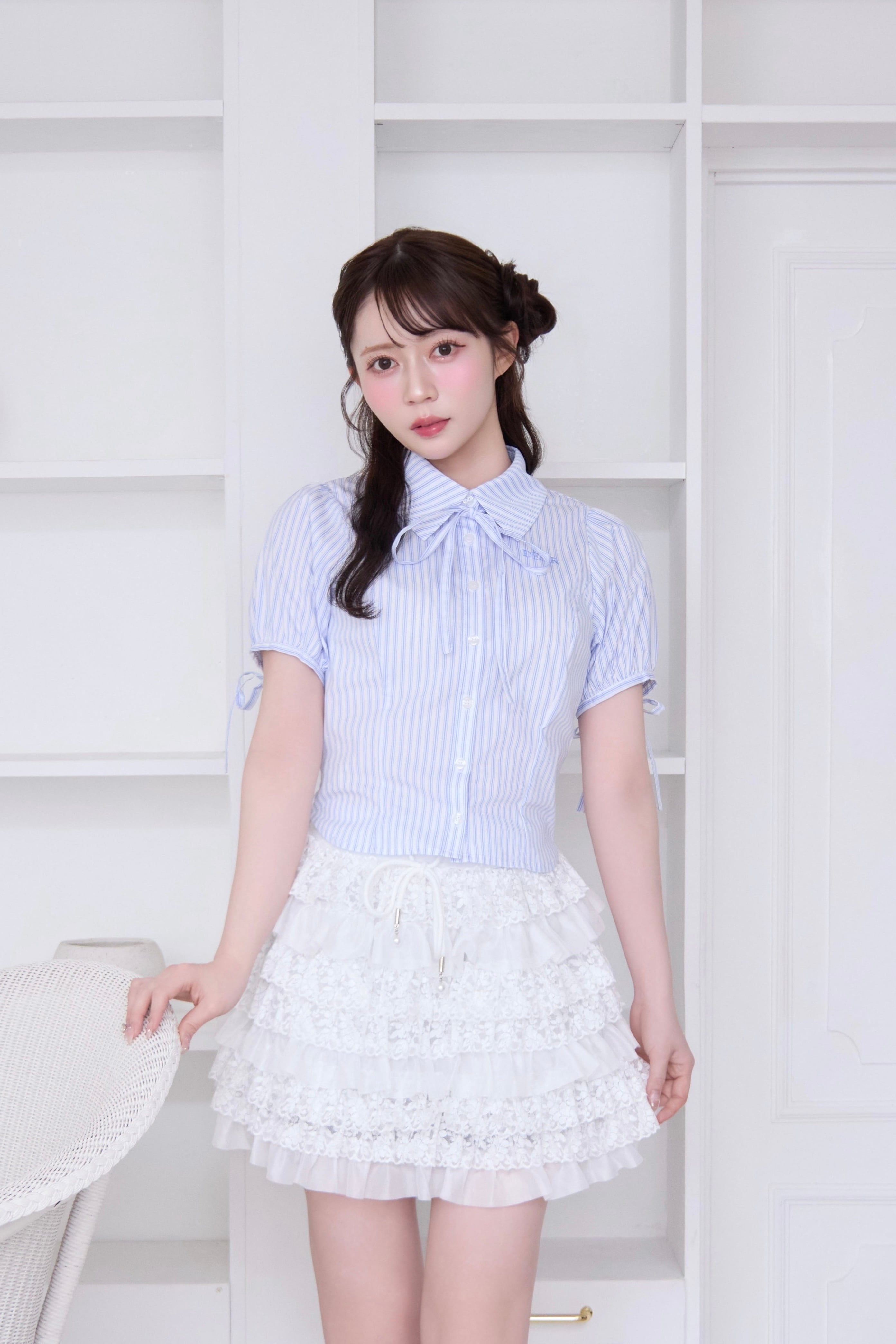 ふんわりとしたパフスリーブに加え、袖口にもリボンをあしらい、細部まで抜かりない可愛さに。