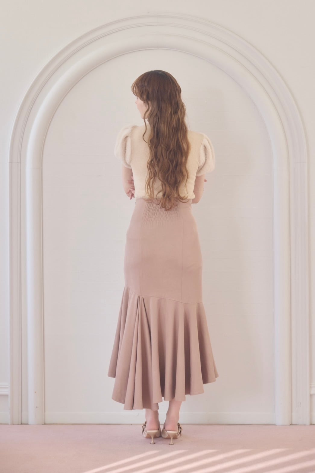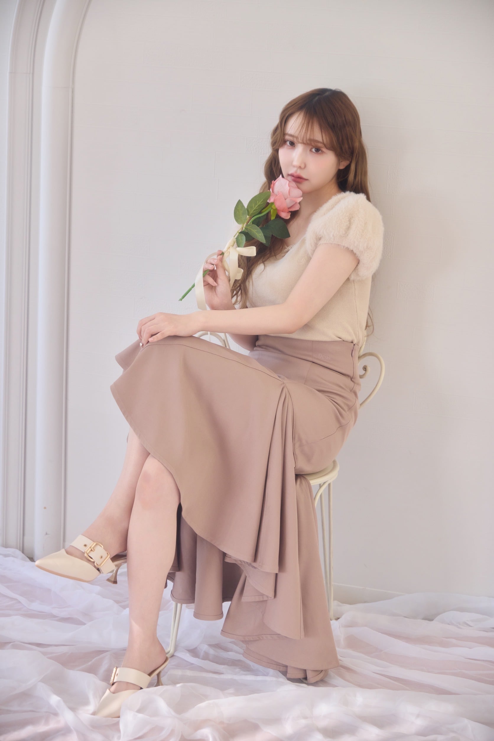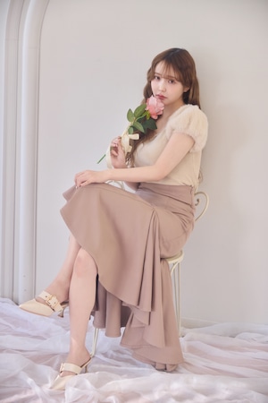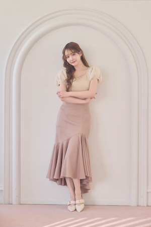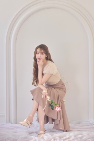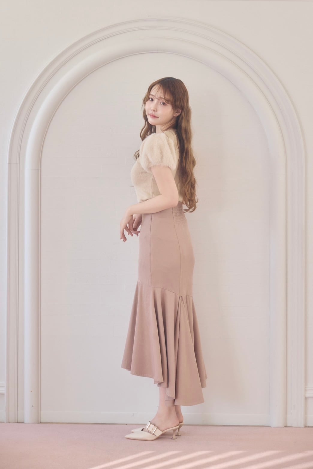 フレア分量がたくさんあることで動くたびにふんわり広がるシルエットが女性らしさを演出します。