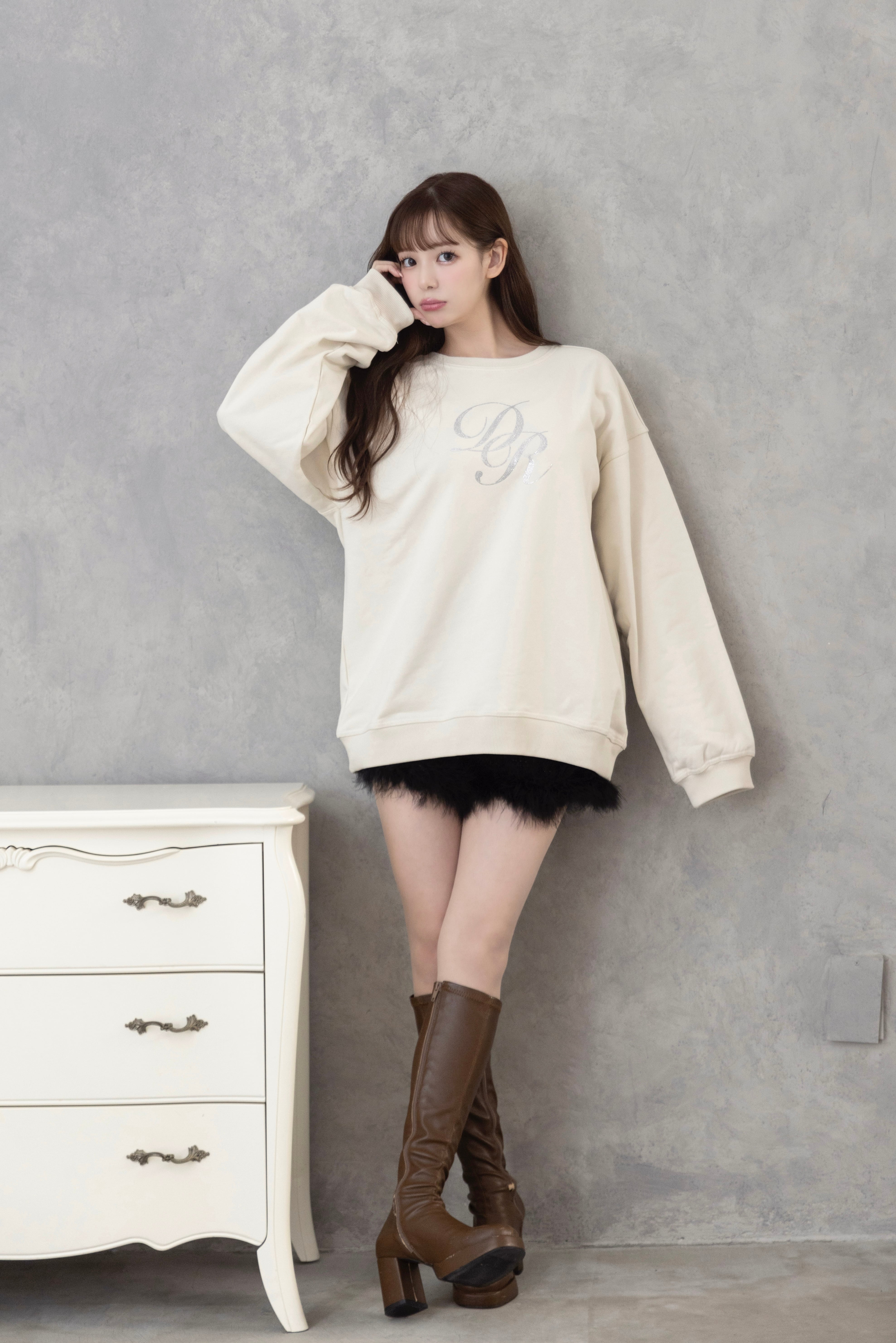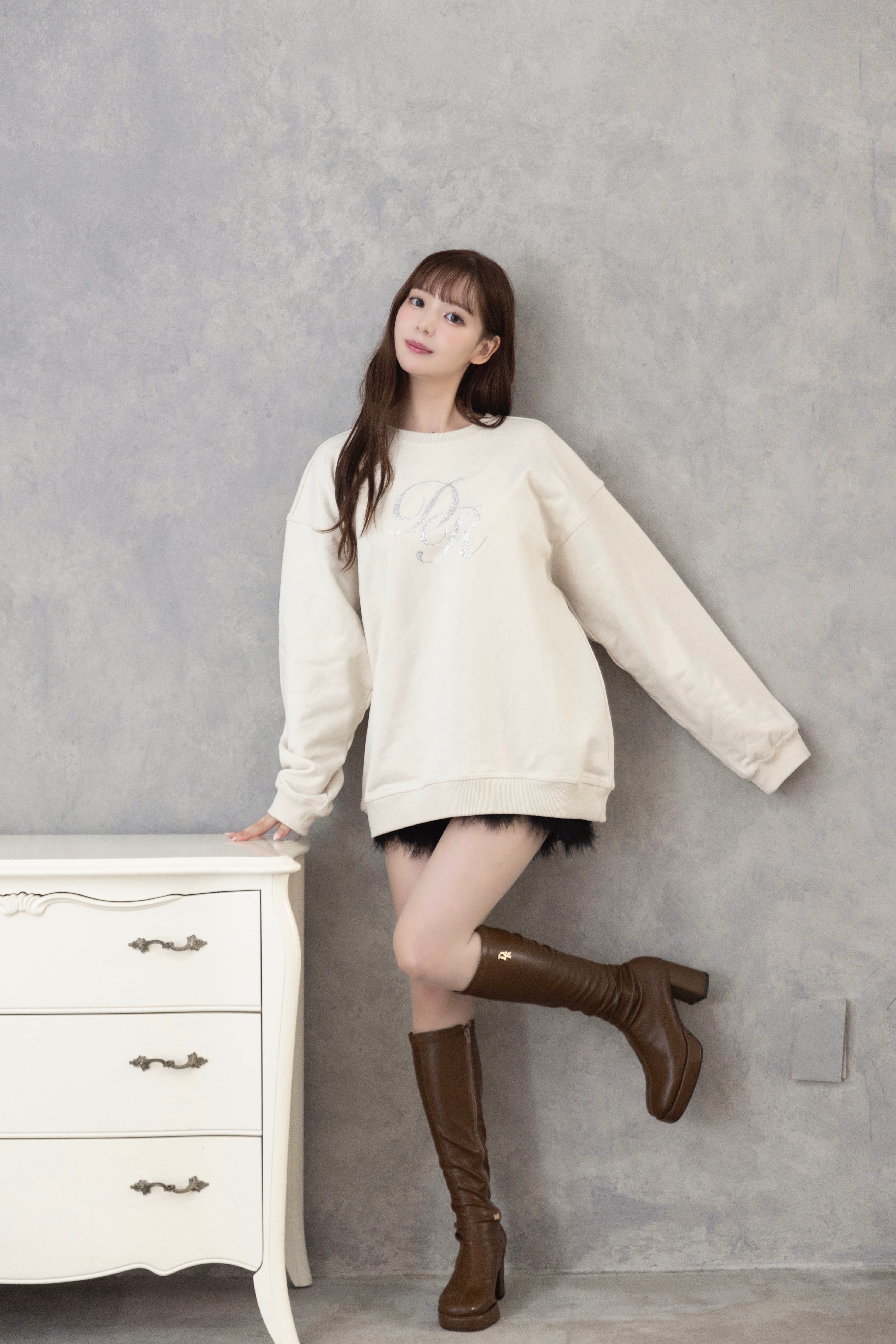 ゆったりとしたオーバーシルエットなので、ワンピース風に着用できるのはもちろん、ミニやロングボトムとも合わせることができるサイズ感。