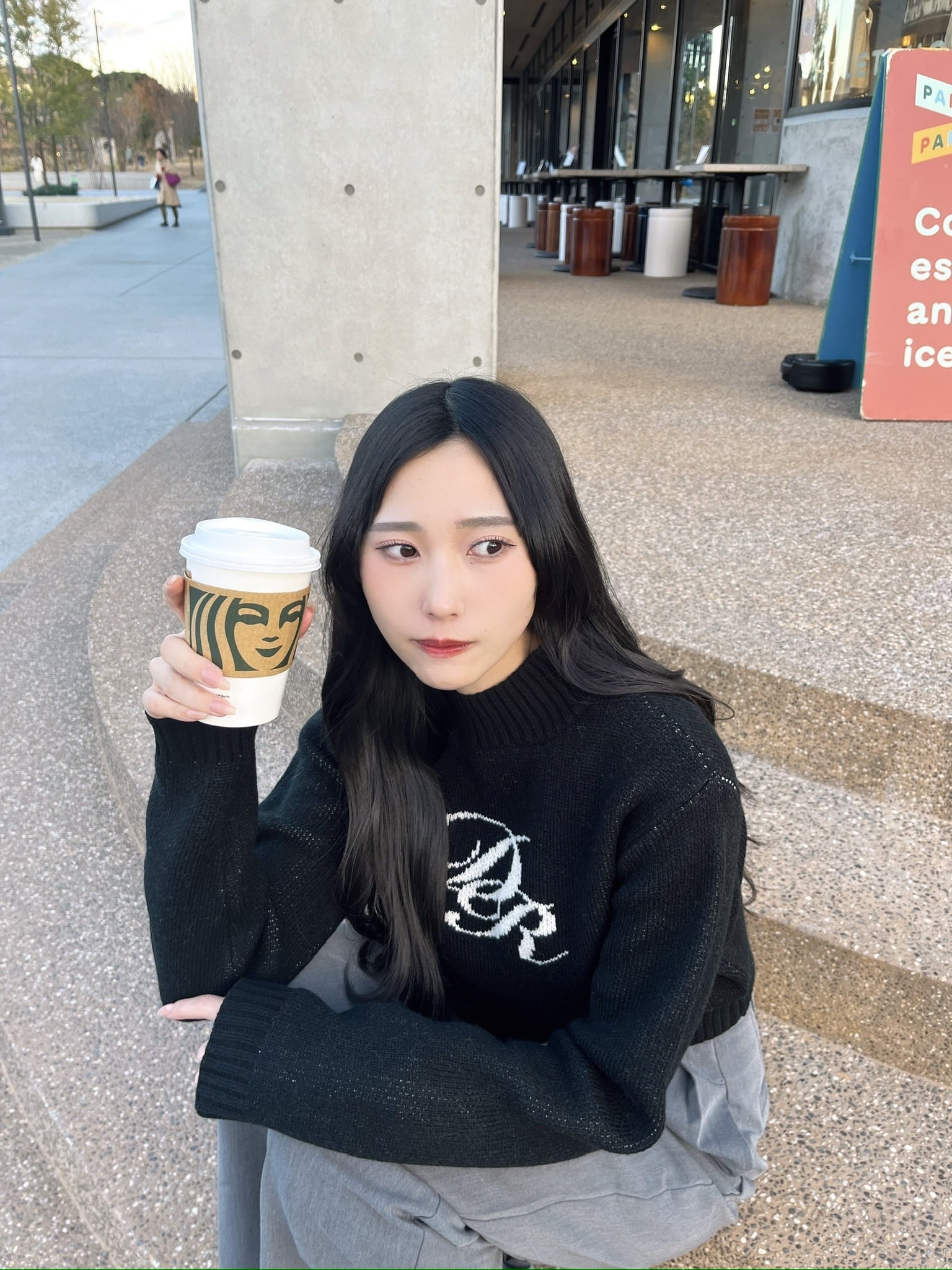 プチハイネックにしたことでお顔周りをすっきりとした印象に。